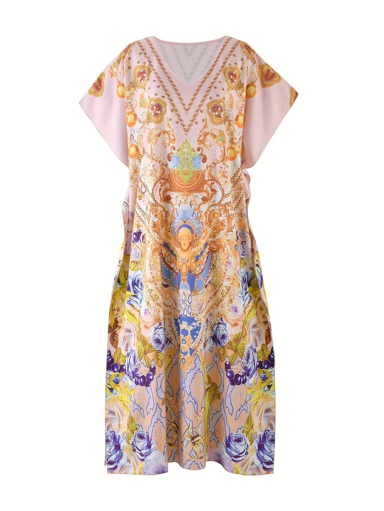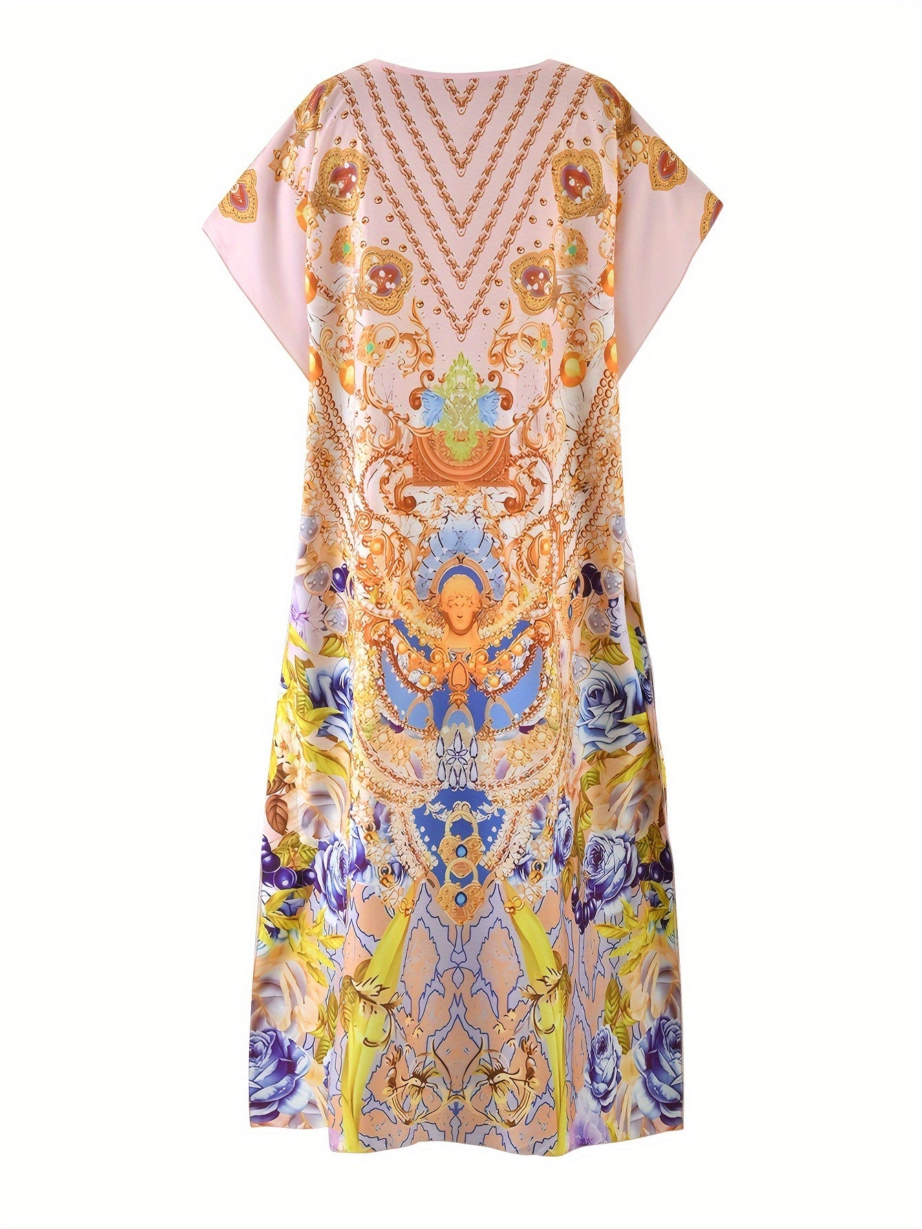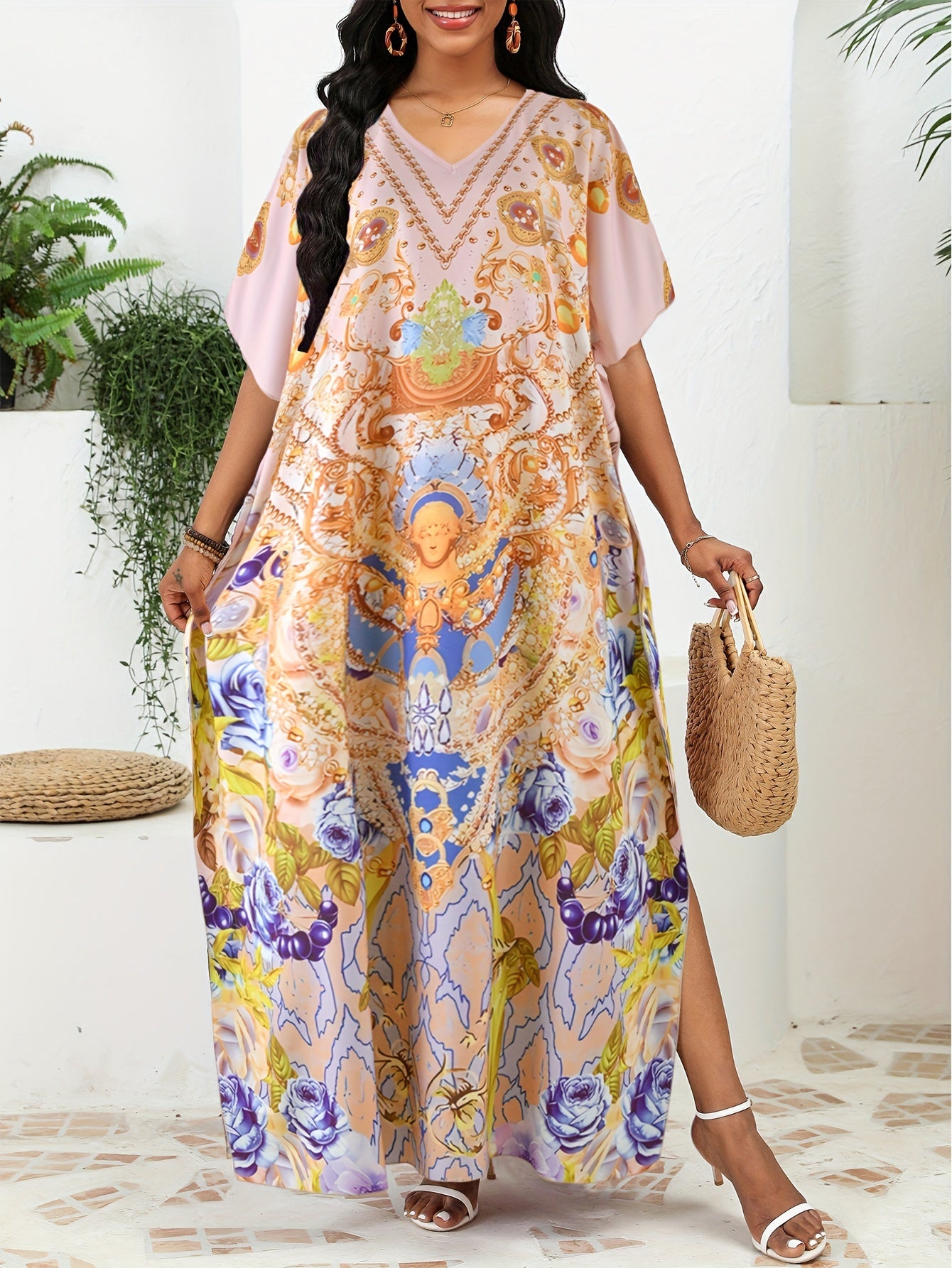 Descubre la exquisita belleza de nuestra abaya de manga larga con estampado floral bohemio, un caftán informal de poliéster tejido, perfecto para cualquier temporada. Con su elegante abertura y su favorecedor escote en V, este vestido combina el estilo tradicional de Oriente Medio con la moda moderna.