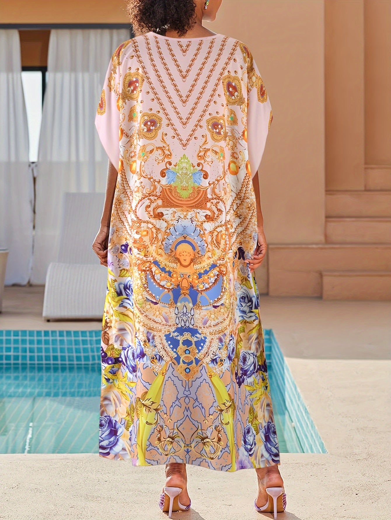 Abaya con estampado floral bohemio - Vestido caftán tejido de manga larga