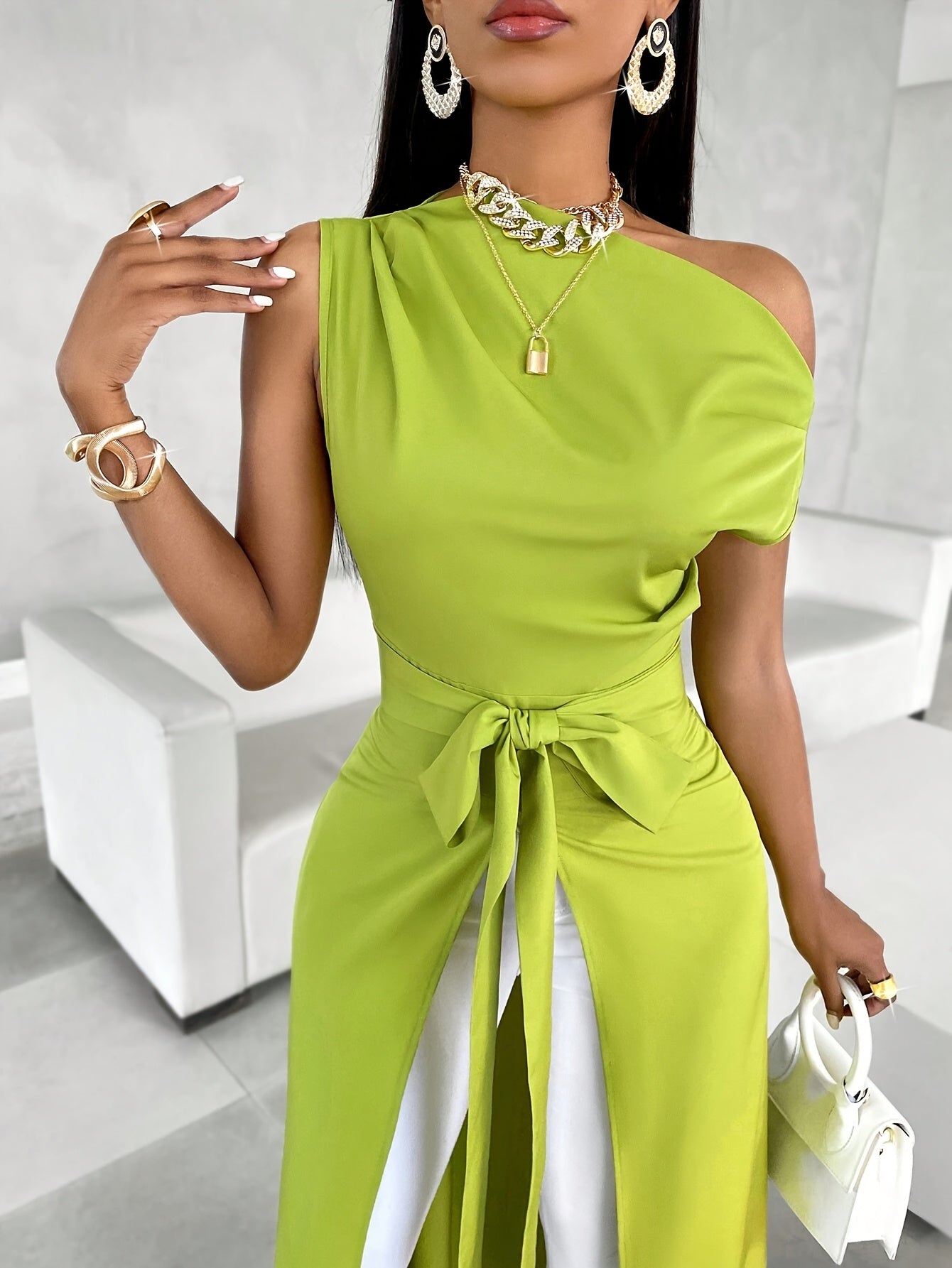 - El elegante diseño de un solo hombro añade un toque único.