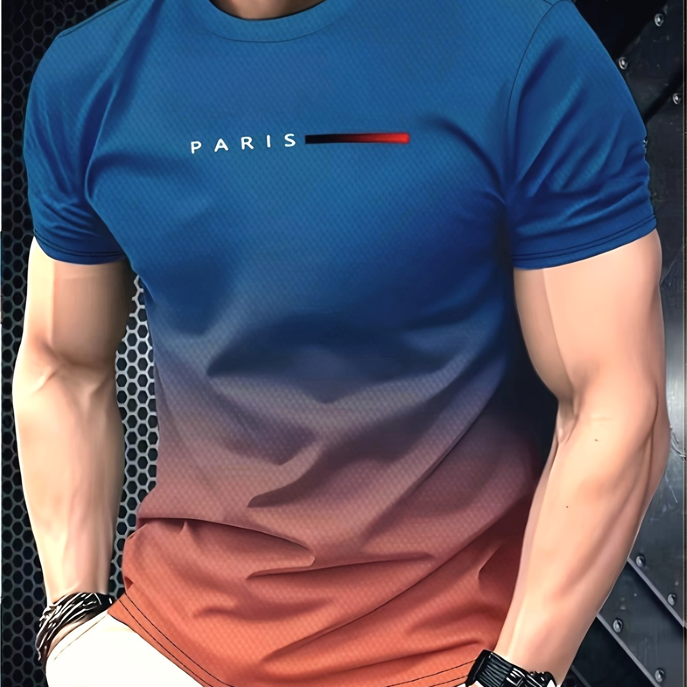 Camiseta París con degradado para hombre - Cuello redondo informal, poliéster transpirable