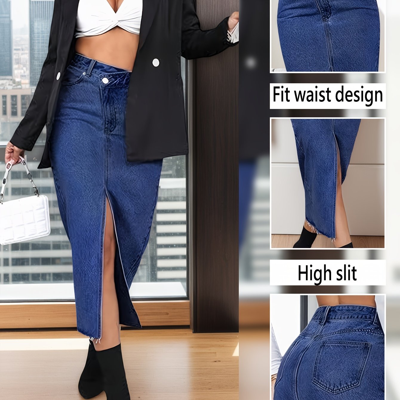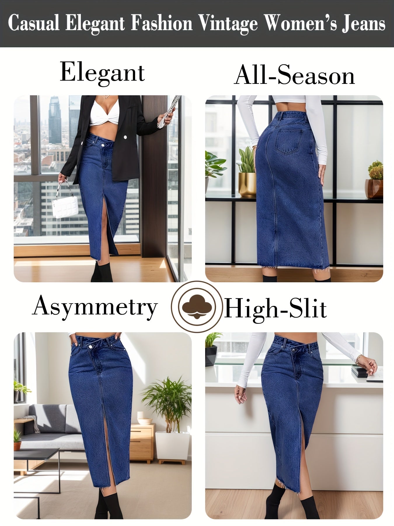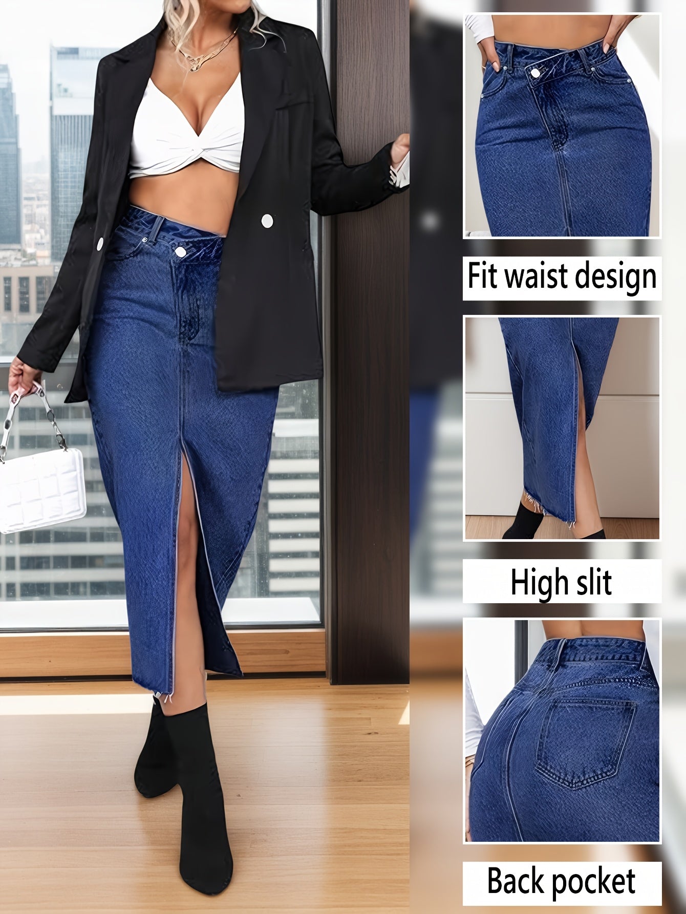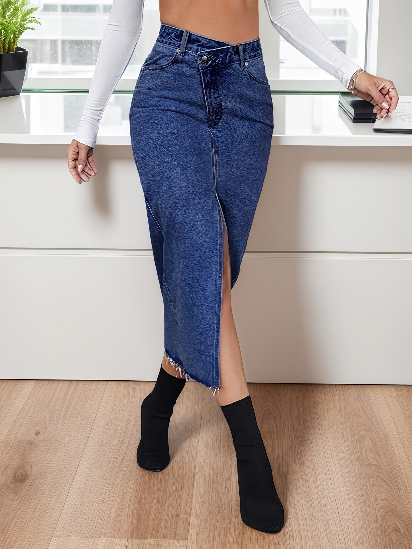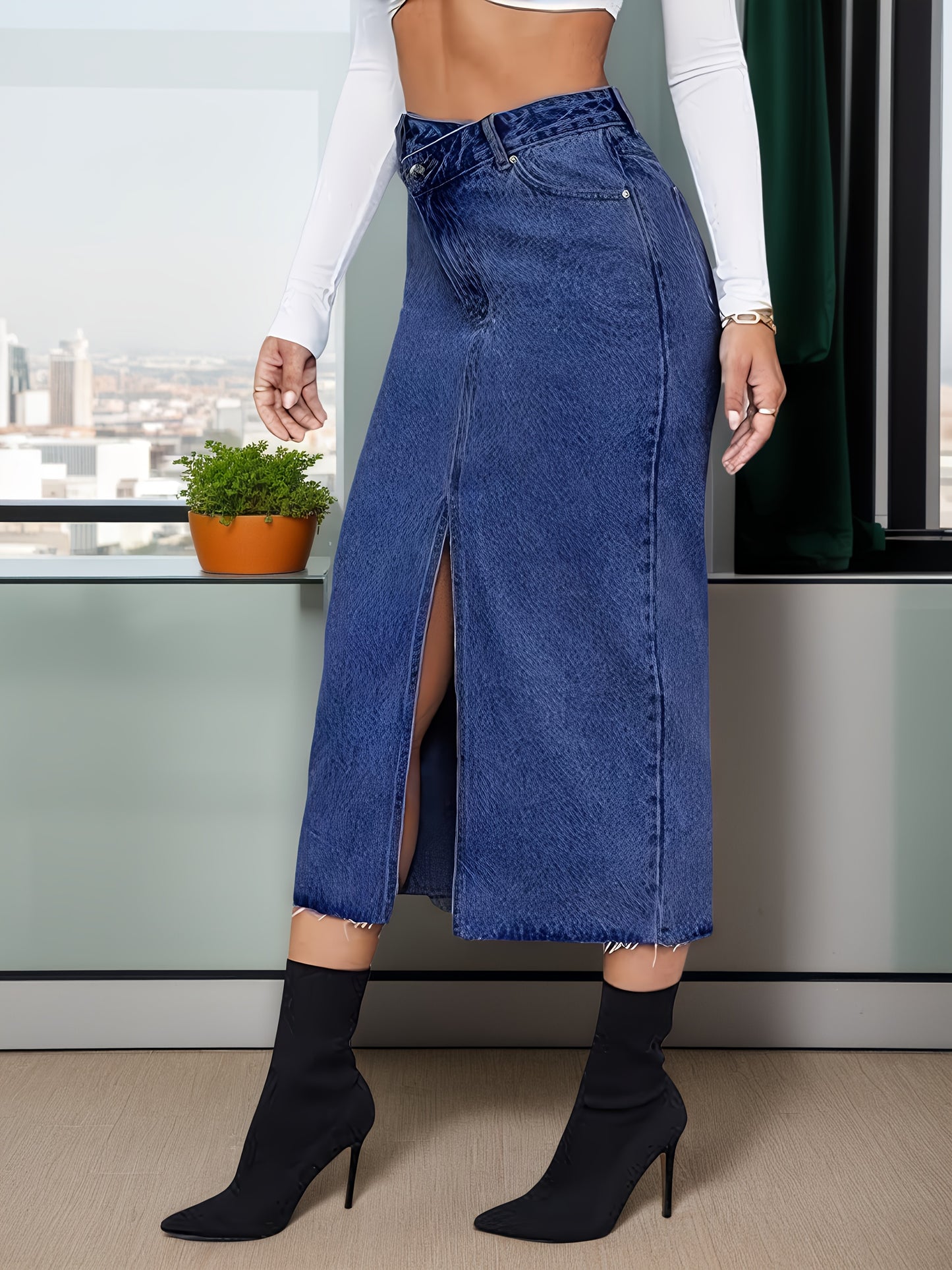 Falda vaquera de cintura alta para mujer - Dobladillo asimétrico dividido