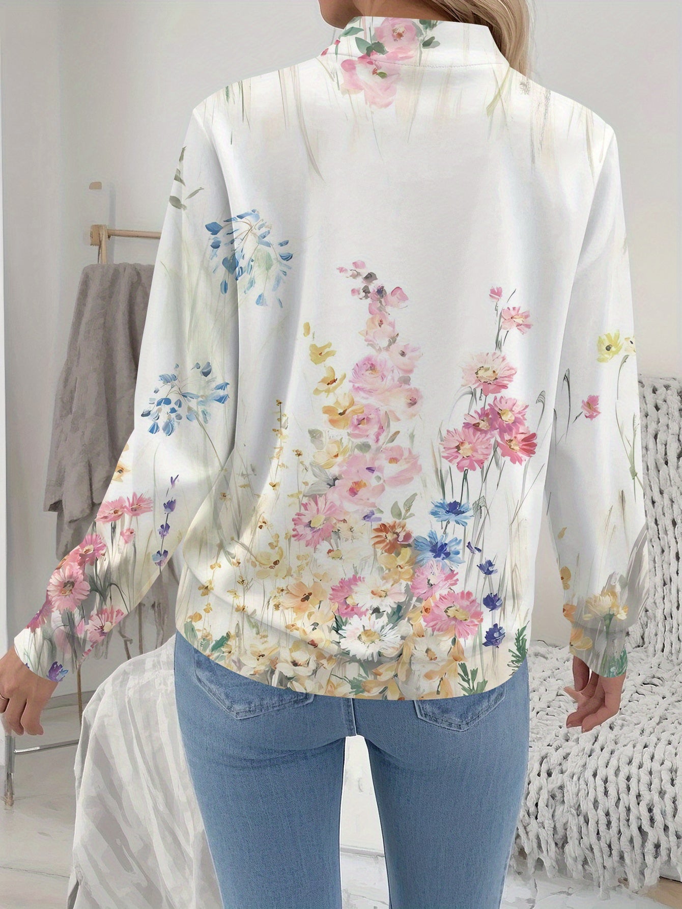 Chaqueta con estampado floral 3D para mujer: abrigo informal ligero para primavera/otoño