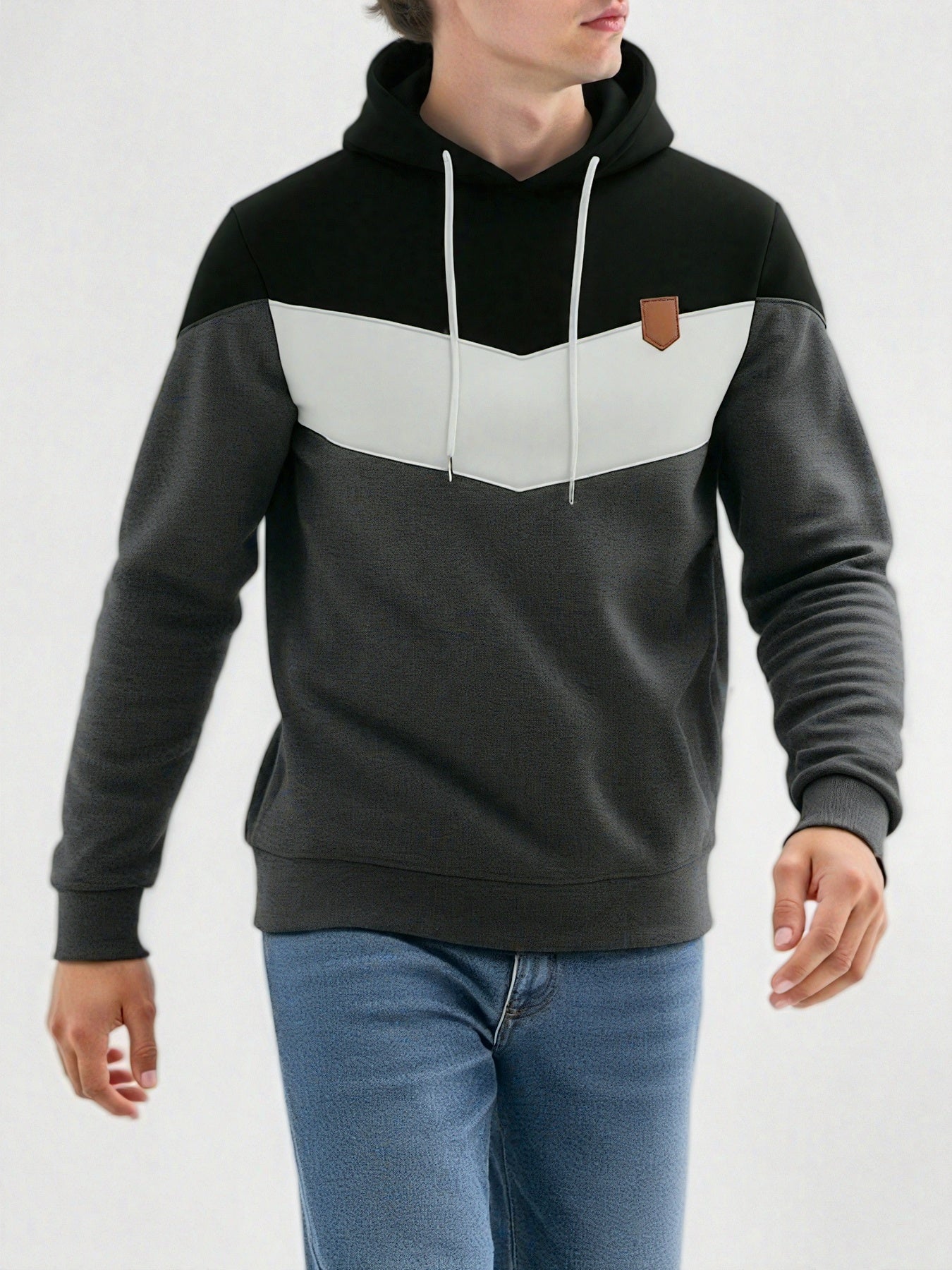 Color Block Hoodie, Cool Hoodies For Men, Men's Casual Classic Design Pullover Hooded Sweatshirt With Kangaroo Pocket Streetwear For Winter Fall, As Gift