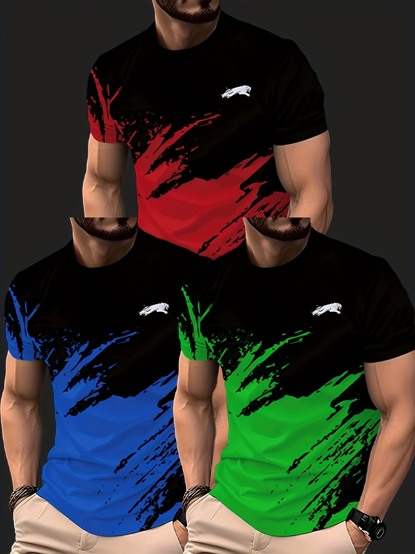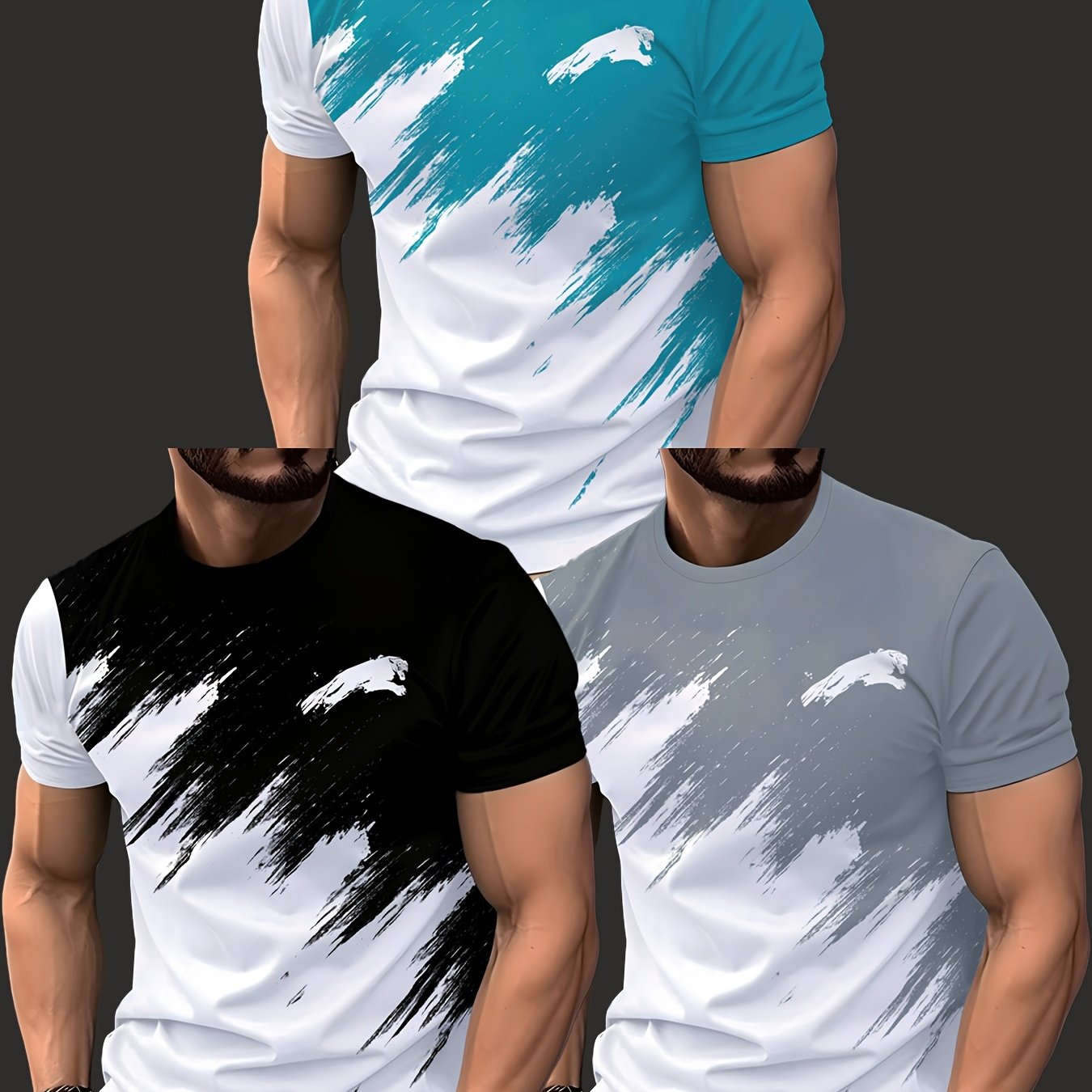 Descubre lo último en ropa casual con nuestro conjunto de 3 camisetas casuales de manga corta y cuello redondo para hombre. Diseñadas para la comodidad diaria, estas camisetas ligeras de mezcla de poliéster presentan un elegante estampado geométrico, perfecto para cualquier atuendo casual. Disfruta de una camiseta gráfica llamativa que combina estilo y comodidad a la perfección.