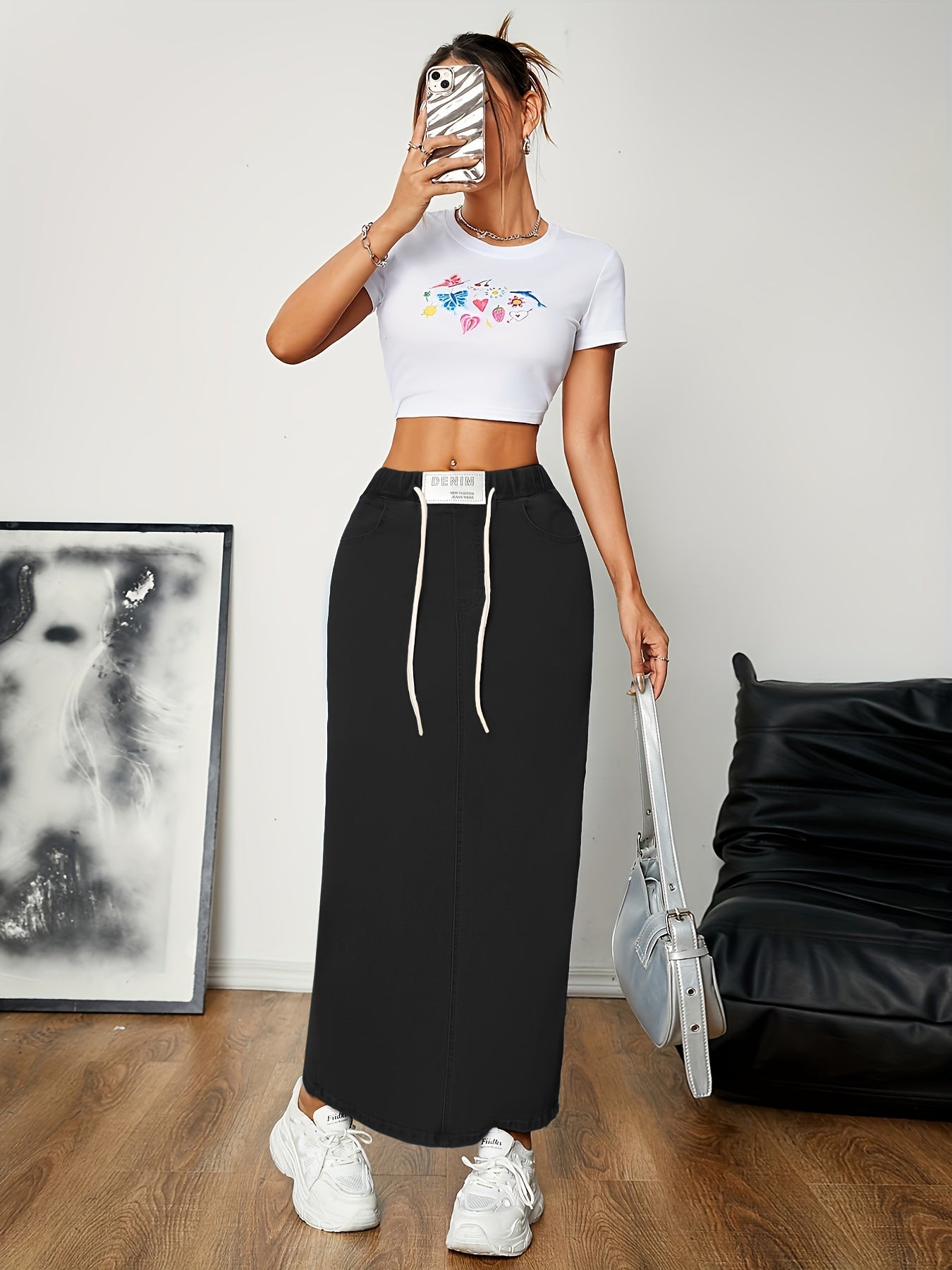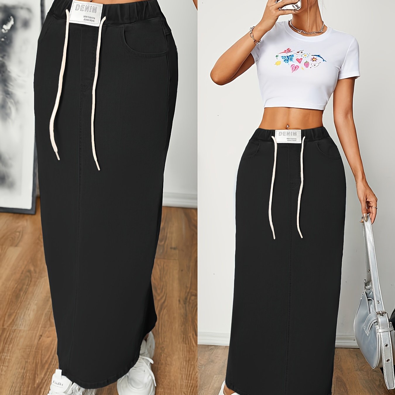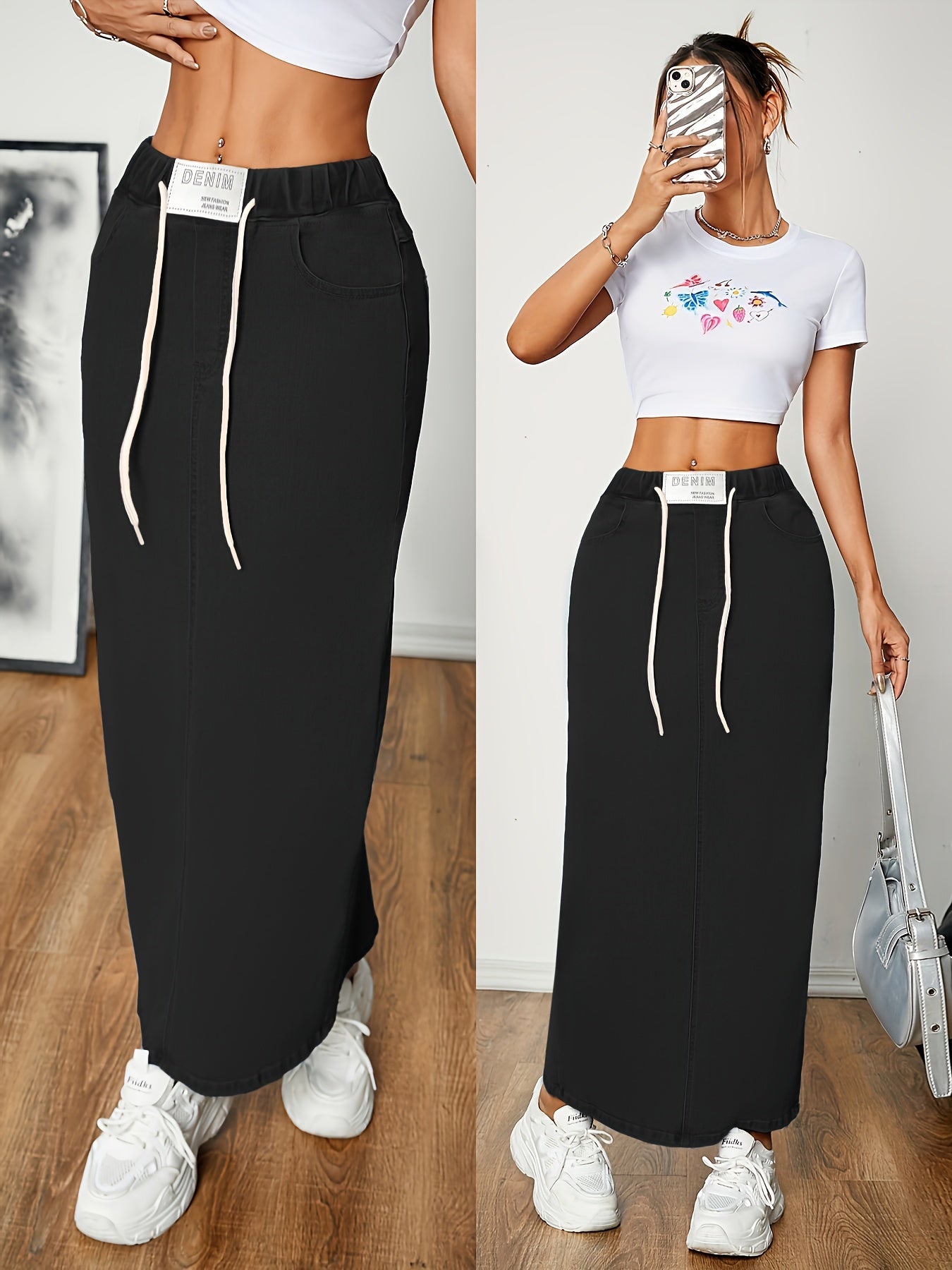Falda elástica informal para mujer: cintura cómoda con cordón ajustable, estilo lápiz