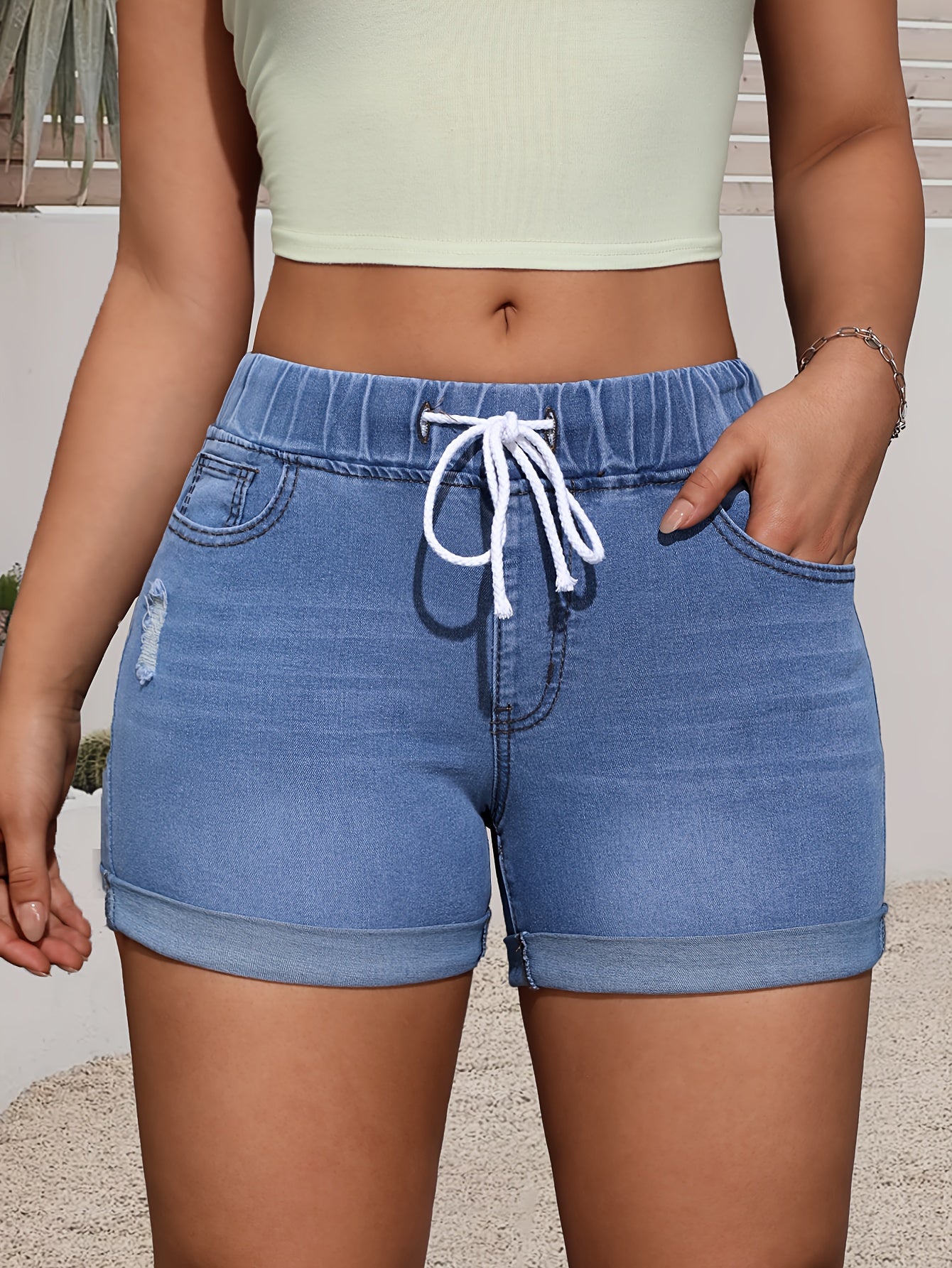 Vaqueros bootcut azul claro para mujer: corte entallado elegante con cordón ajustable