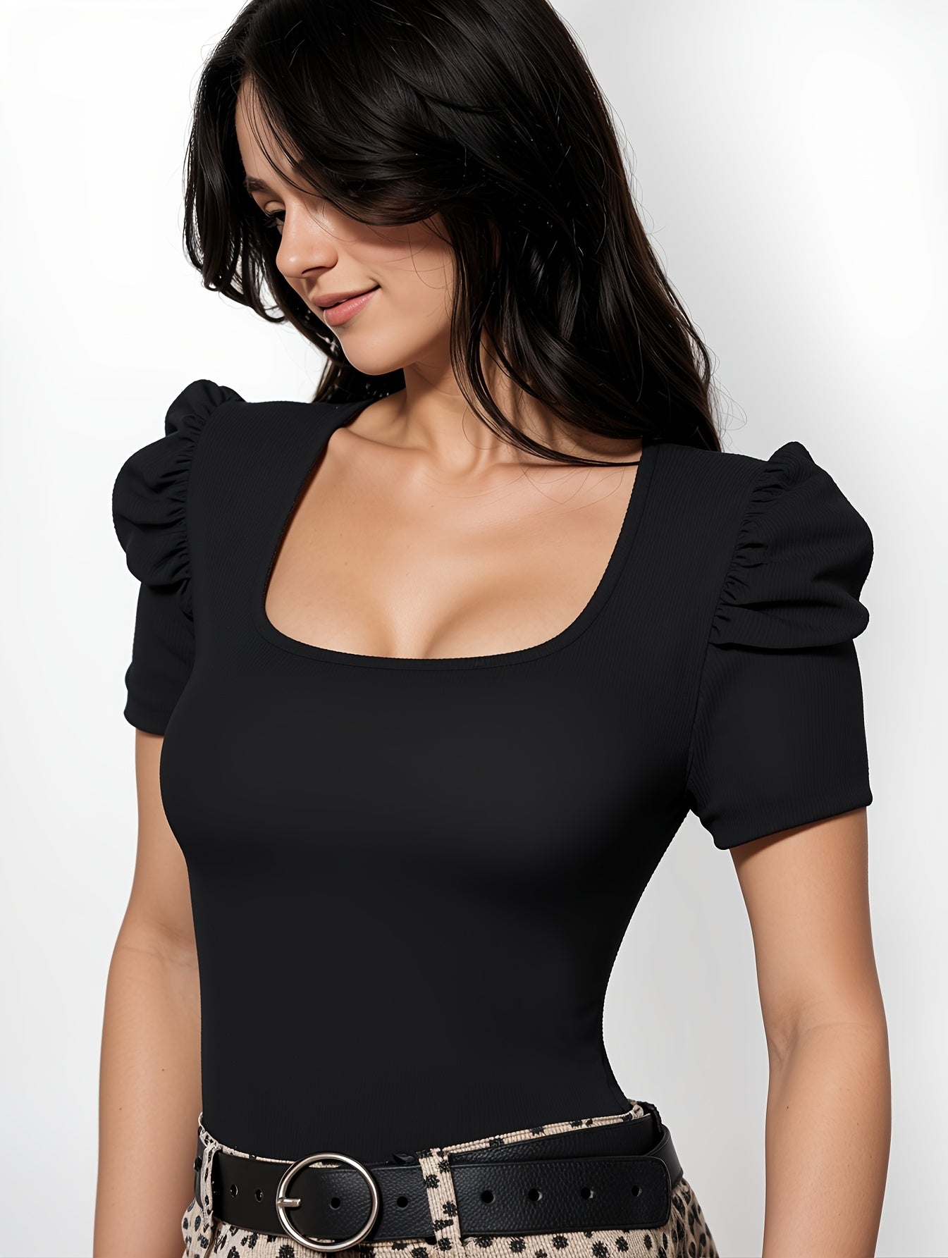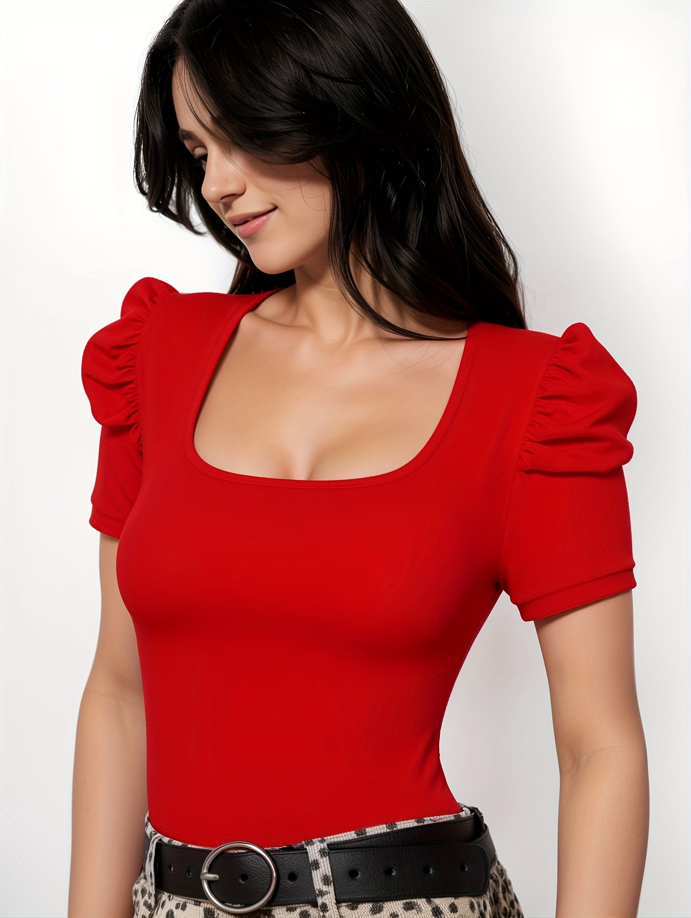 Body rojo elegante para mujer: mangas abullonadas y escote cuadrado