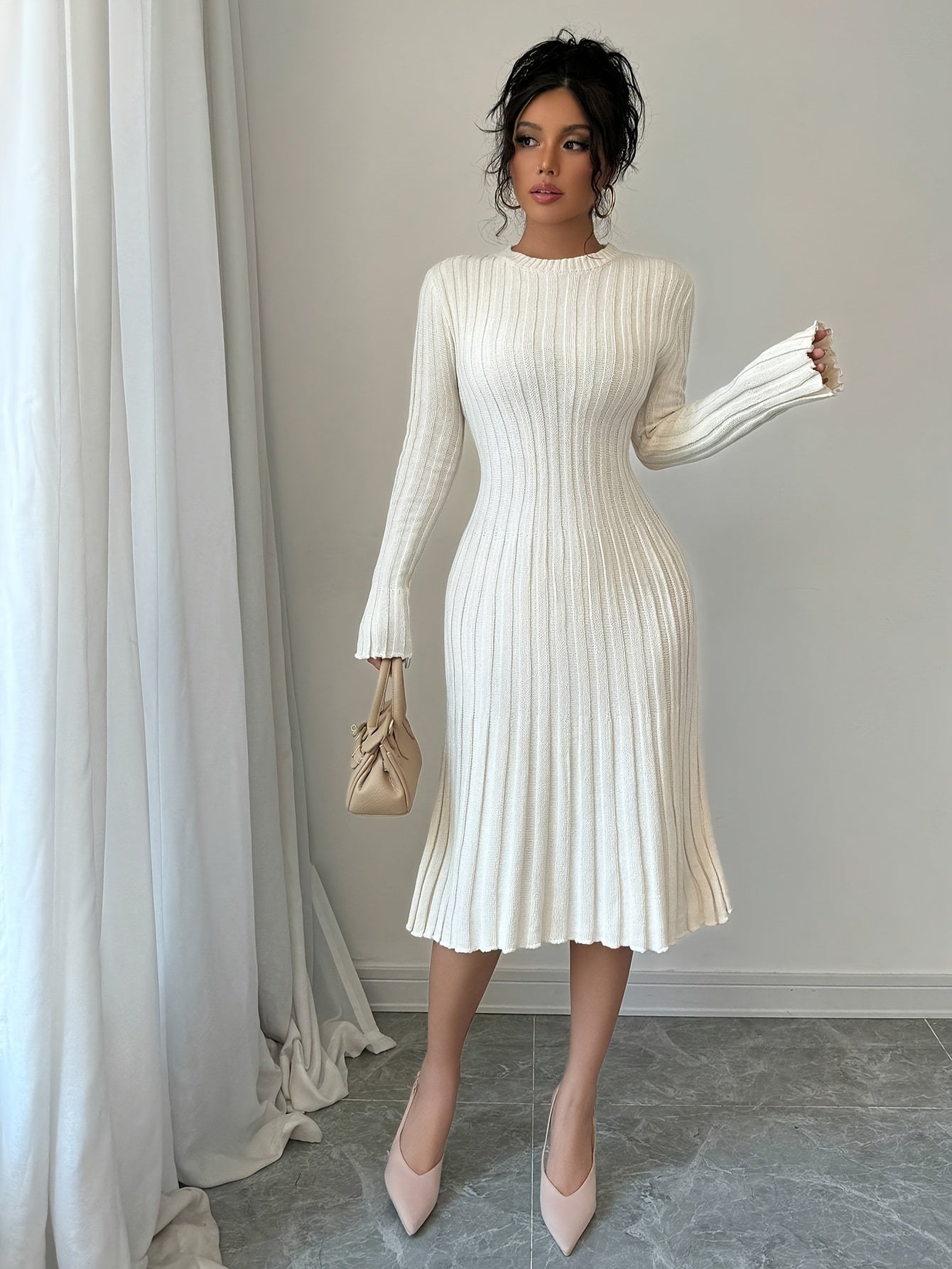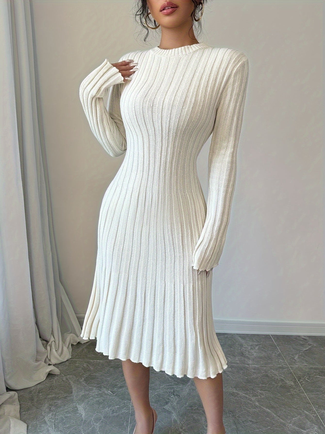 Vestido elegante de cuello redondo para mujer, color liso, manga larga