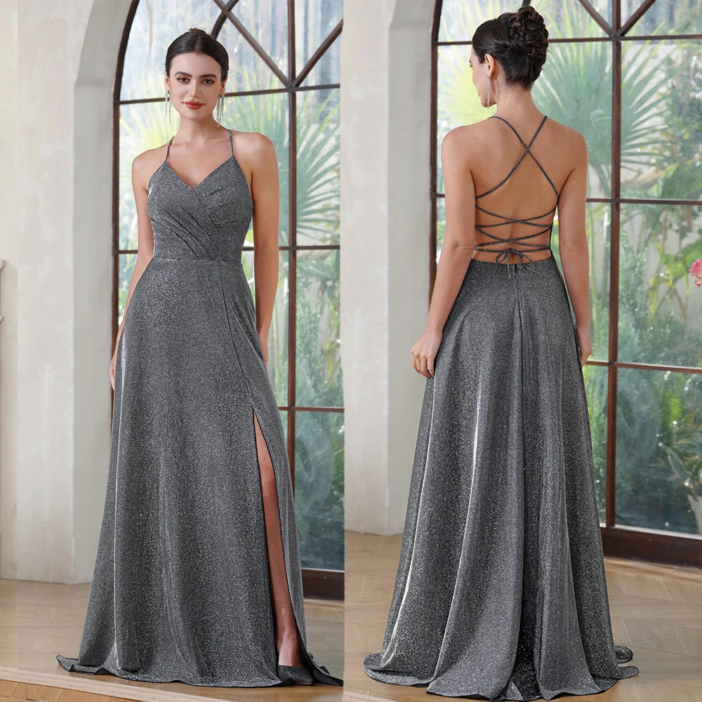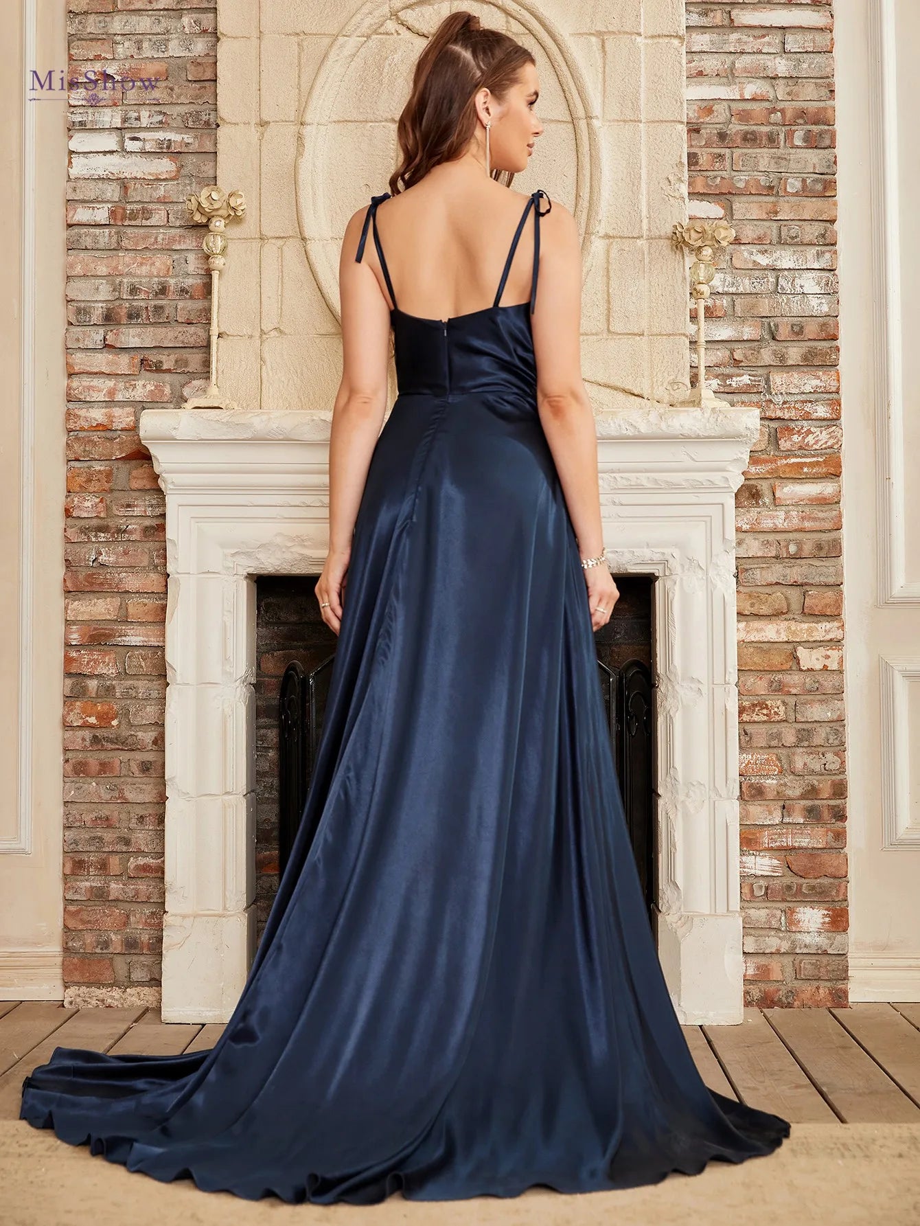 Presentamos el vestido de dama de honor azul marino de BABYONLINE, un impresionante vestido largo hasta el suelo diseñado para lucir elegante y sofisticada. Con tirantes finos y una elegante abertura, este vestido de corte A es perfecto para bodas y eventos formales, atrayendo todas las miradas.