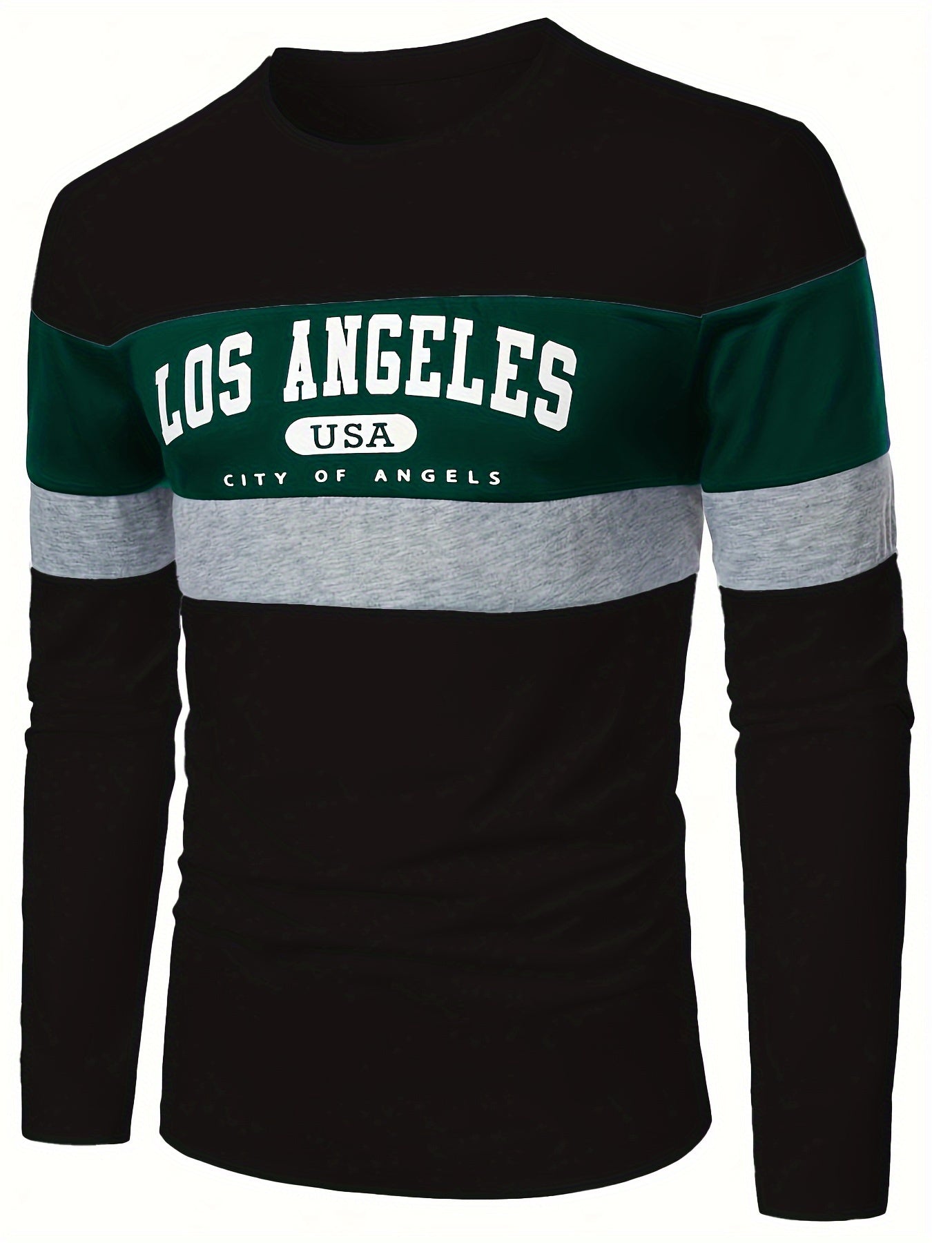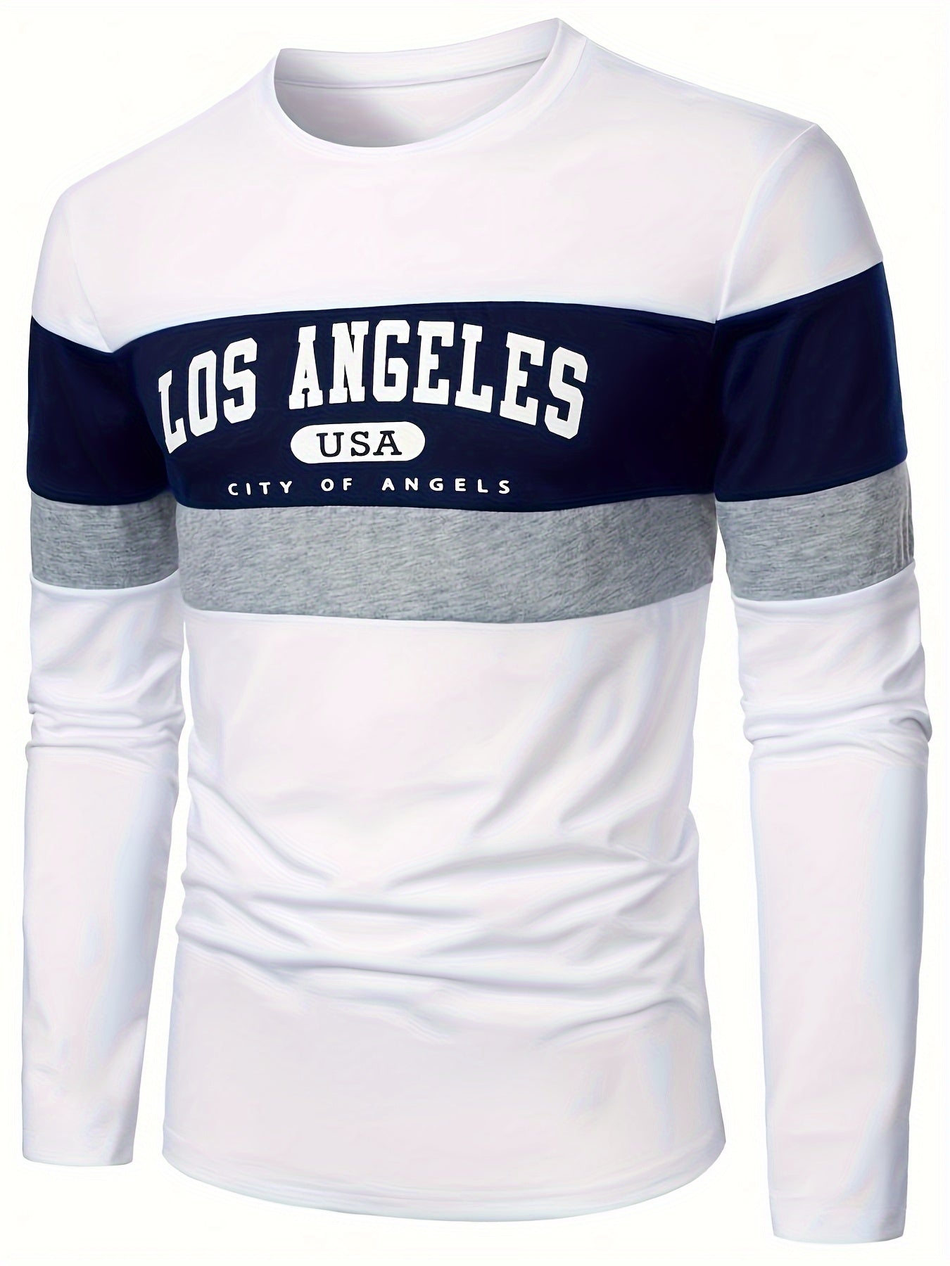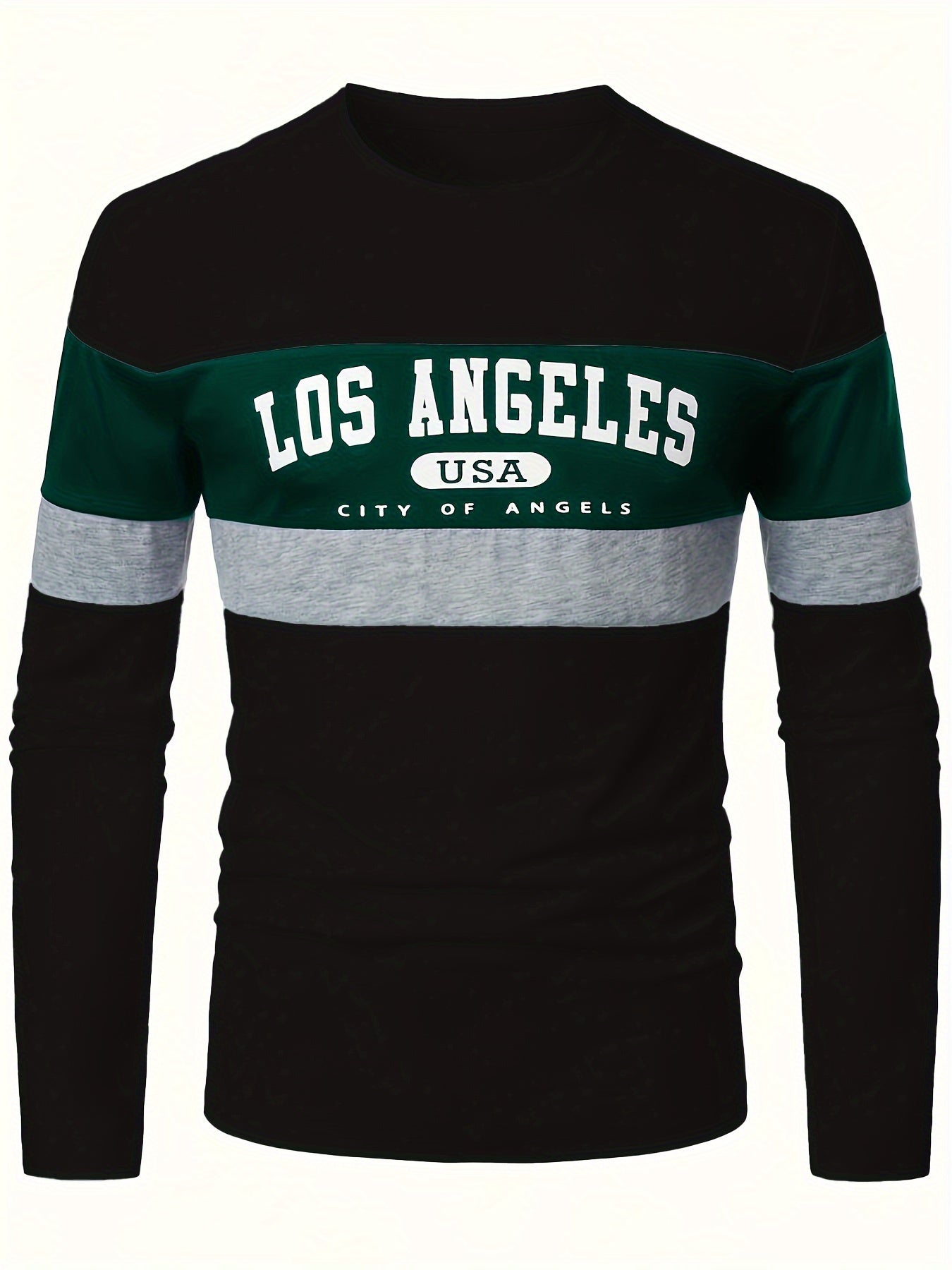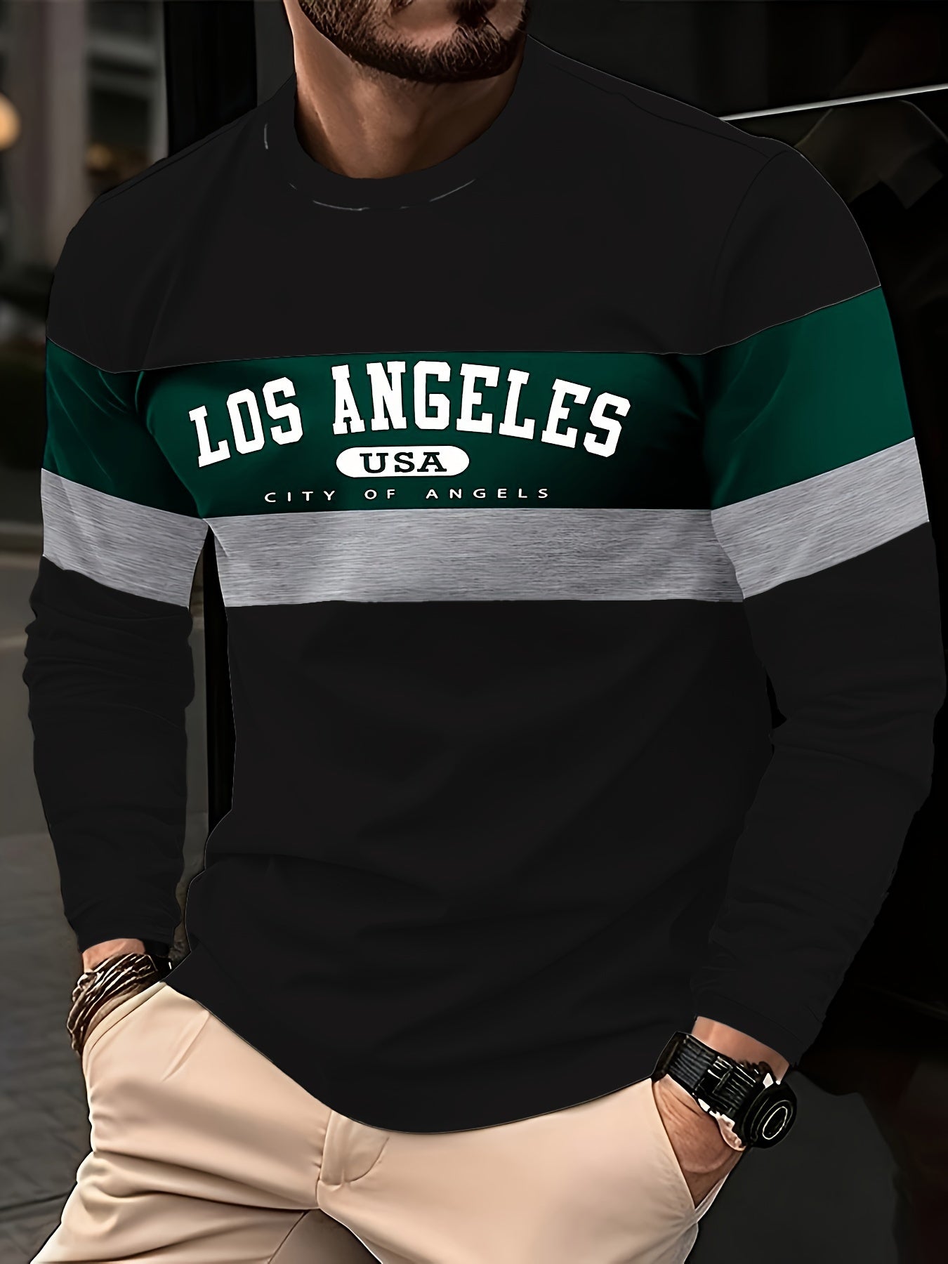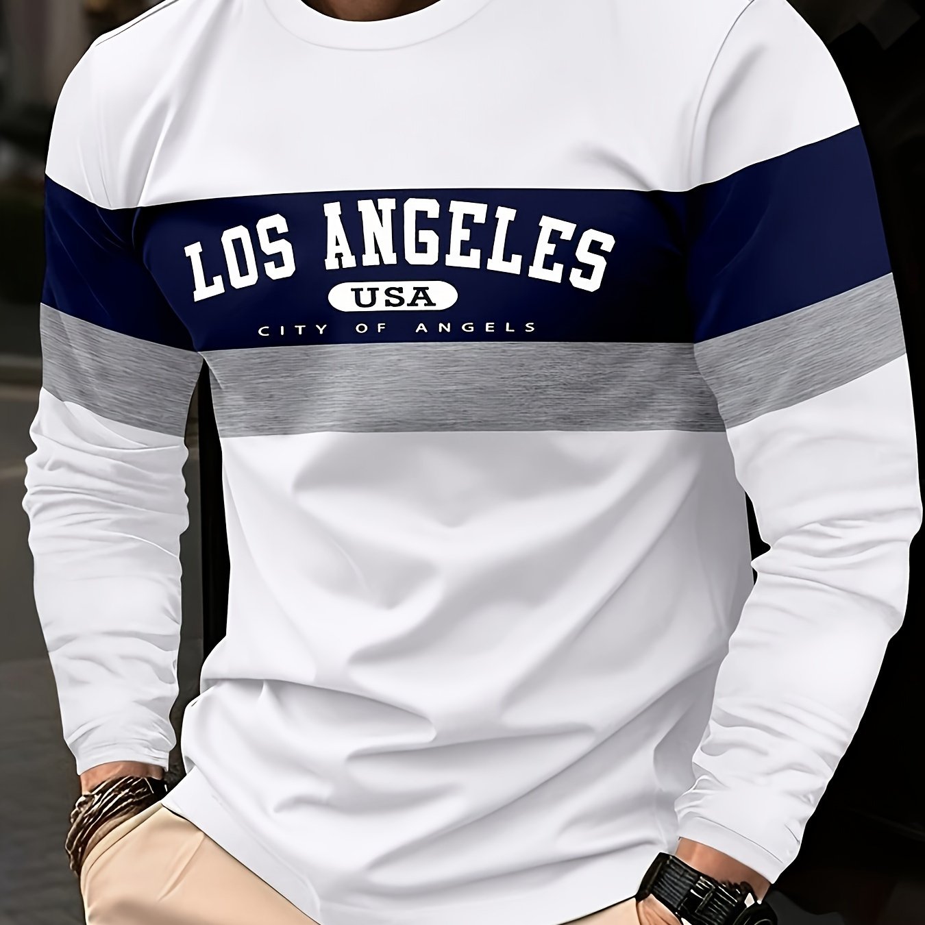 Camiseta de manga larga con gráfico de Los Ángeles para hombre - Cuello redondo cómodo