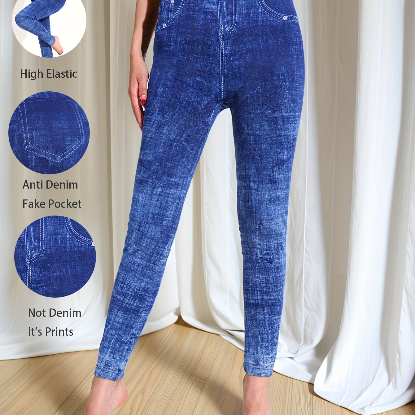 Descubre la combinación perfecta de estilo y comodidad con nuestros elegantes leggings estampados de alta elasticidad para mujer, confeccionados en imitación de mezclilla. Con textura de imitación de mezclilla y un diseño ajustado, estos leggings son perfectos para un look casual con un toque vacacional, garantizando un ajuste cómodo.