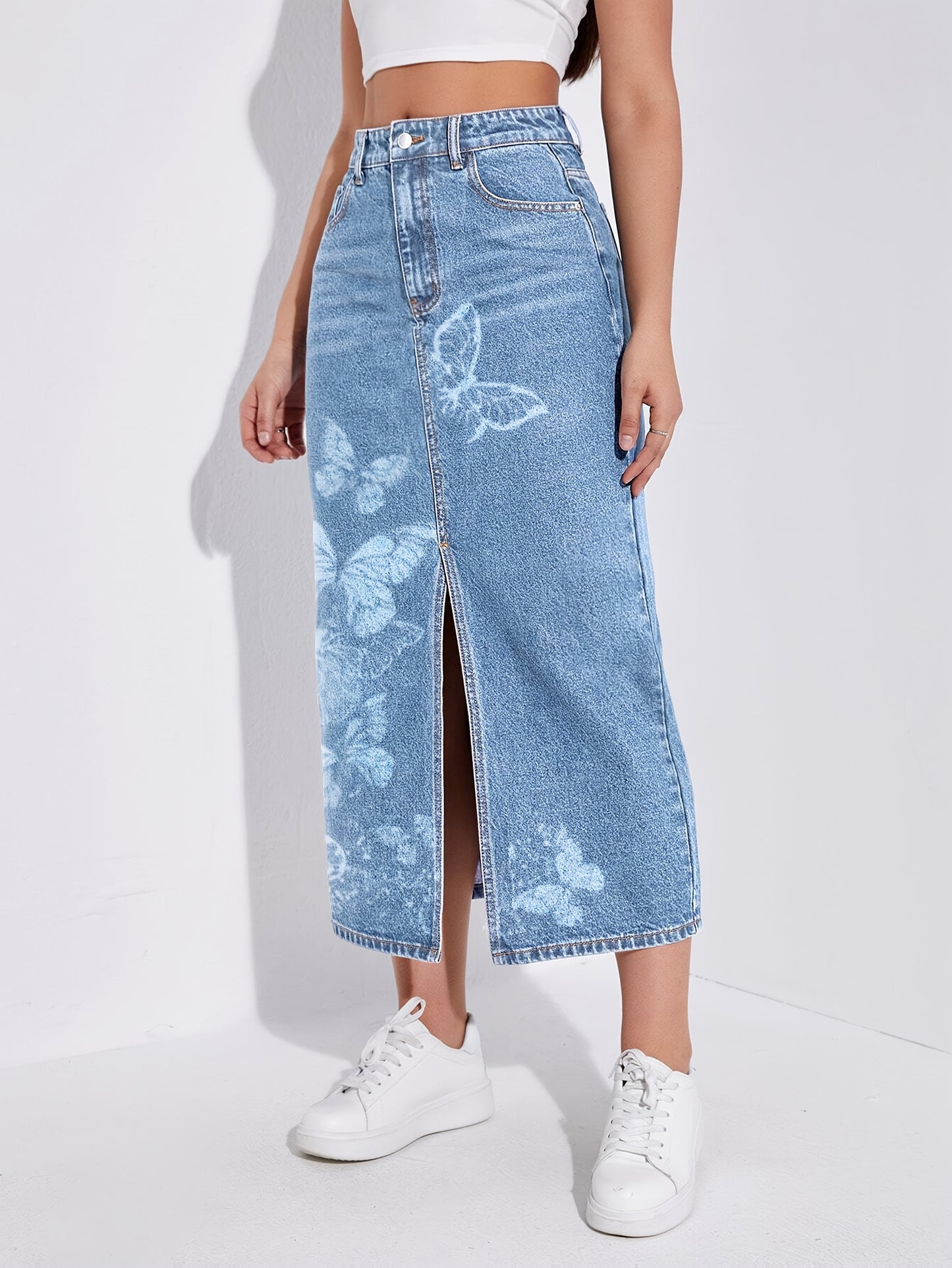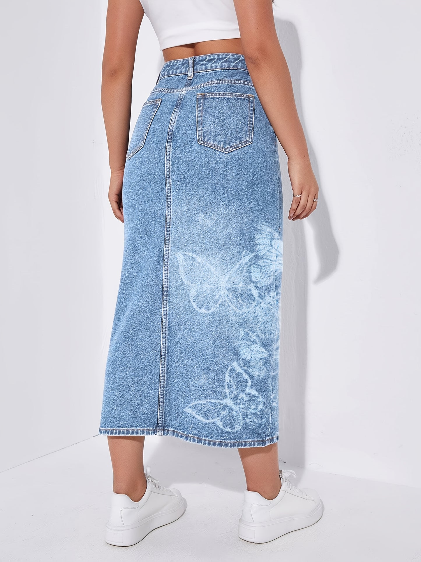 Falda asimétrica de talle alto azul claro para mujer con bolsillos