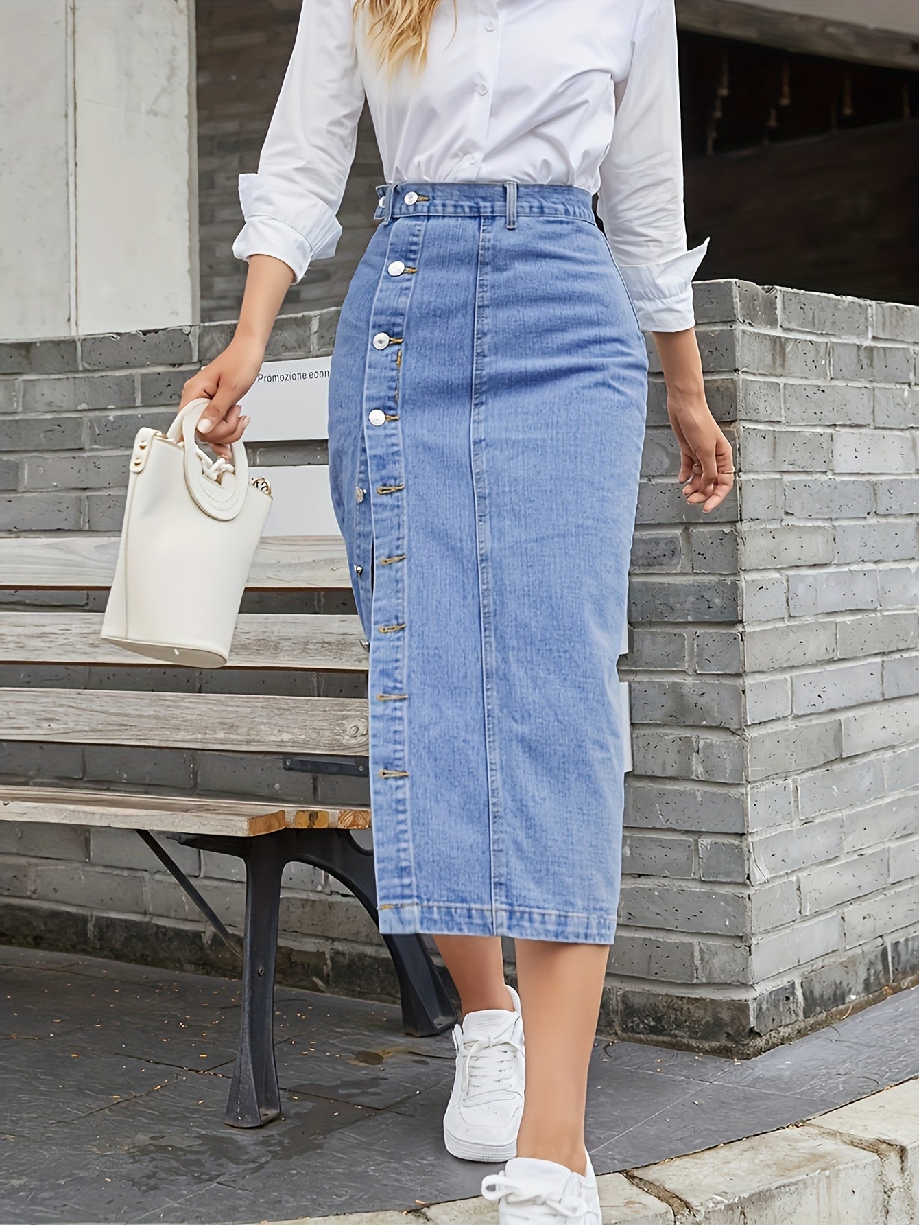 Elegante falda vaquera de cintura alta con botón delantero: estilo versátil