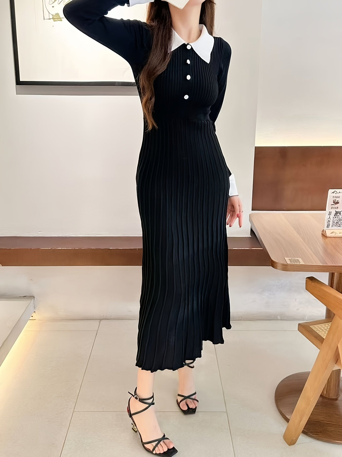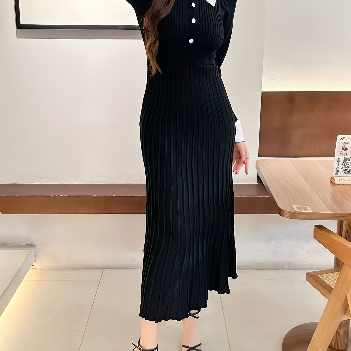 Descubre el encanto del nuevo vestido francés retro elegante con cuello y bloques de color para dama, diseñado meticulosamente para realzar tu estilo esta temporada. Confeccionado en 100 % poliéster, este vestido largo presenta un moderno diseño de bloques de color que combina elegancia y comodidad, convirtiéndolo en una prenda imprescindible para cualquier armario vanguardista.