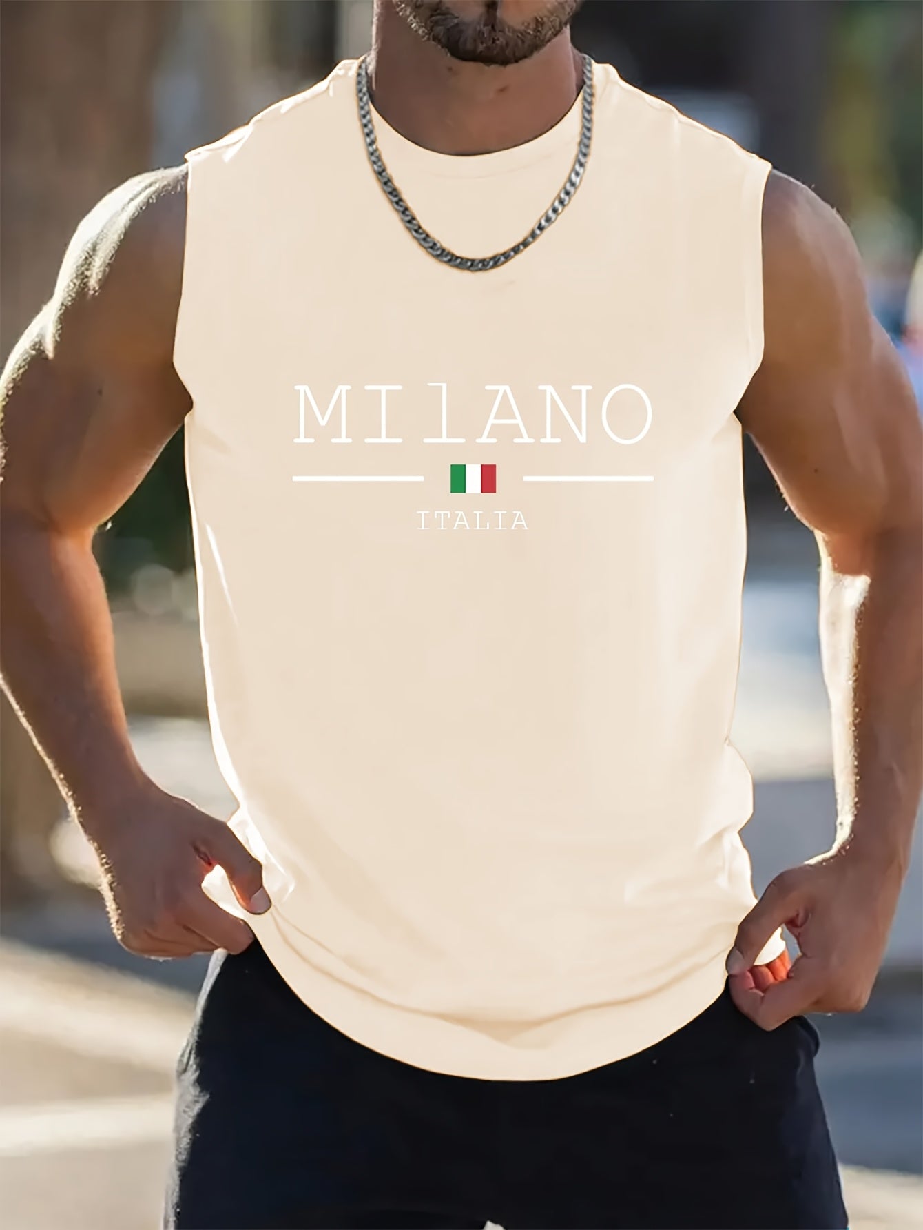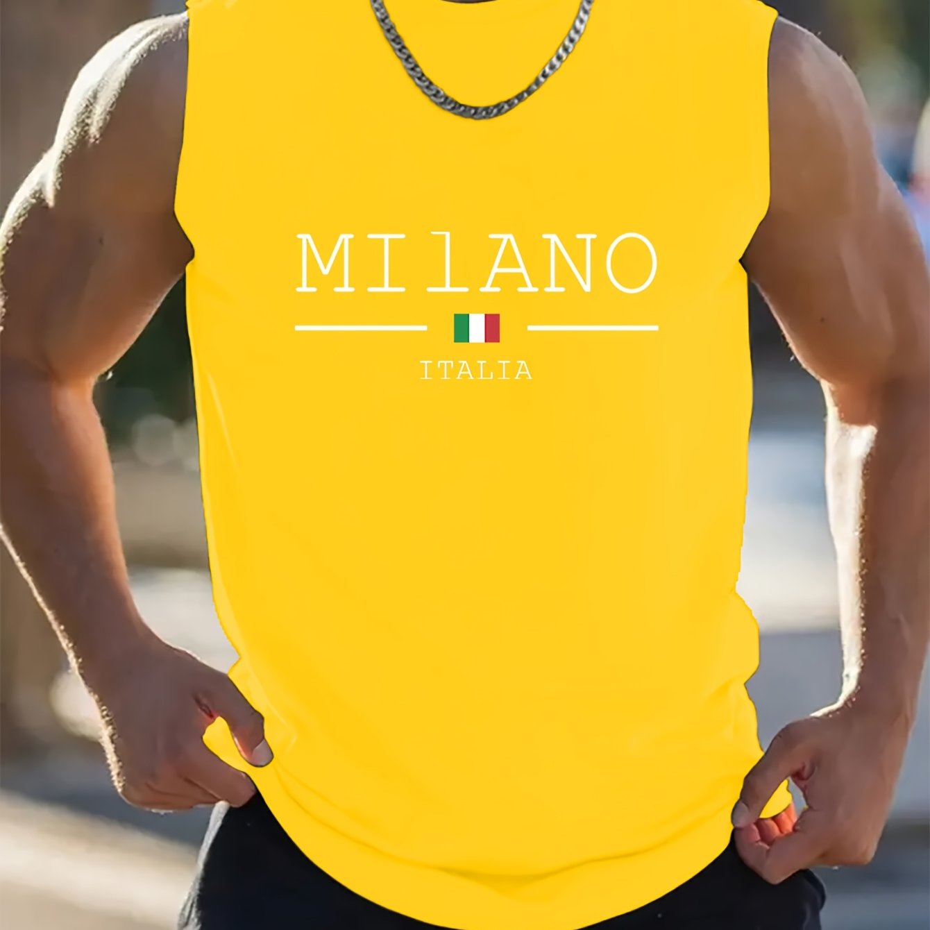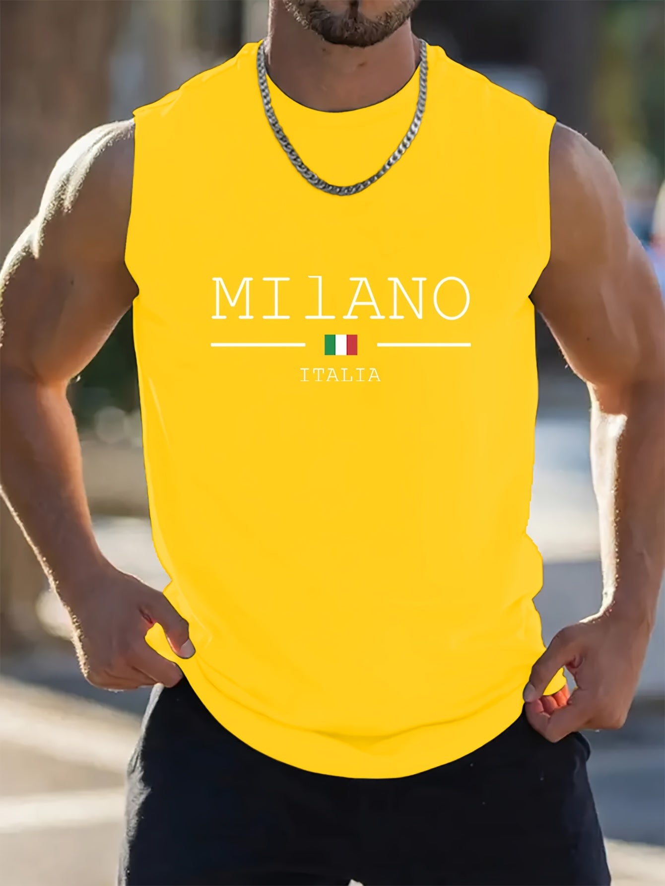 Camiseta de tirantes de verano amarilla vibrante - Estampado gráfico "Milano Italy" para hombre