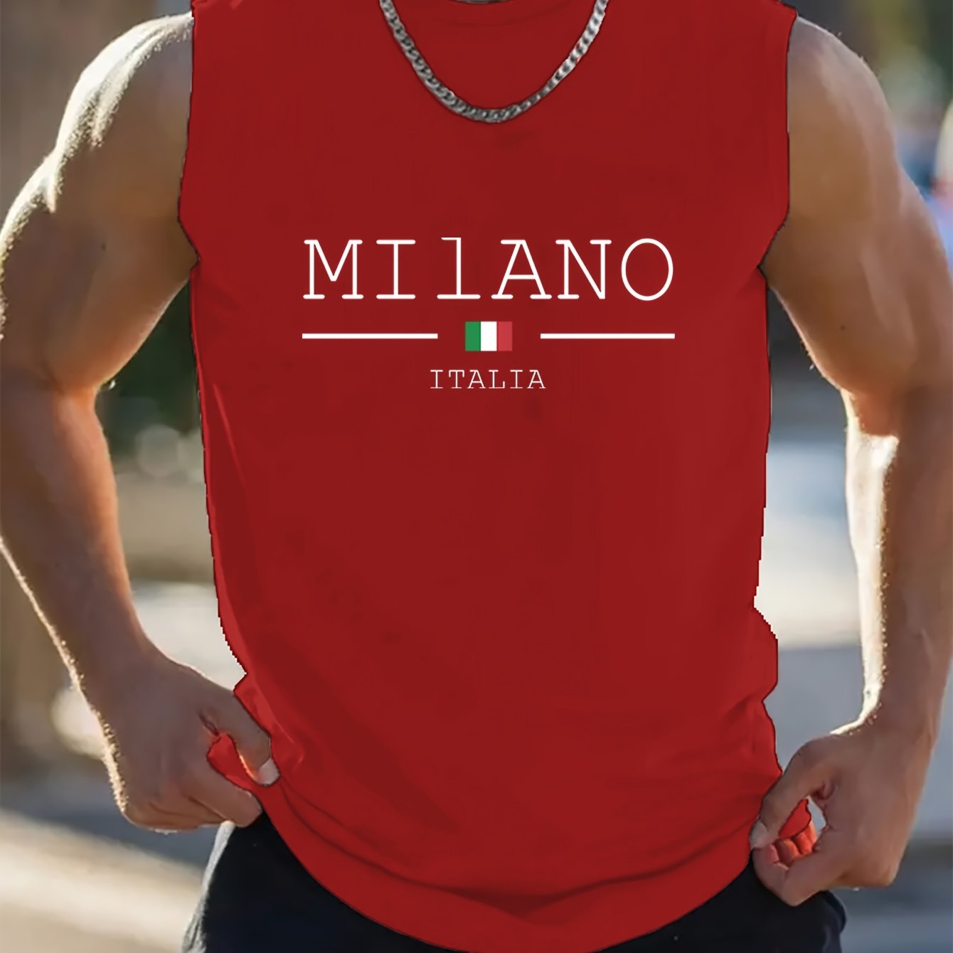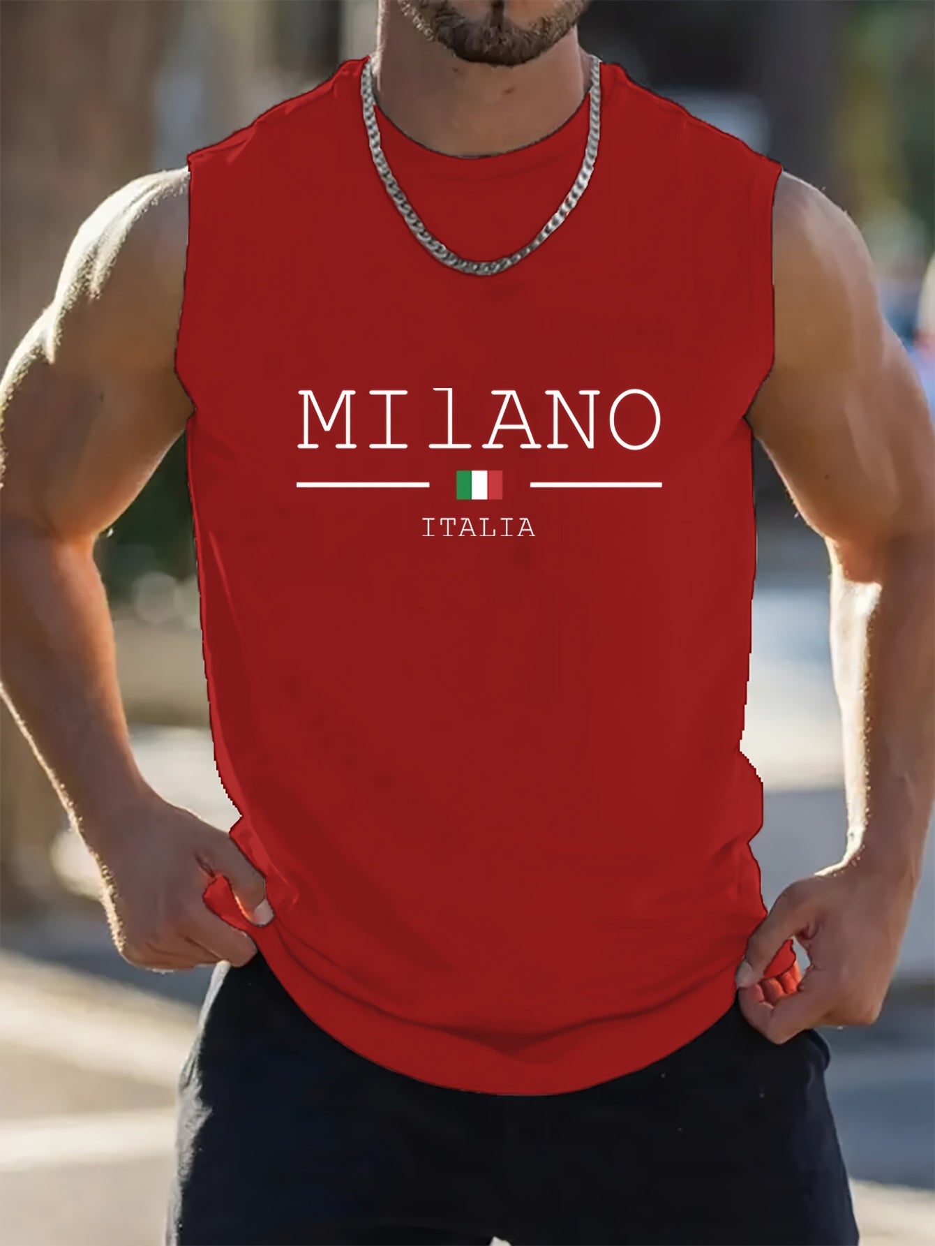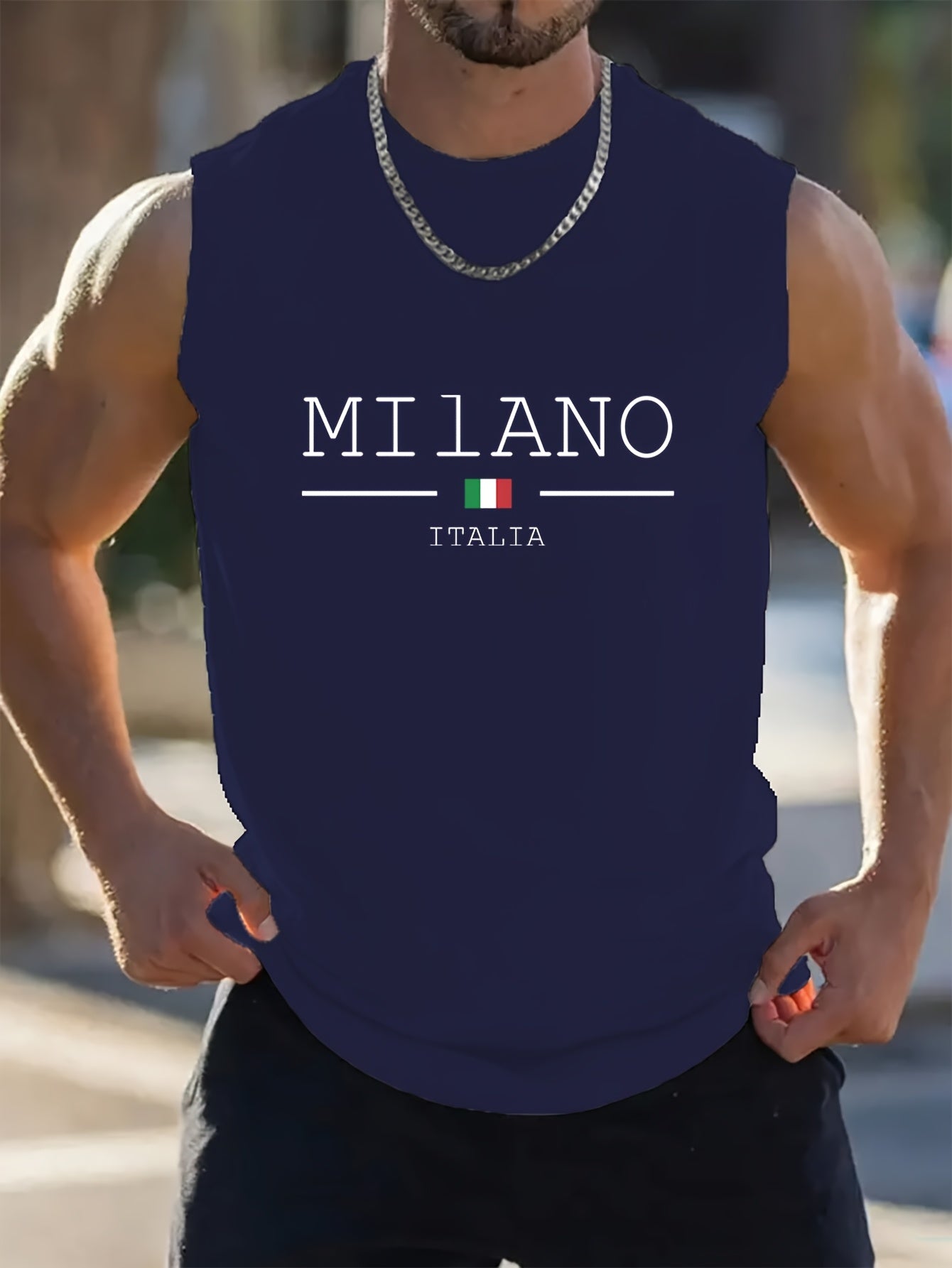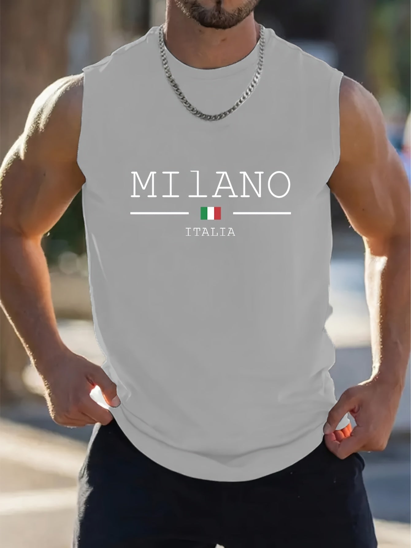 Camiseta de tirantes de verano amarilla vibrante - Estampado gráfico "Milano Italy" para hombre