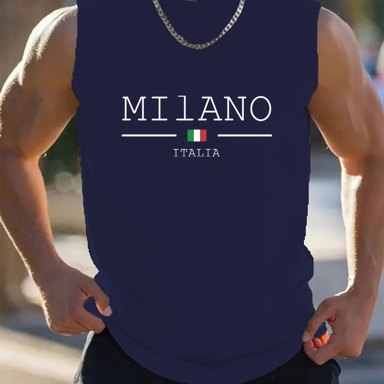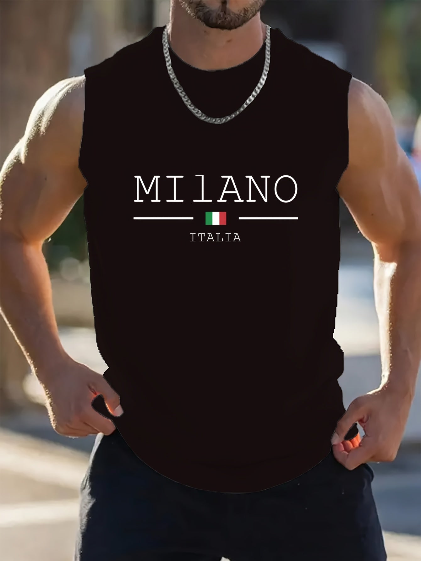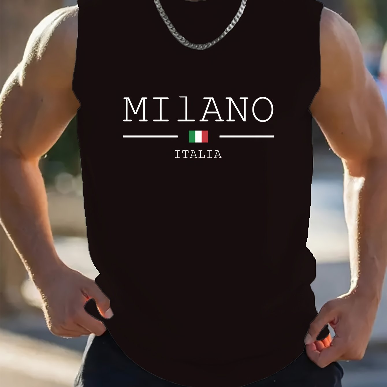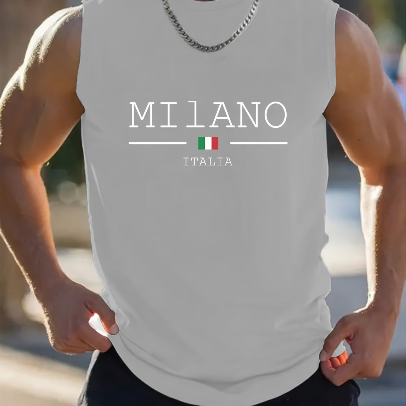 Mejora tu armario de verano con la camiseta sin mangas de verano para hombre de American Streetwear en un vibrante tono amarillo. Con un llamativo estampado gráfico de "Milano Italia", esta camiseta informal transpirable de cuello redondo está diseñada para ofrecerte comodidad y estilo, perfecta para un look informal durante los meses de verano.