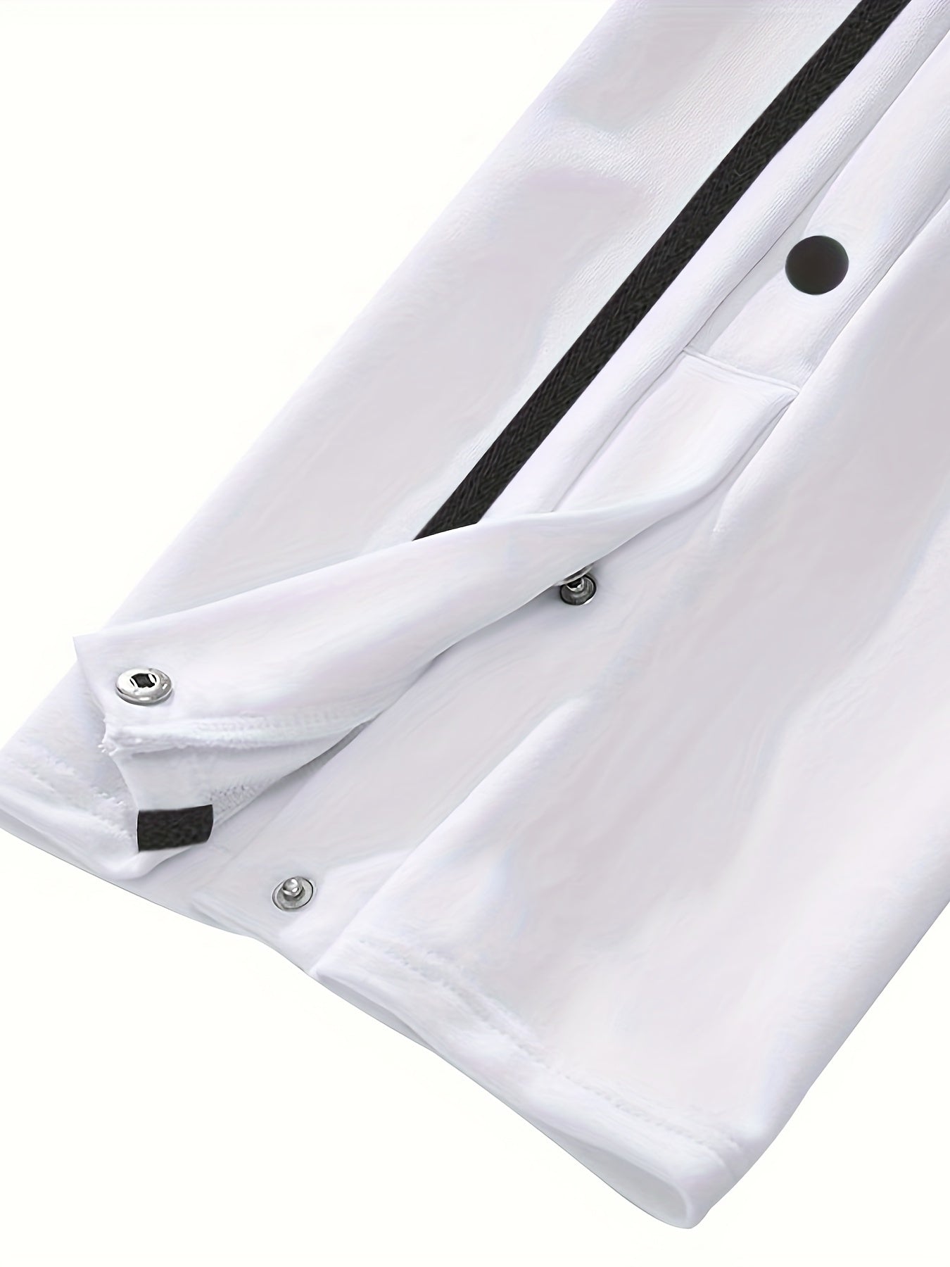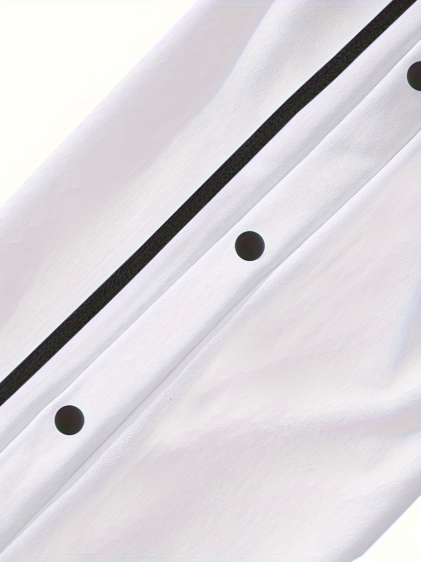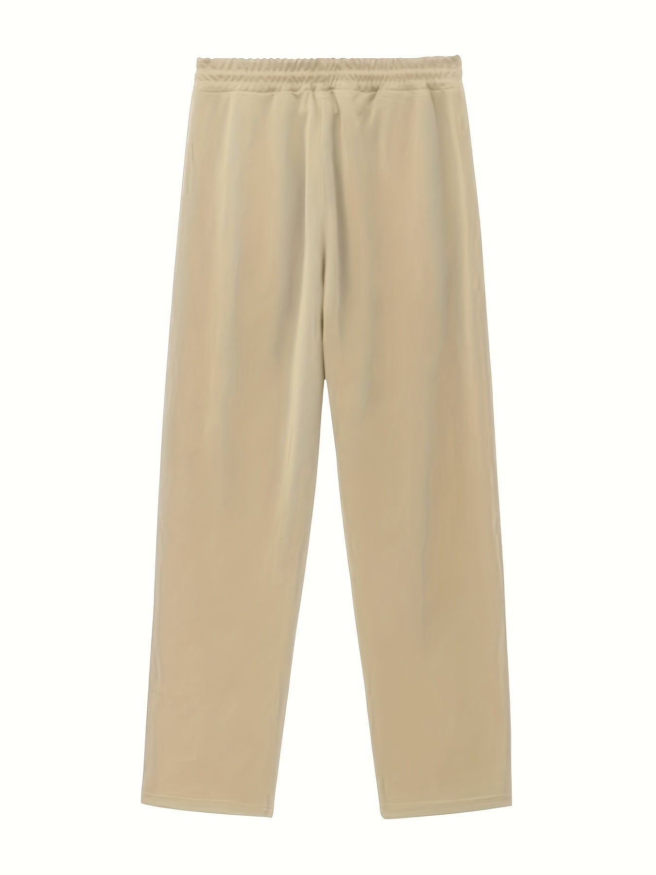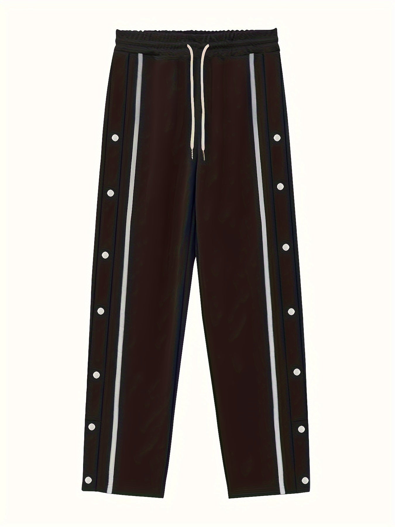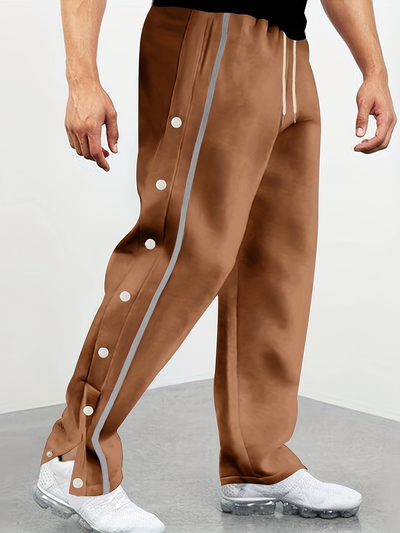 Pantalones deportivos casuales azules para hombre con cintura blanca con cordón ajustable, botones y bolsillos laterales. Pantalones cómodos para todas las estaciones, ideales para uso casual.