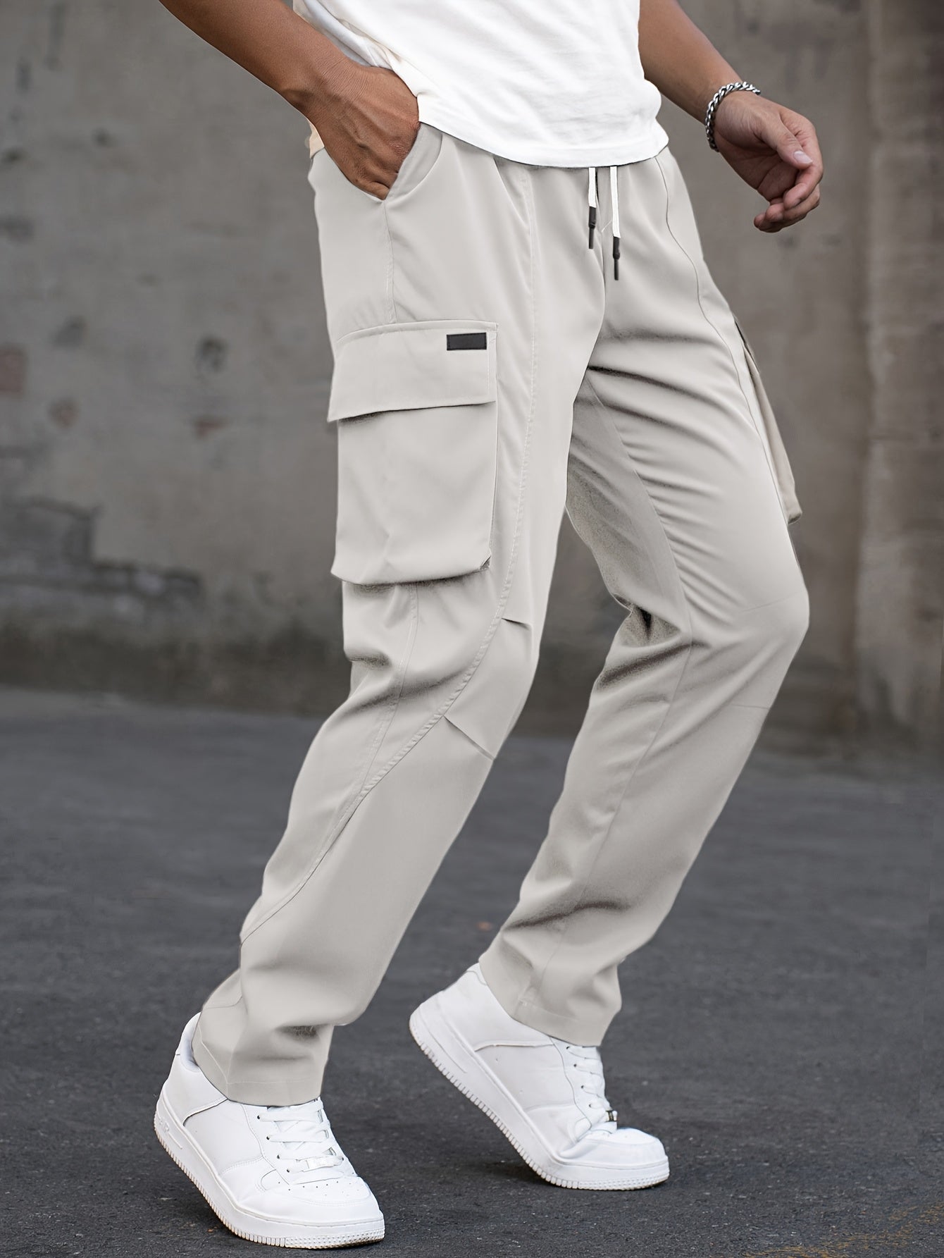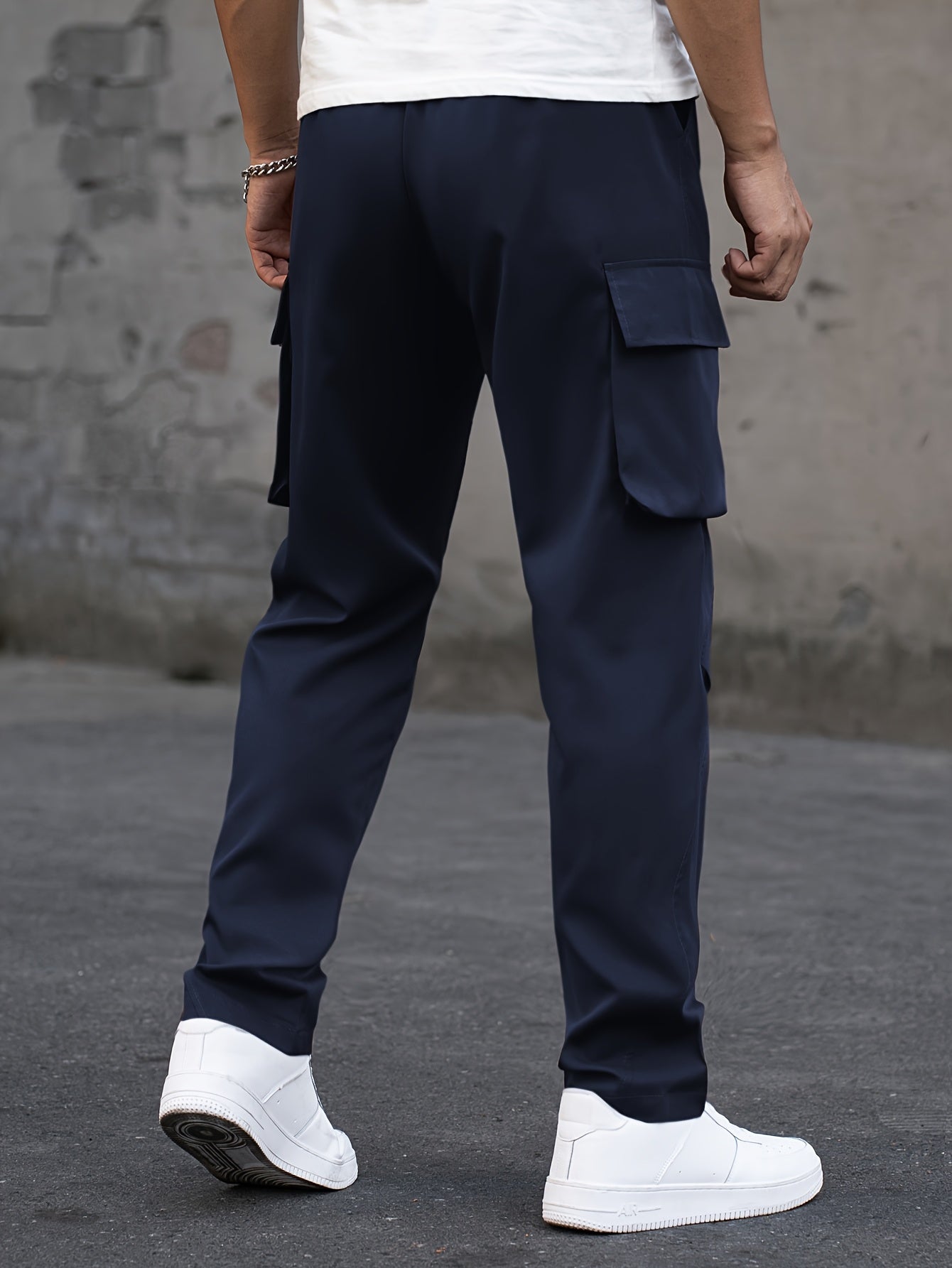 Pantalones cargo casuales para hombre con múltiples bolsillos - Verde oliva moderno, tela no elástica, perfectos para un look informal