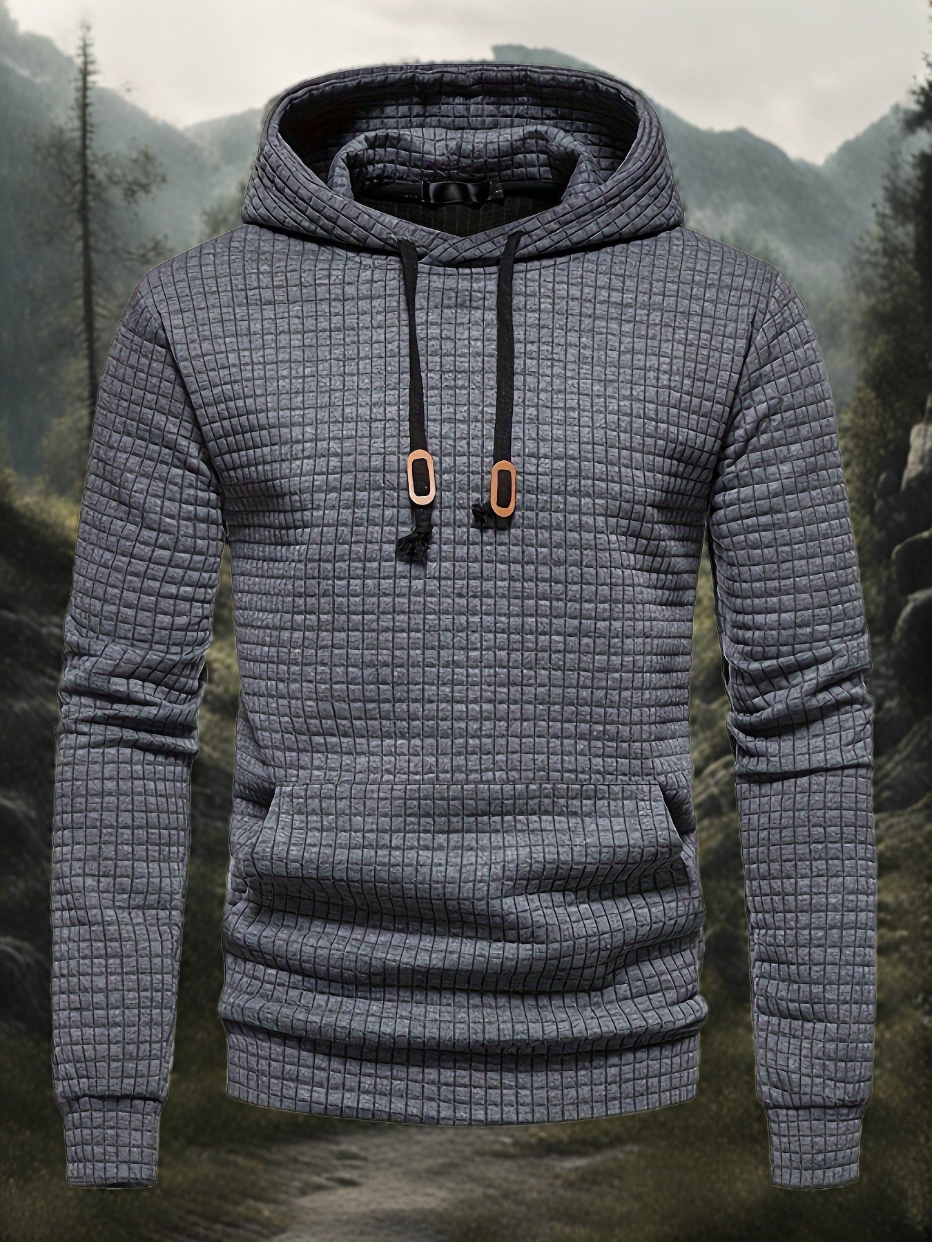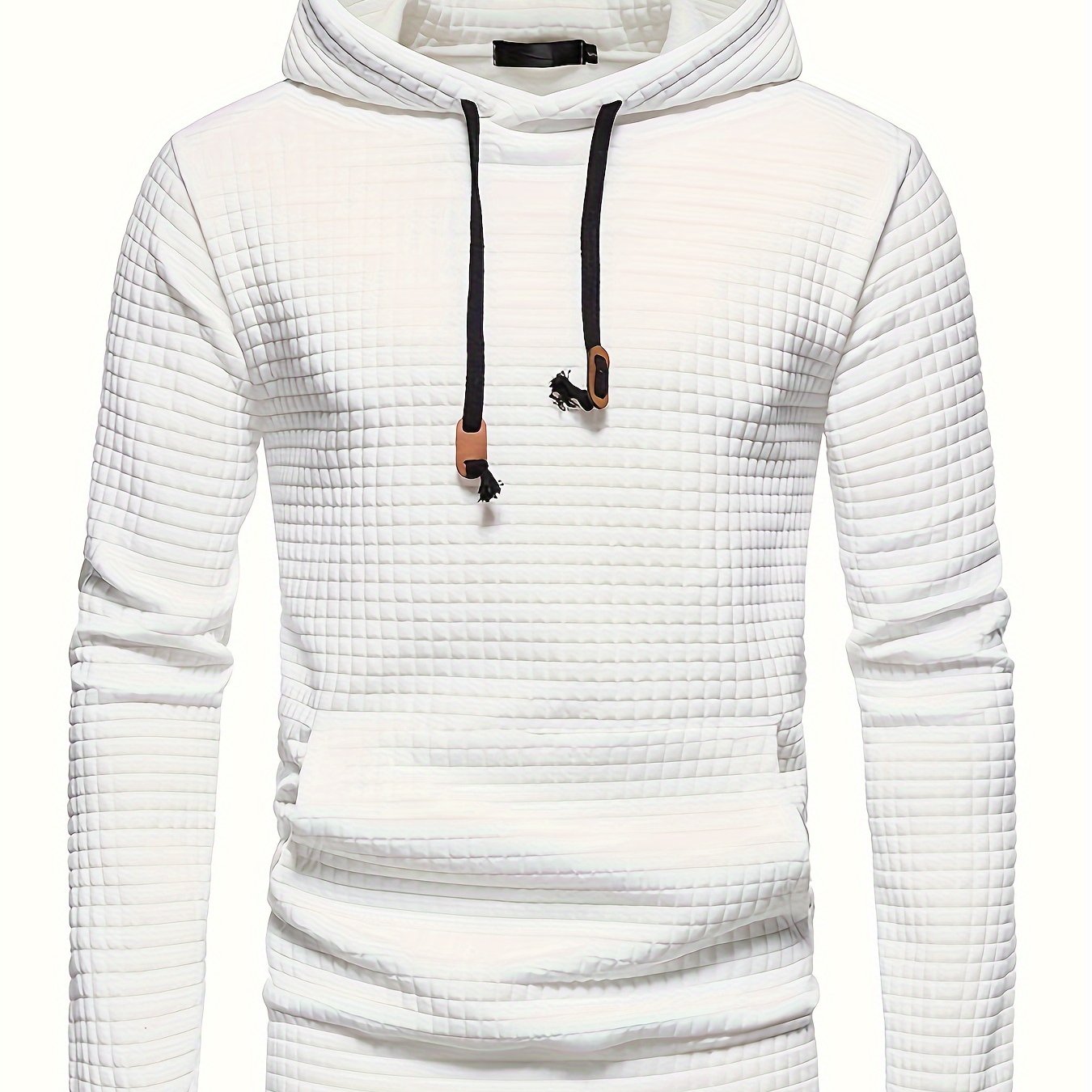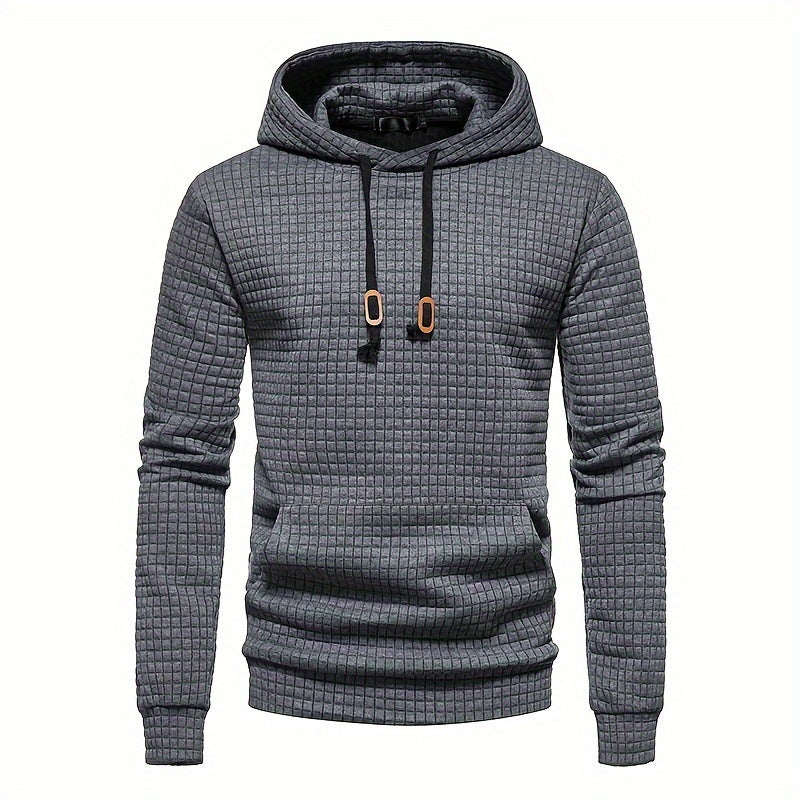 Men'S Casual Long Sleeve Hooded Sweatshirt, Polyester 100% Solid Color Pullover with Drawstring, Loose Fit for Four Seasons