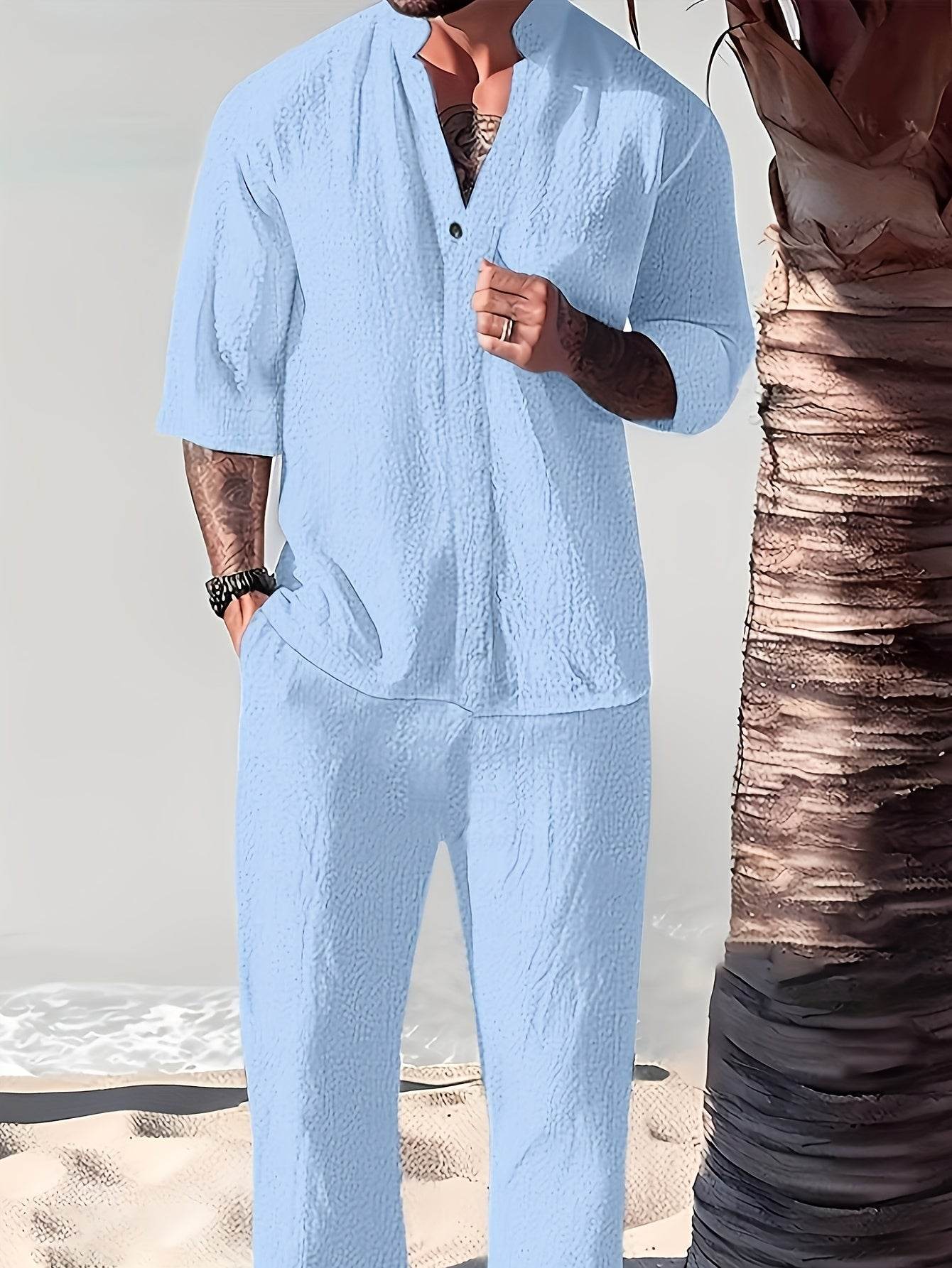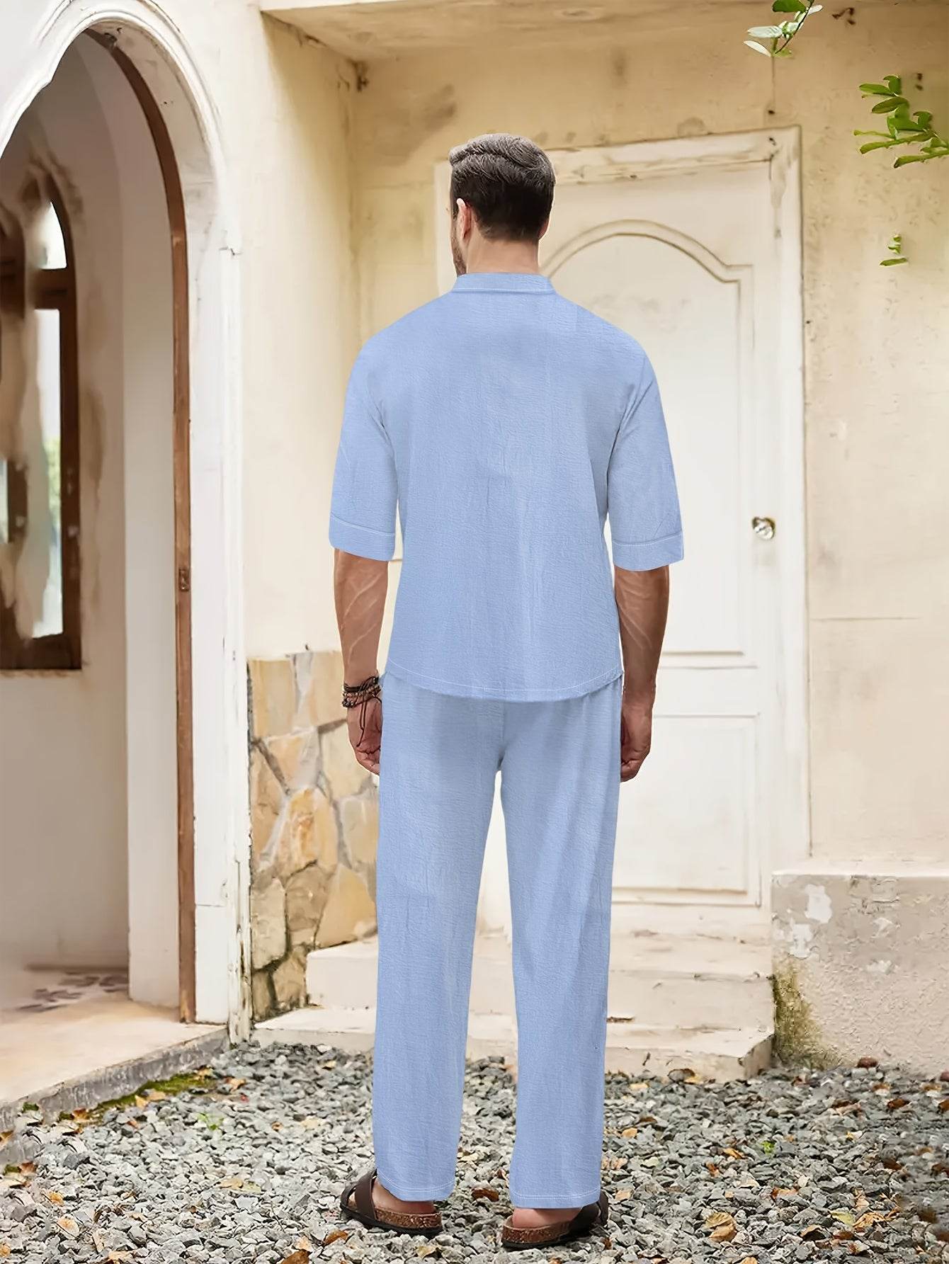 Camisa informal estampada para hombre: elegante cuello mandarín para cualquier ocasión.