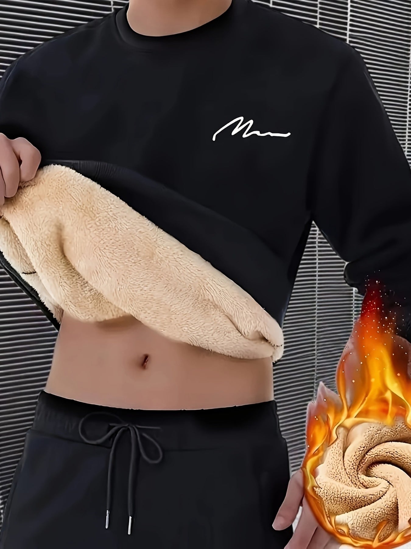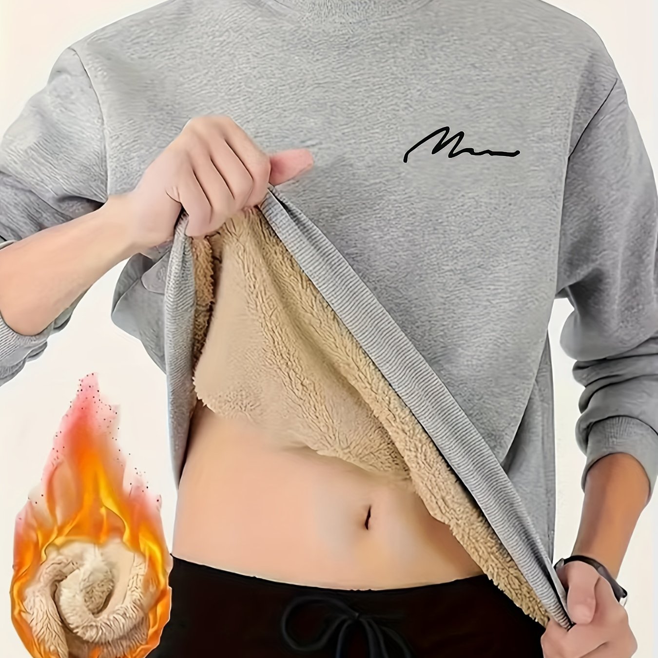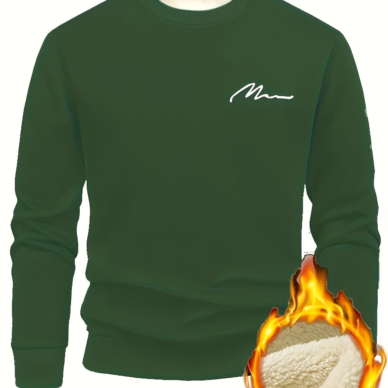 Men's Script Letter Print Fleece Sweatshirt, Warm And Thick Crew Neck And Long Sleeve Top For Winter And Fall