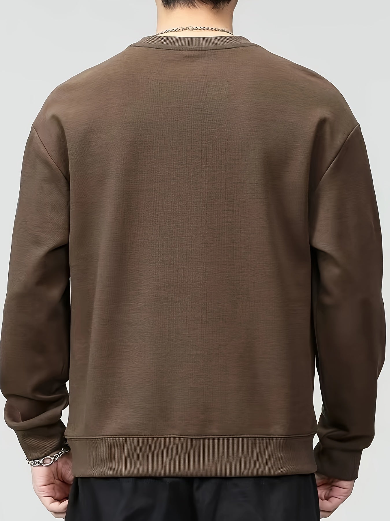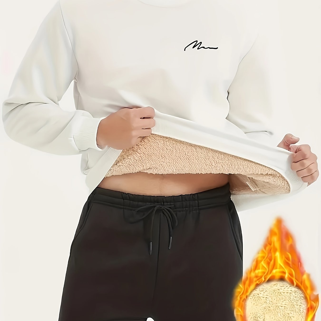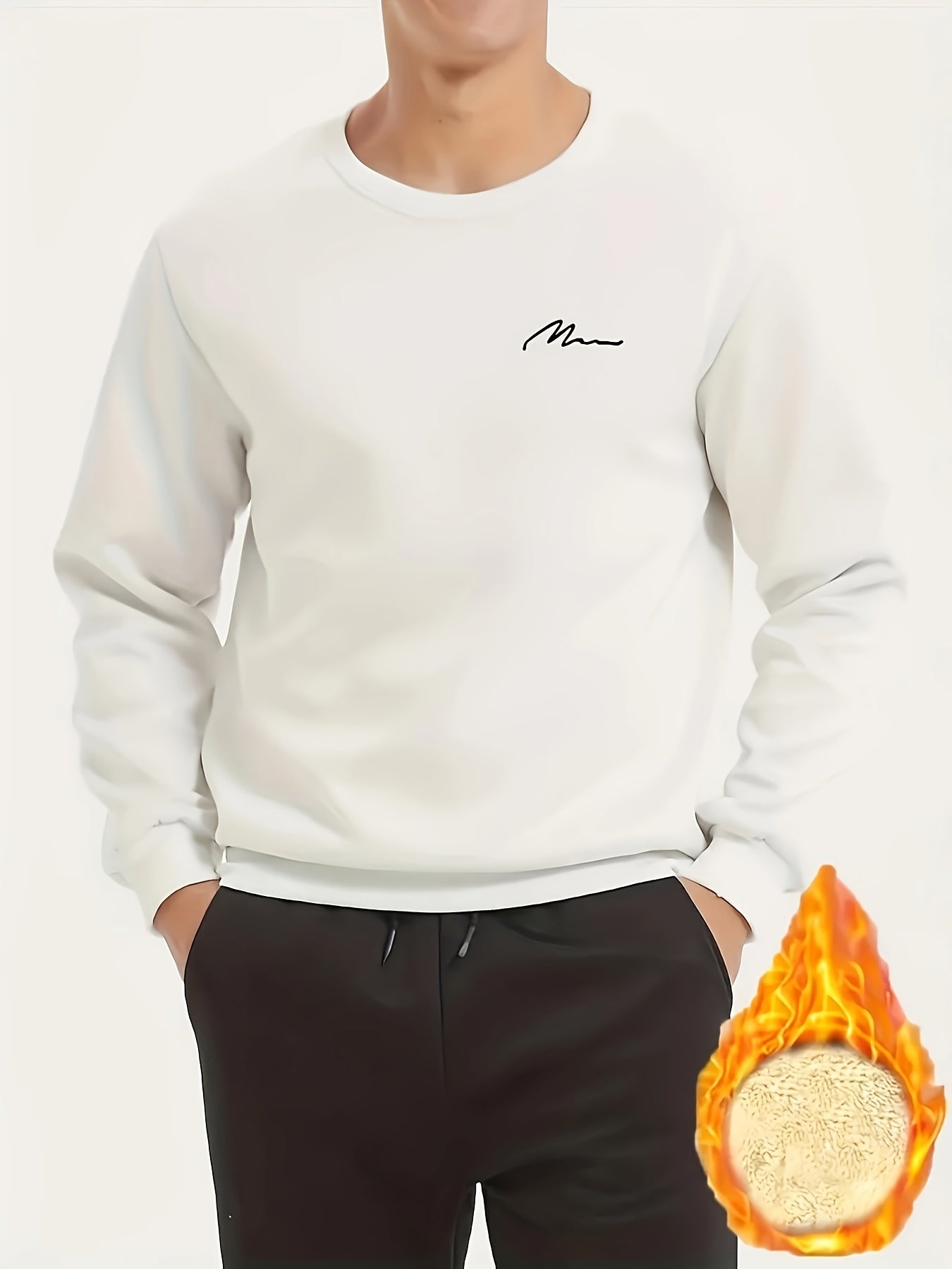 Men's Script Letter Print Fleece Sweatshirt, Warm And Thick Crew Neck And Long Sleeve Top For Winter And Fall