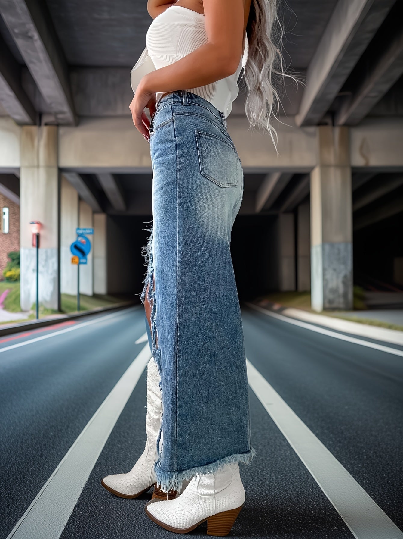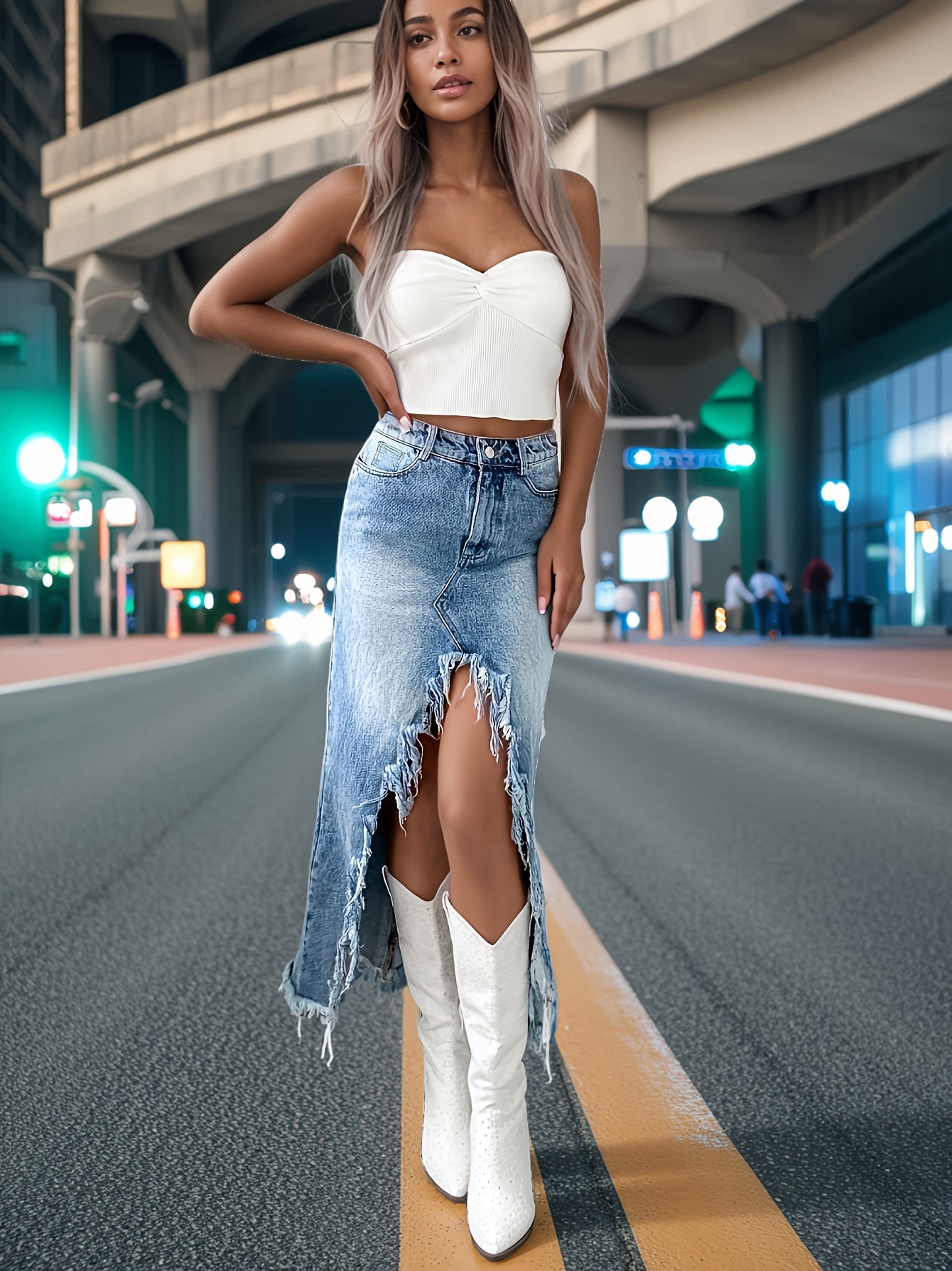 Falda vaquera desgastada para mujer - Elegante diseño en forma de A
