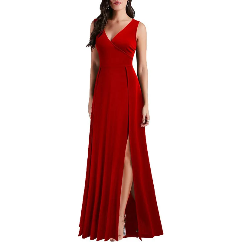 Vestidos de dama de honor de satén personalizados, corte A, escote en V y largo hasta el suelo