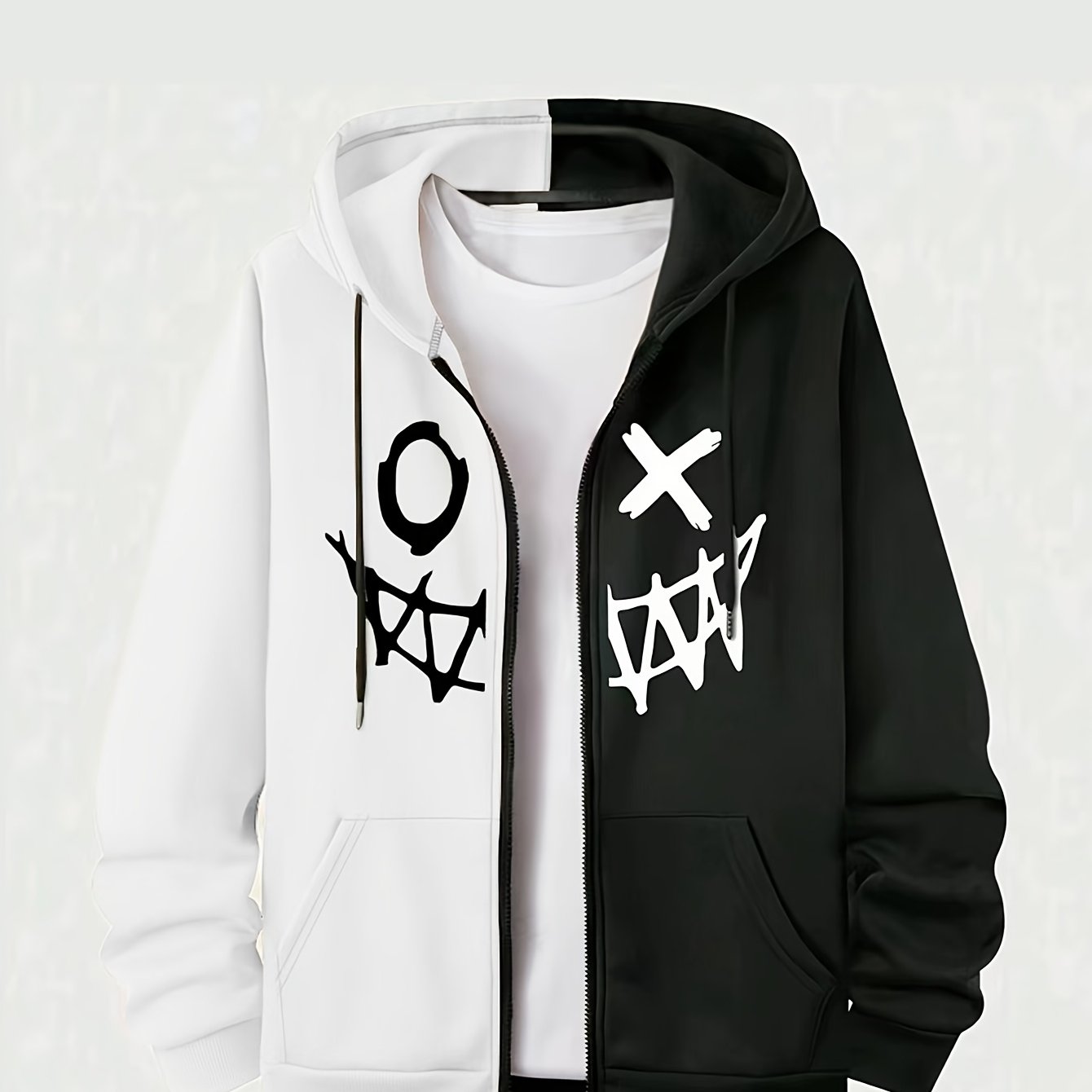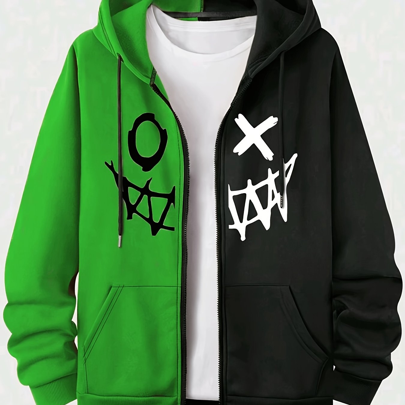 Chaqueta con capucha y cremallera completa para hombre: abrigo informal bicolor para otoño/invierno