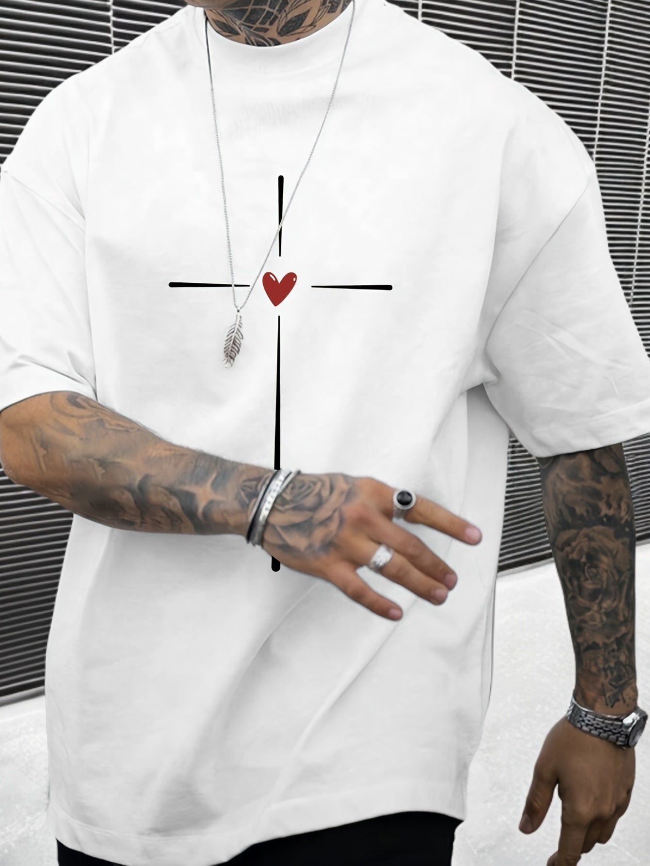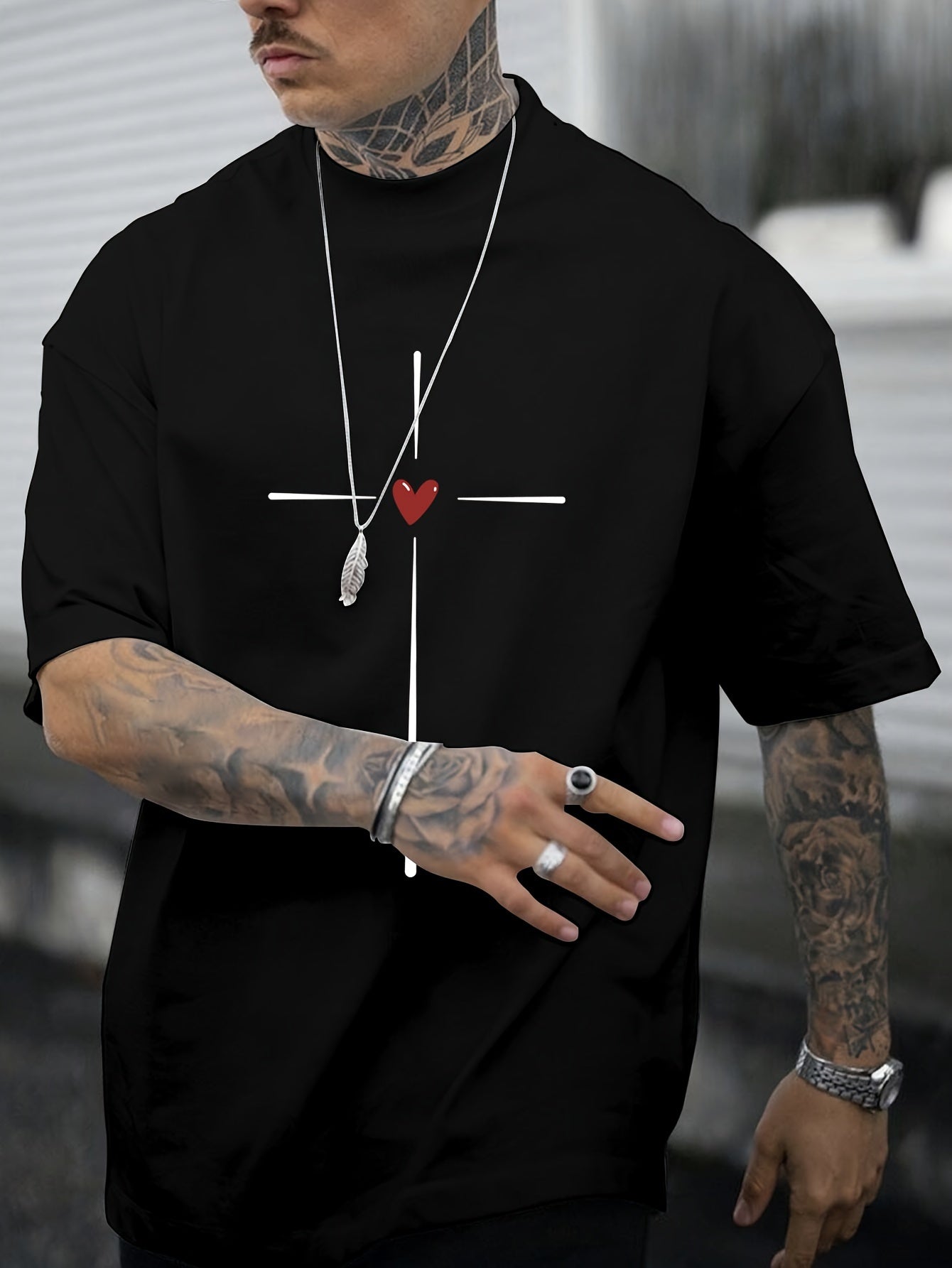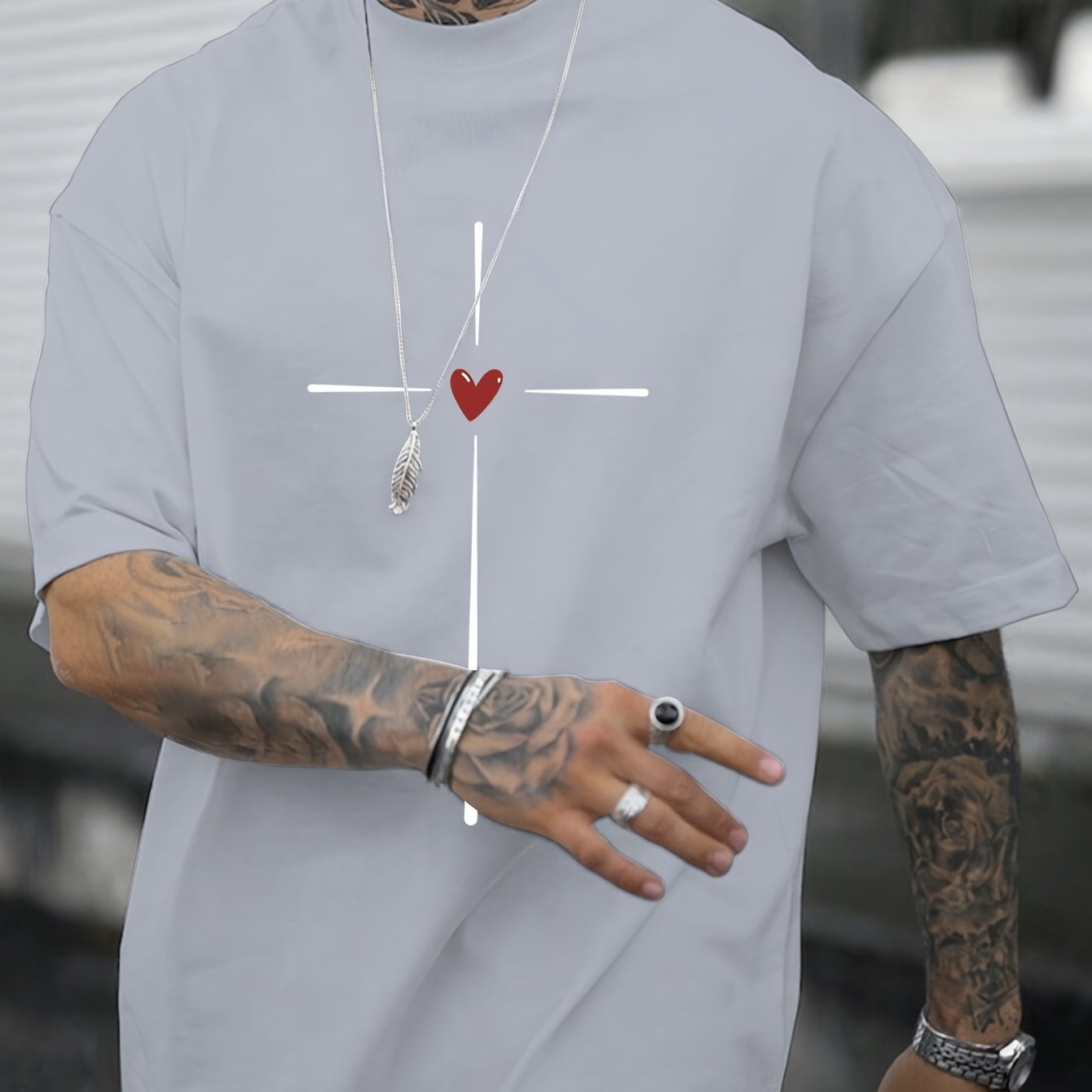 Camiseta informal con estampado gráfico de corazones para hombre - Estilo veraniego