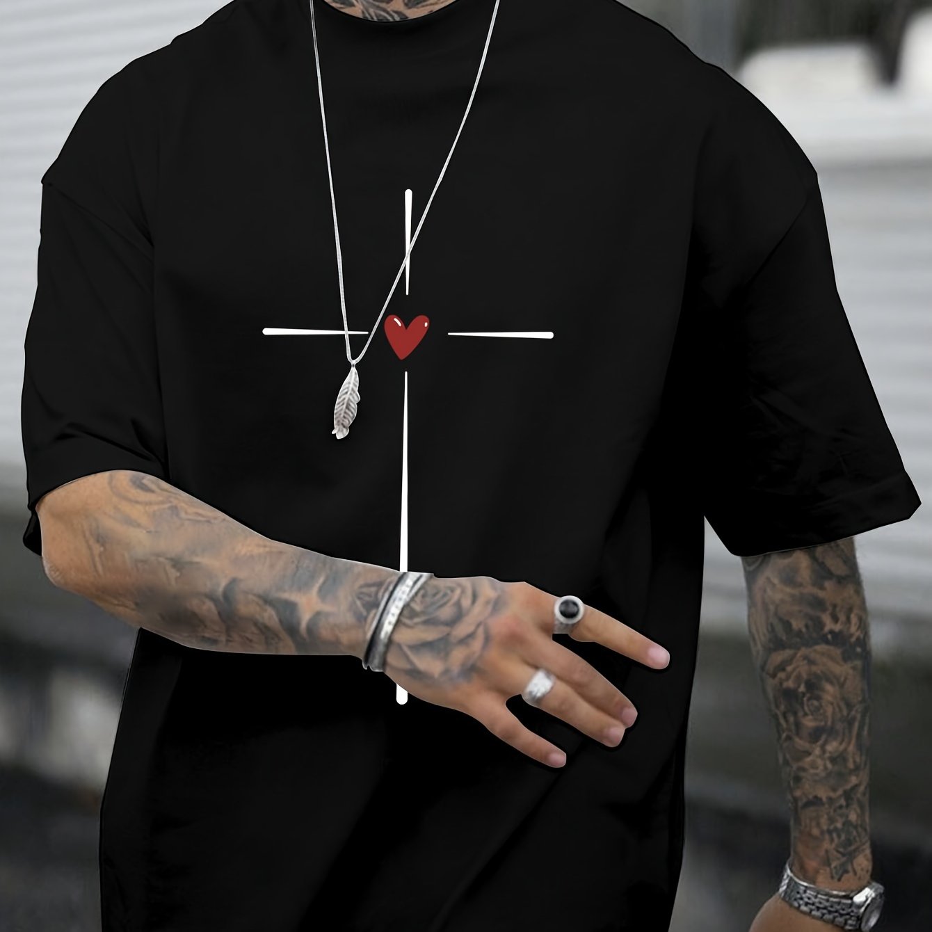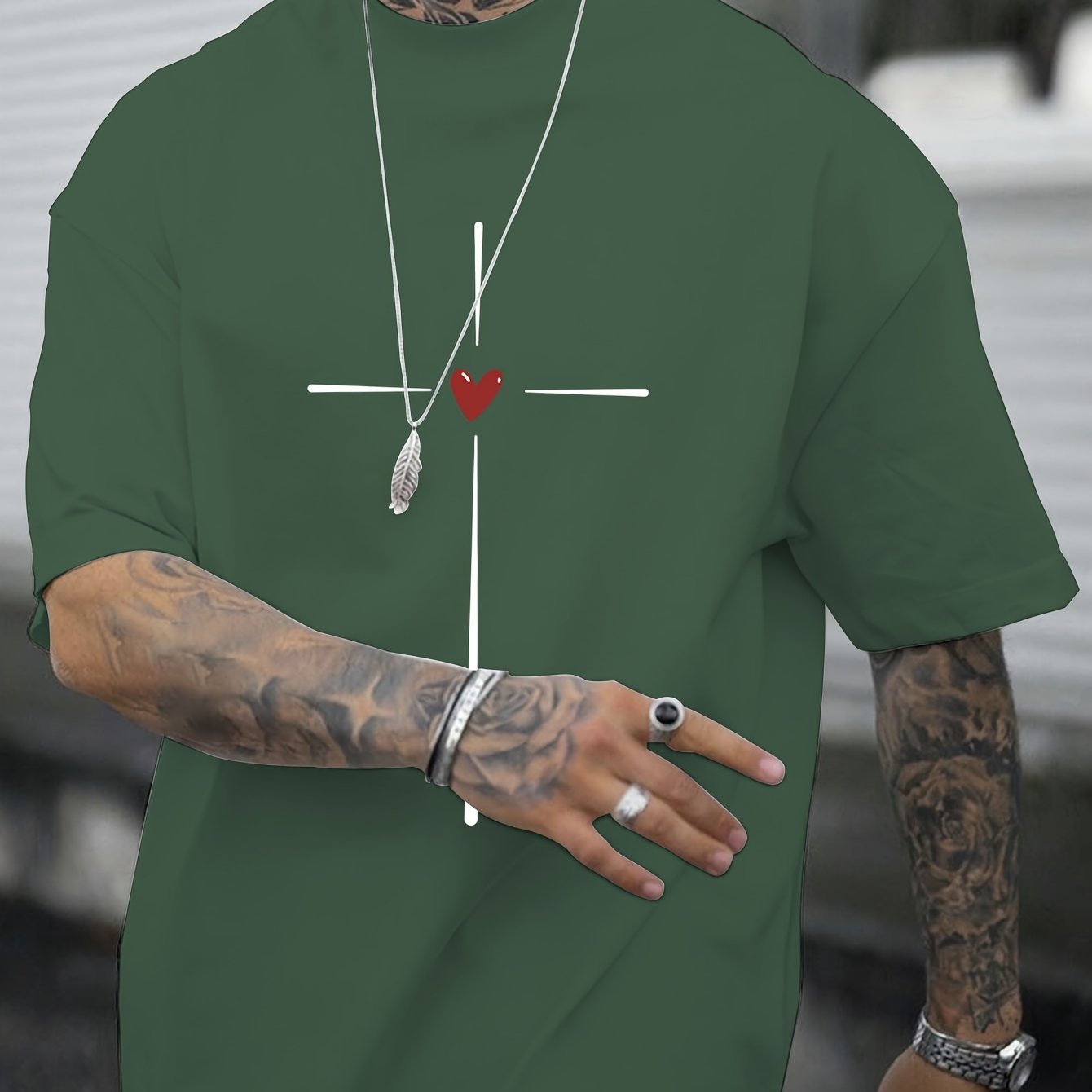 Renueva tu armario de verano con nuestra camiseta casual con estampado gráfico Love Heart para hombre. Esta elegante camiseta combina comodidad y estilo contemporáneo, ideal para salidas informales. Fabricada en poliéster ligeramente elástico, ofrece un ajuste cómodo con un llamativo diseño gráfico de corazón.