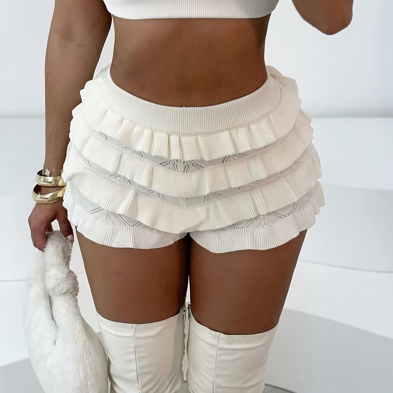 Minifalda con capas Y2K y top con volantes para mujer - Chic Beachwear