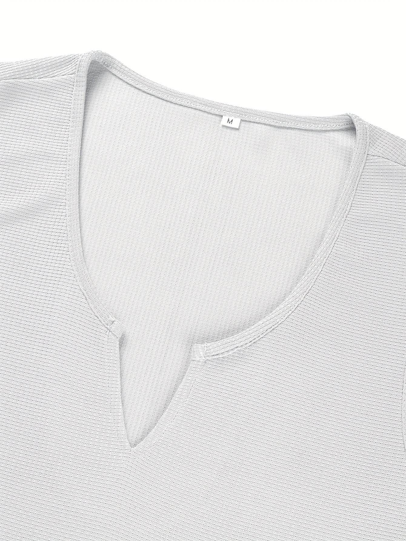Top de punto gofre con cuello en V para hombre: estilo casual, elegante y retro en amarillo vibrante