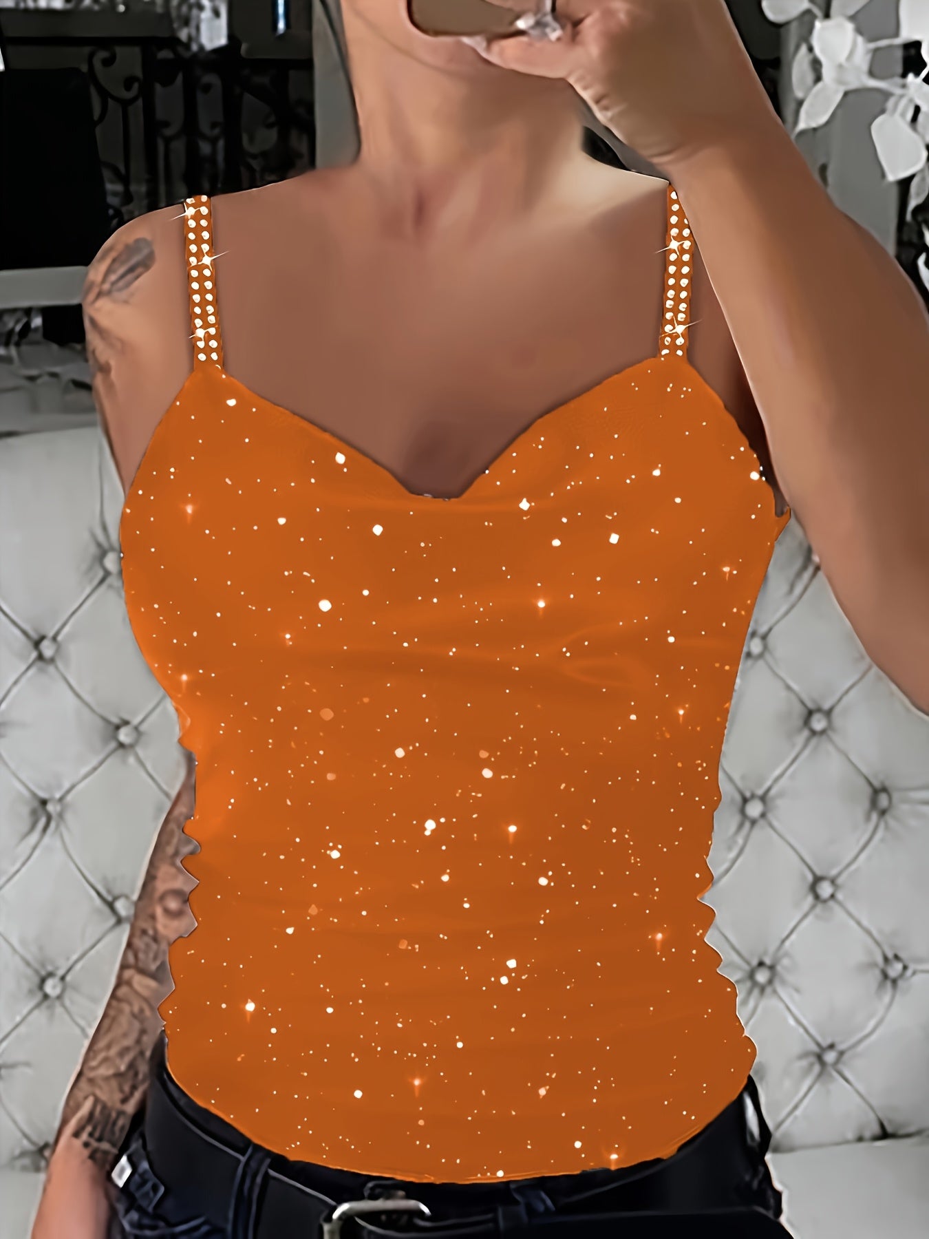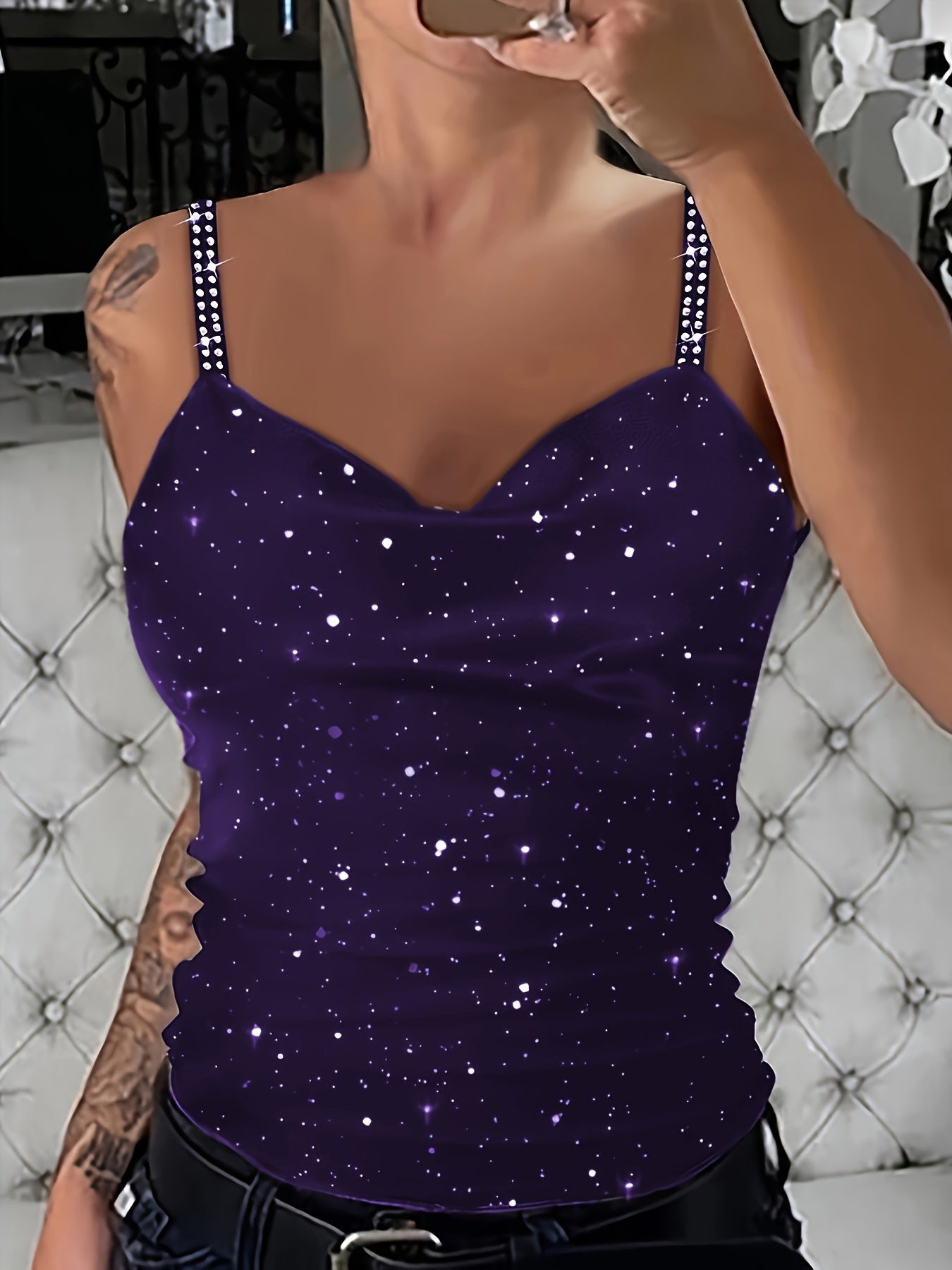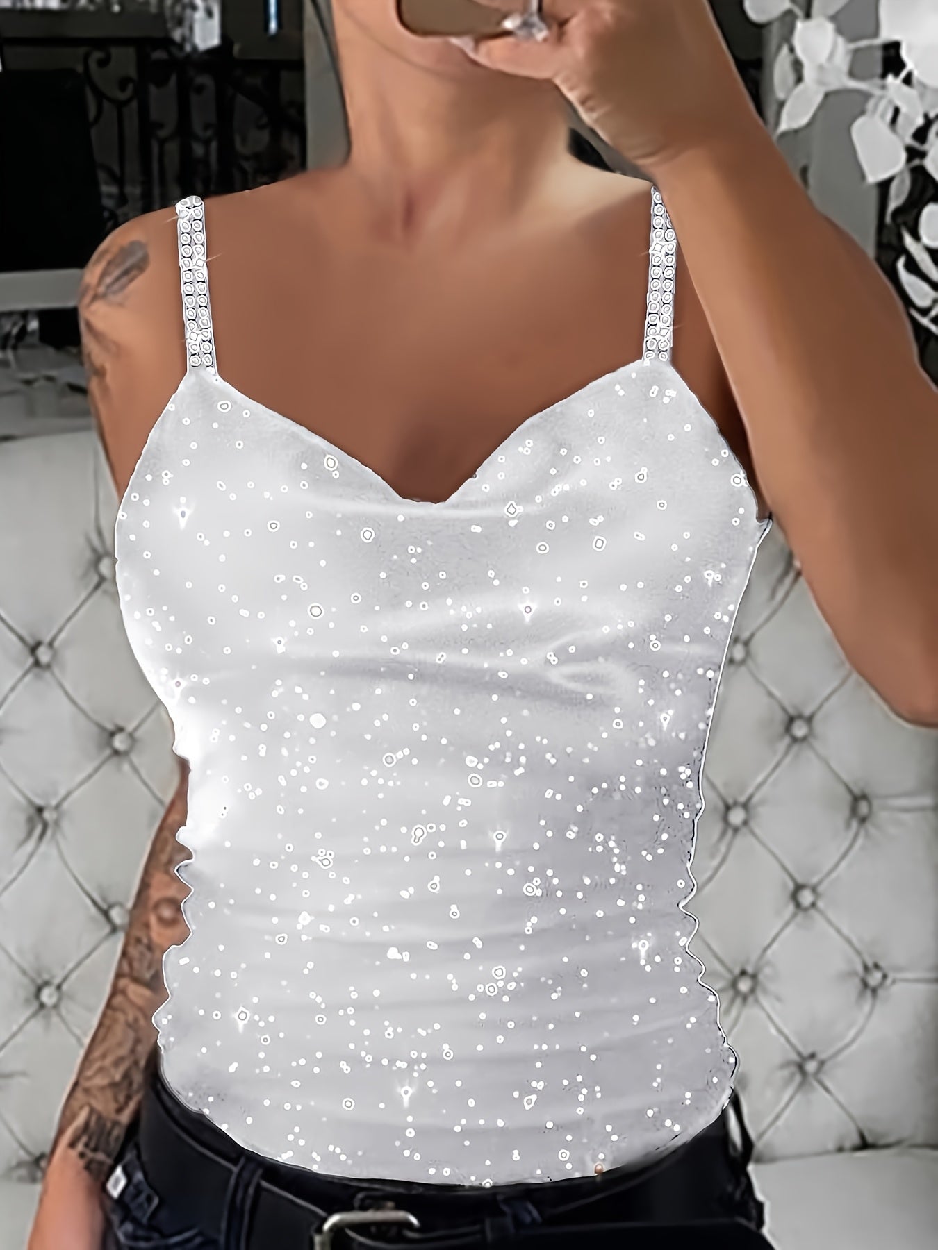 Blusa elegante sin tirantes con escote en V y diamantes de imitación para mujer: blusa de fiesta esencial