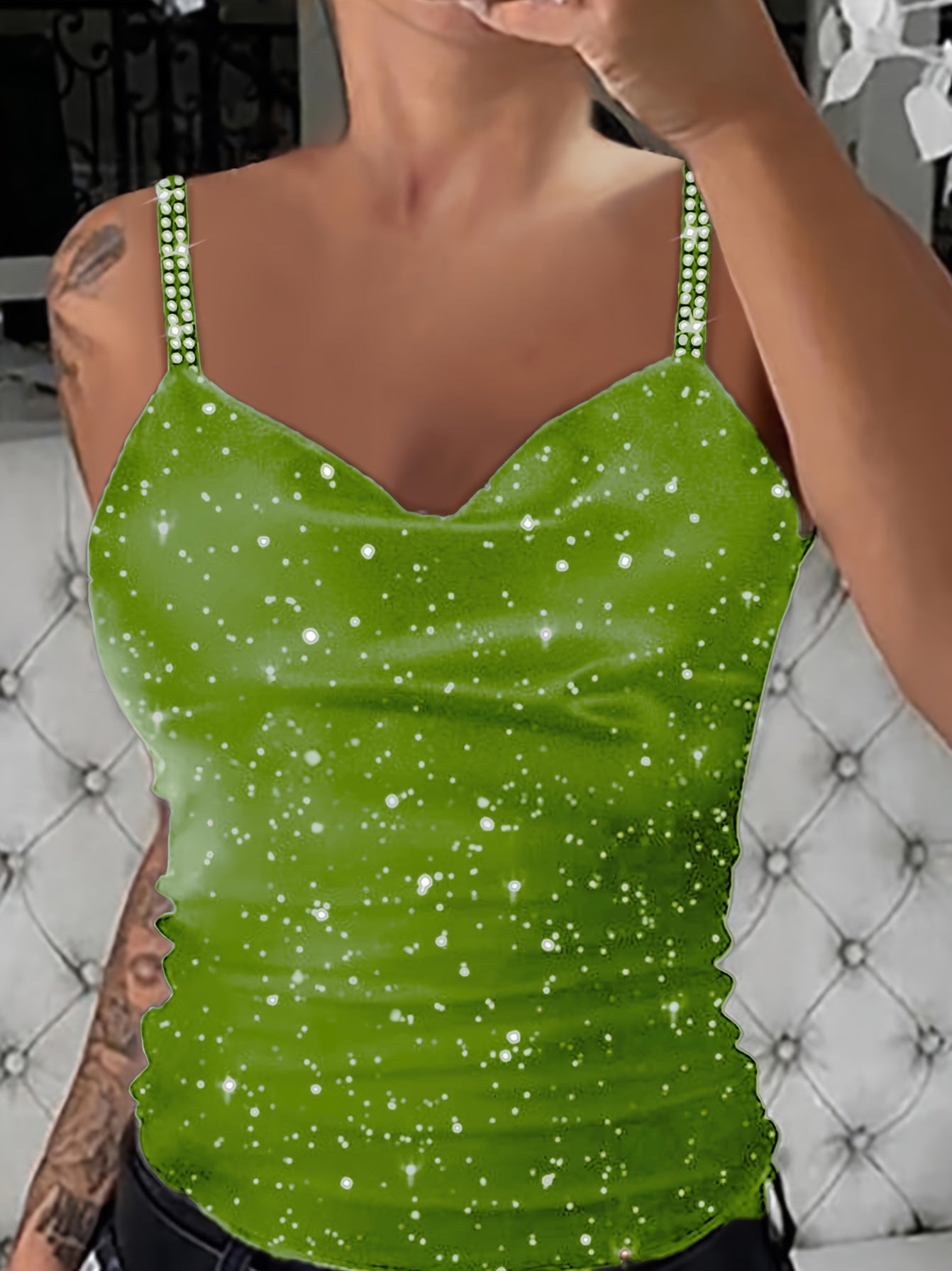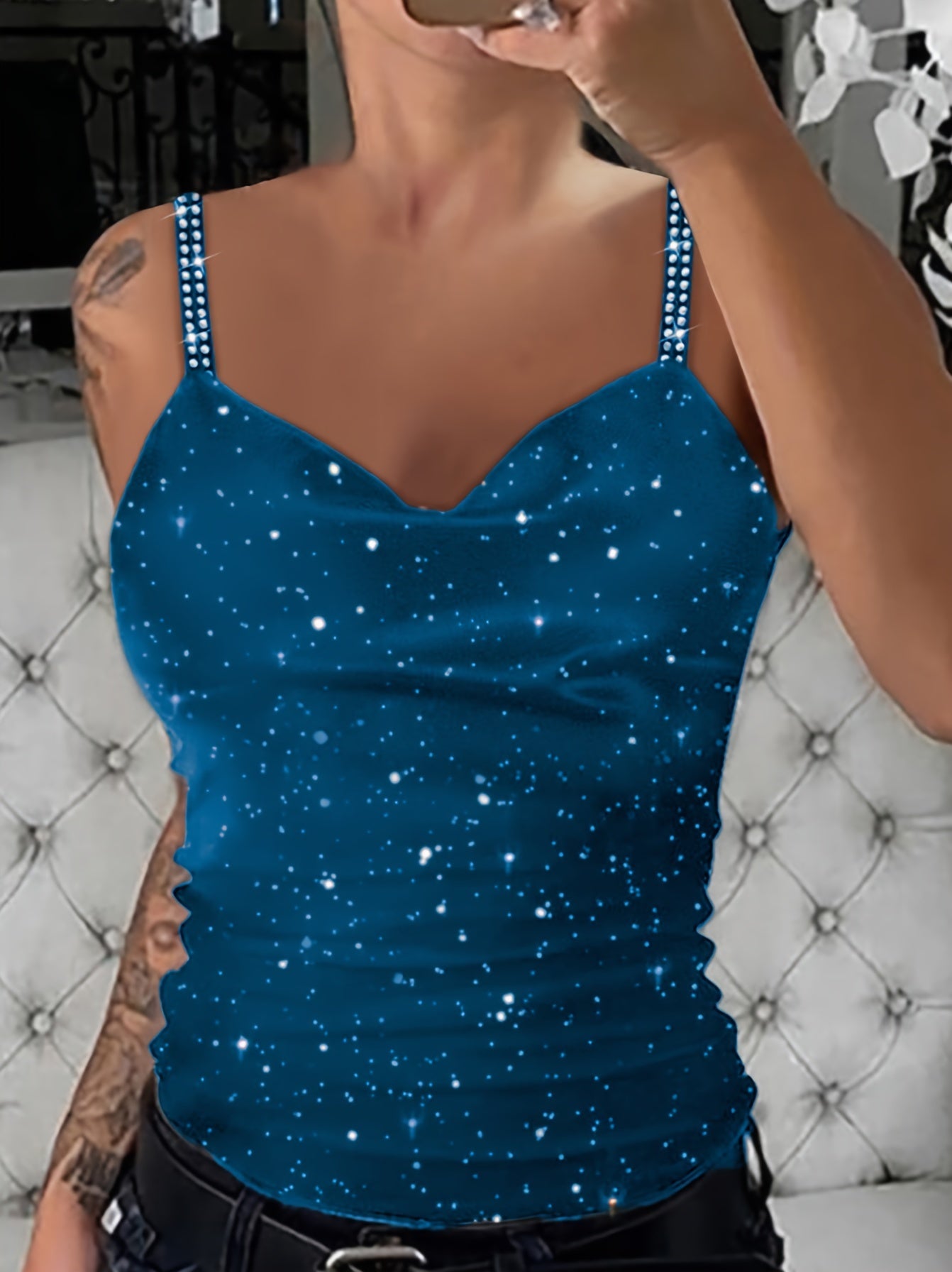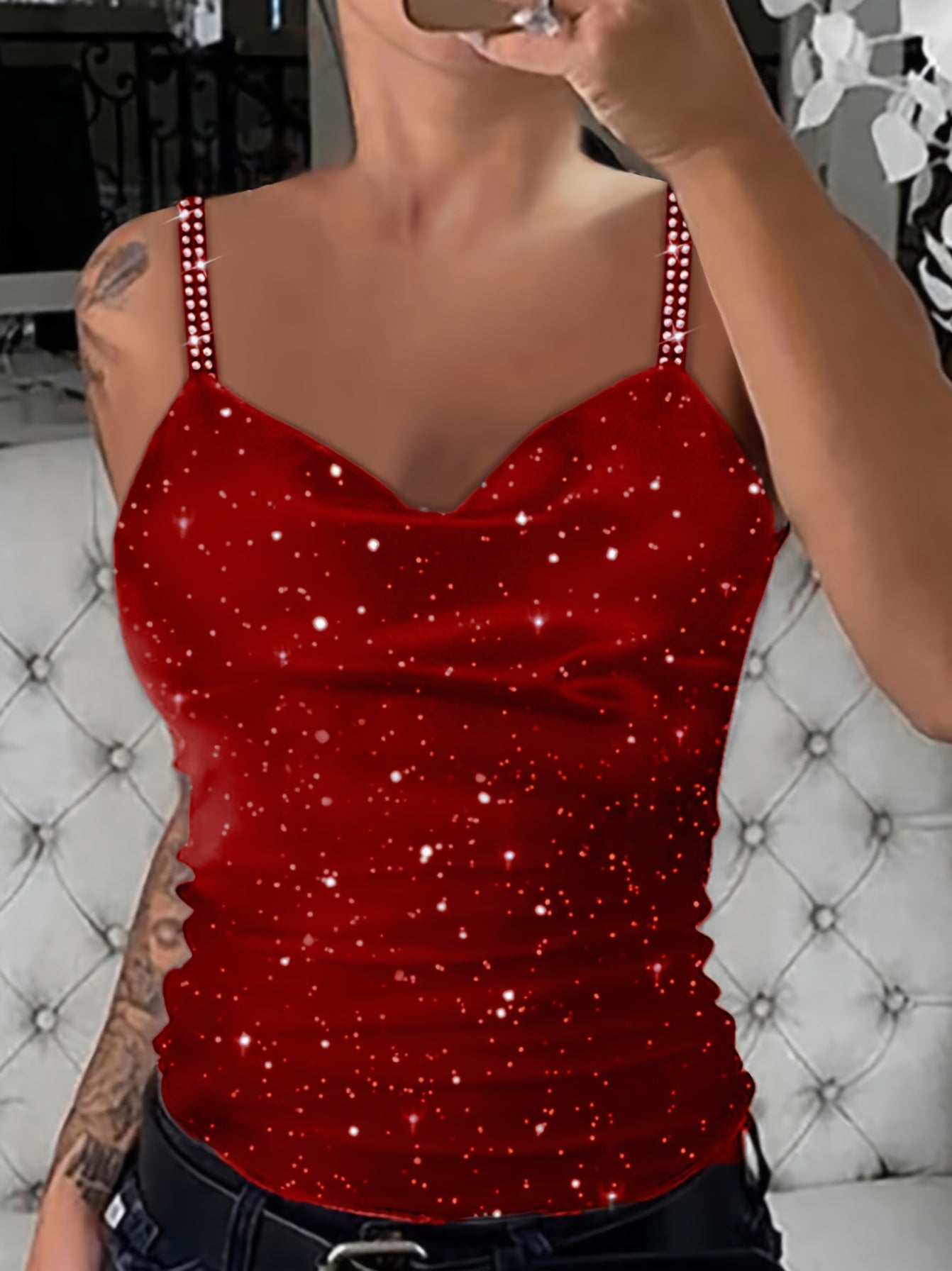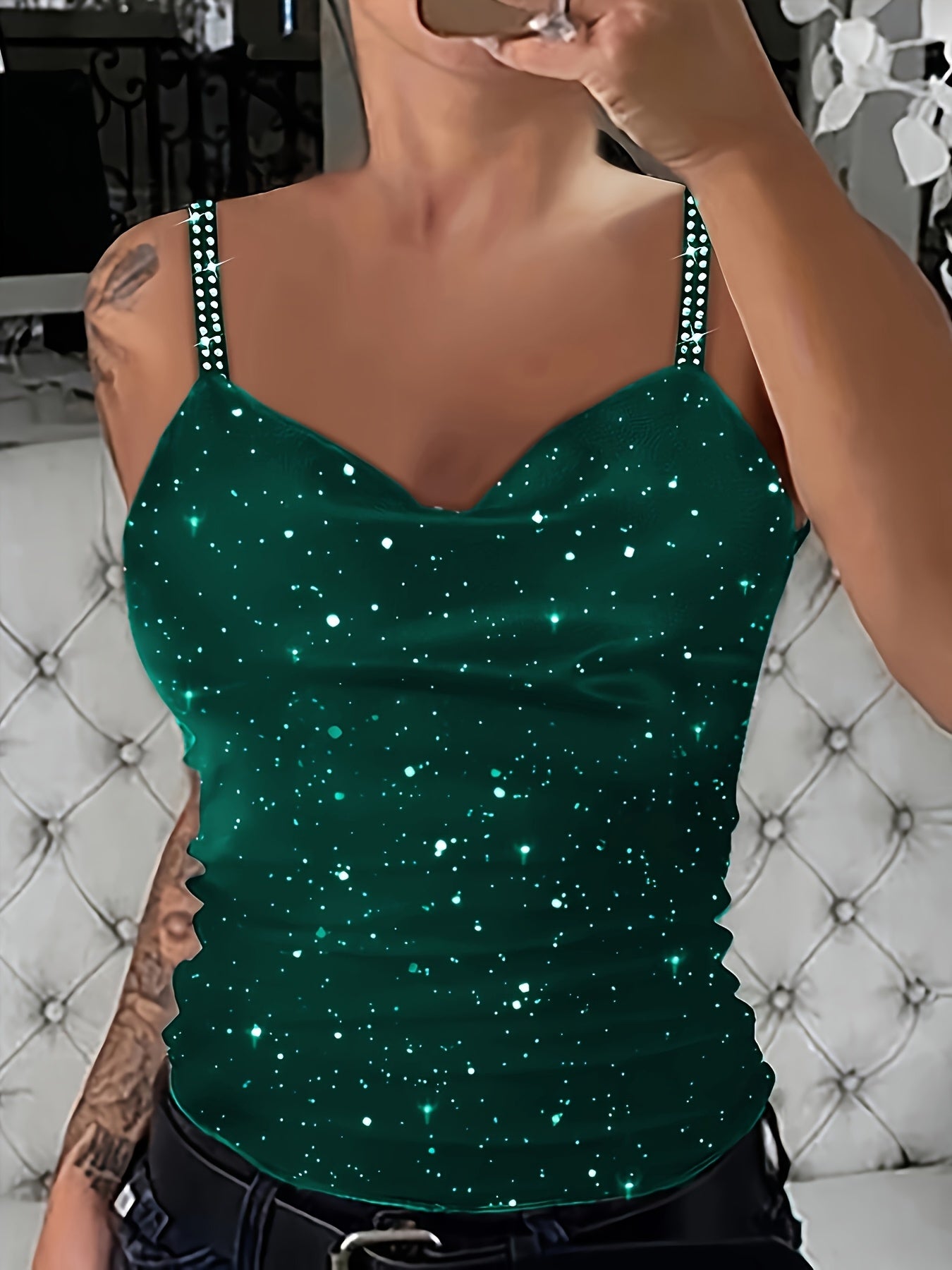 Blusa elegante sin tirantes con escote en V y diamantes de imitación para mujer: blusa de fiesta esencial
