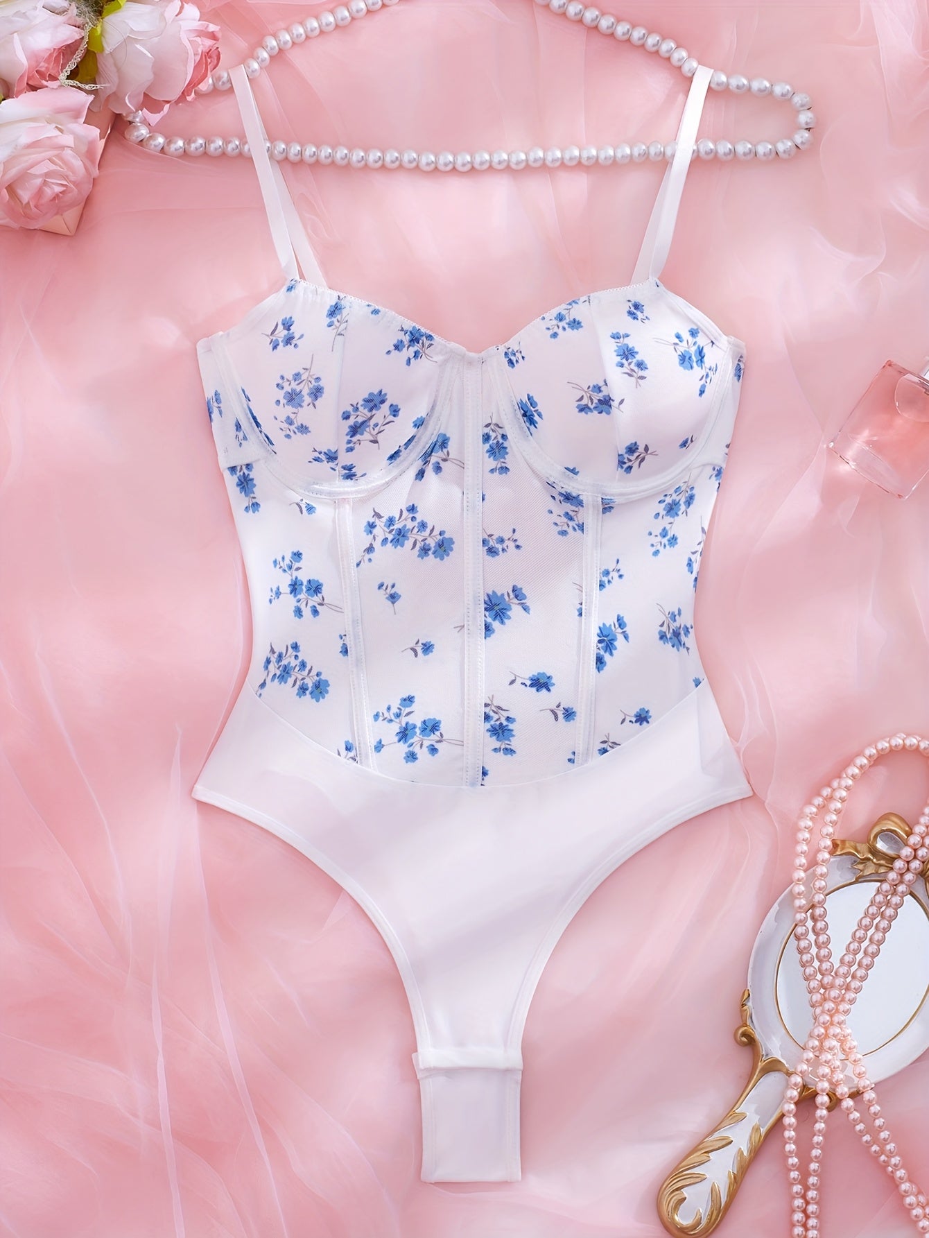 Top de tirantes ajustado con estampado floral elegante para mujer (tirantes ajustables)