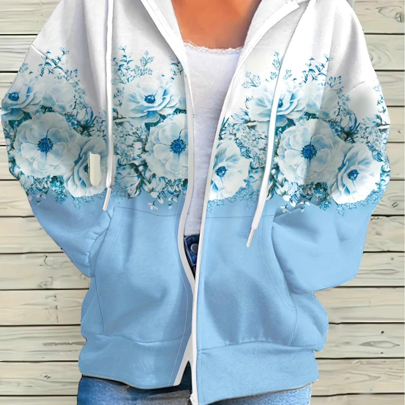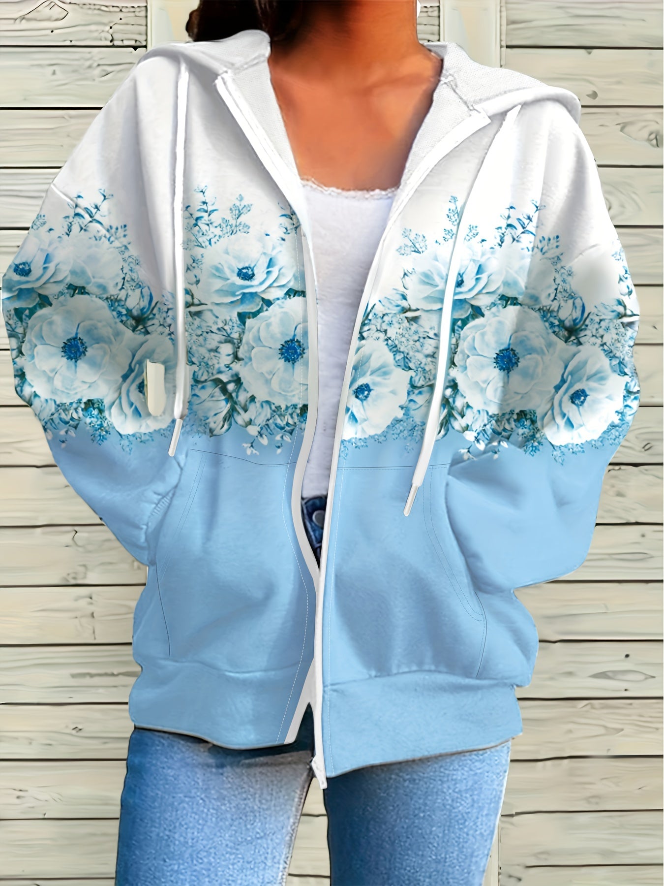 Chaqueta con capucha y estampado floral - Casual con cremallera para mujer, tejido suave