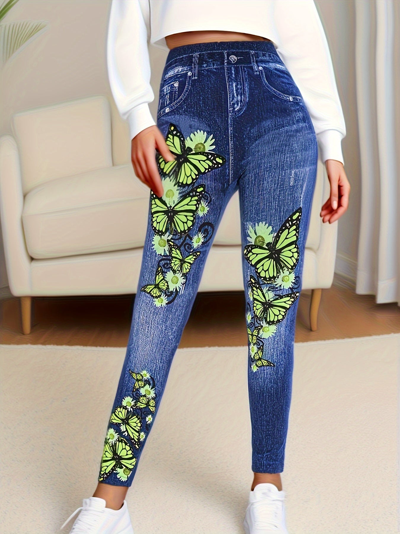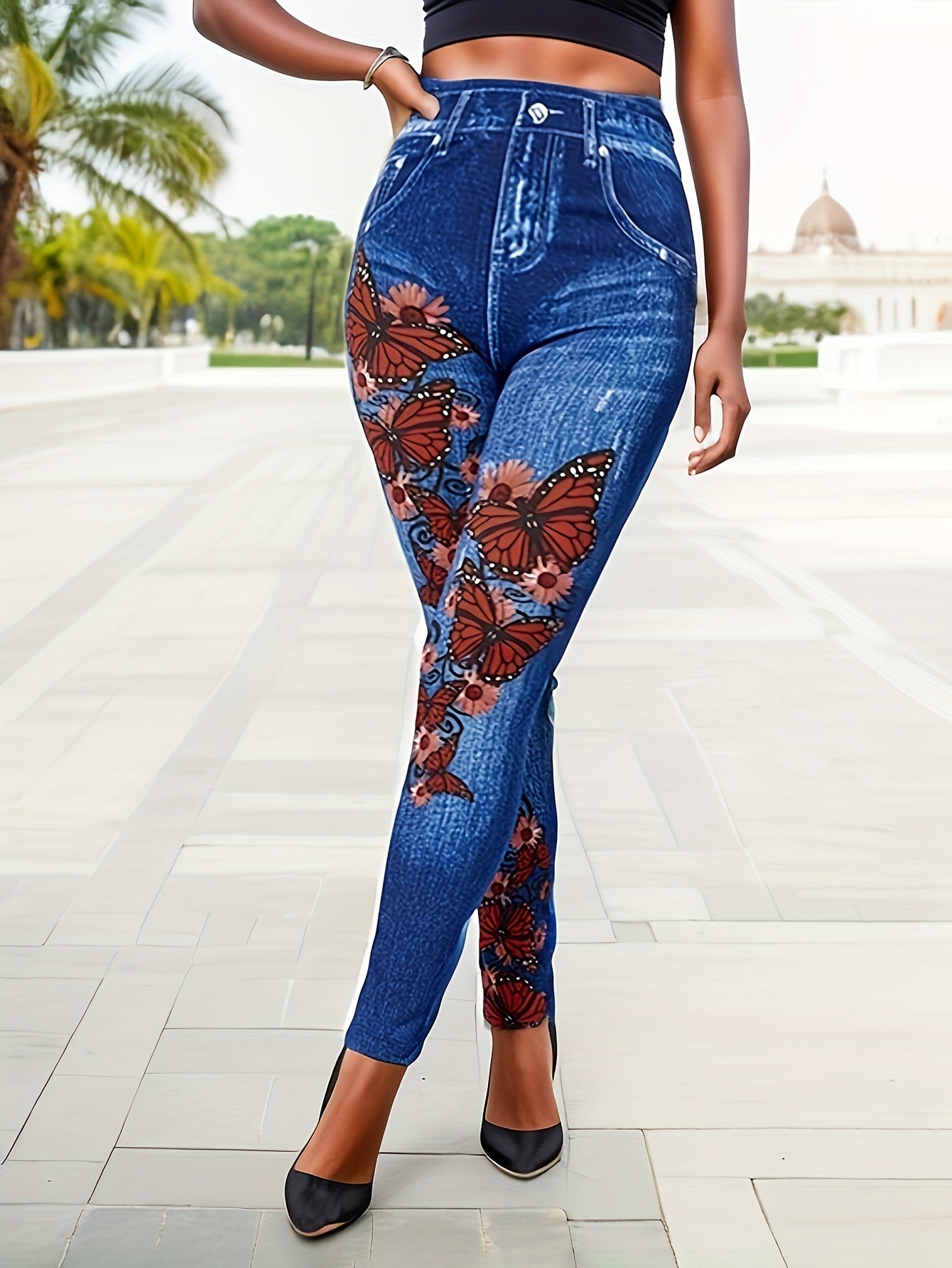 Mejora tu guardarropa casual de fin de semana con nuestros elegantes pantalones casuales de mezclilla de imitación. Perfectos para cualquier ocasión, estos pantalones combinan un elegante estampado de mariposas con un ajuste cómodo. De fácil mantenimiento y alta elasticidad, prometen convertirse en tu opción predilecta para salidas relajadas y elegantes.