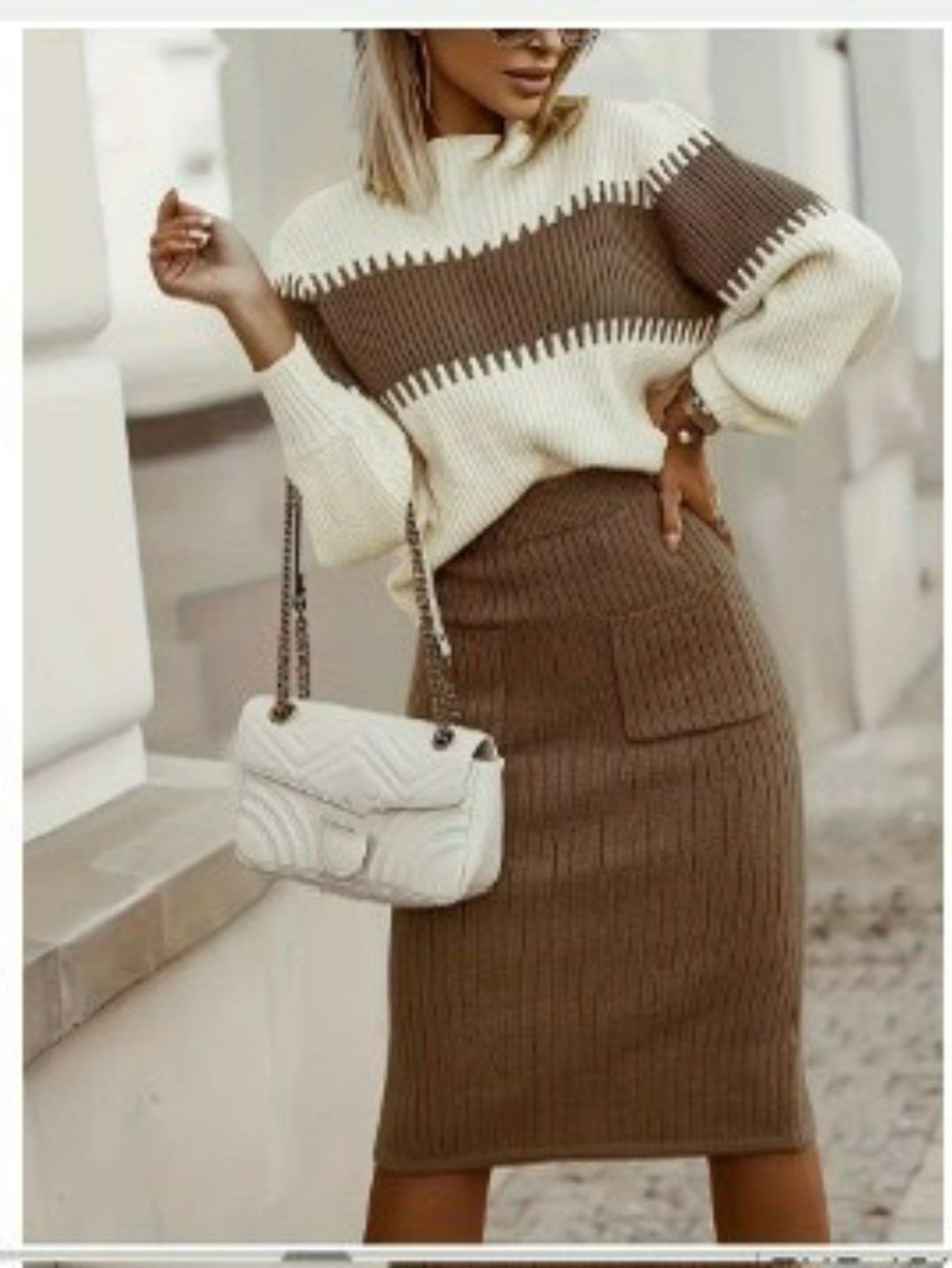 Mejora tu armario con nuestro traje de dos piezas de polar para mujer, diseñado para la mujer moderna. Este elegante conjunto incluye un sofisticado jersey de cuello en V y una elegante falda, ideal para la oficina o para salidas informales. Fabricado en poliéster de alta calidad, ofrece comodidad y durabilidad.