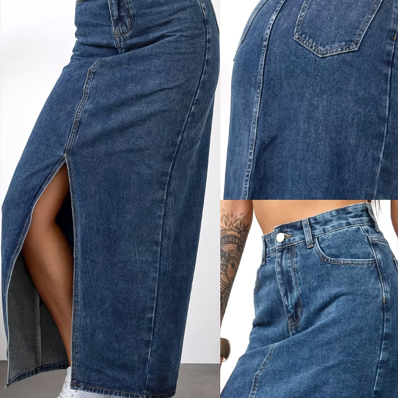 Descubre la combinación perfecta de estilo y comodidad con nuestra elegante falda de largo medio para mujer. Diseñada con una elegante abertura lateral y confeccionada en mezclilla de alta calidad, esta falda es ideal para cualquier ocasión: primavera, verano y otoño. Su diseño de color liso garantiza versatilidad, convirtiéndola en una prenda básica de tu armario.