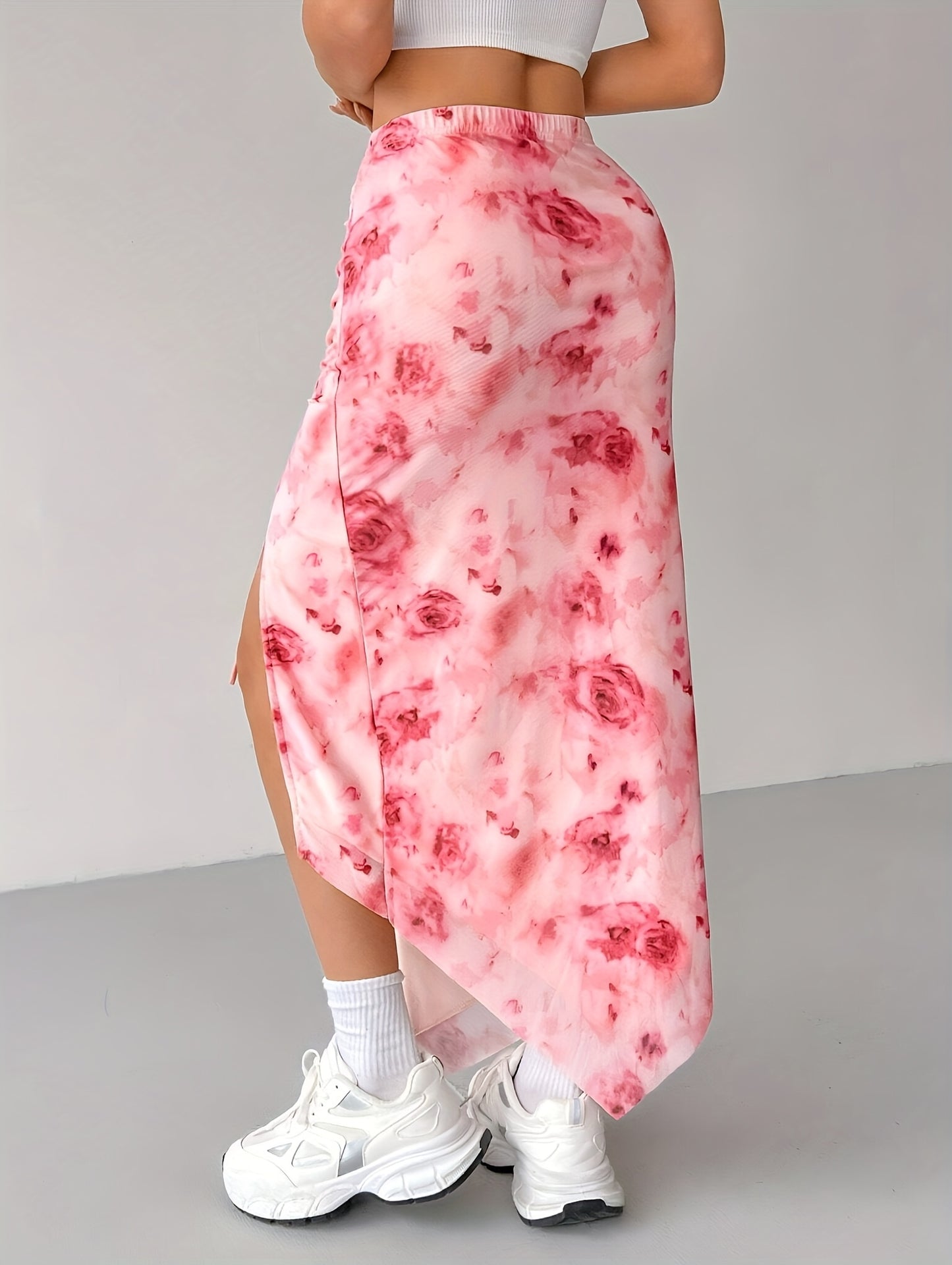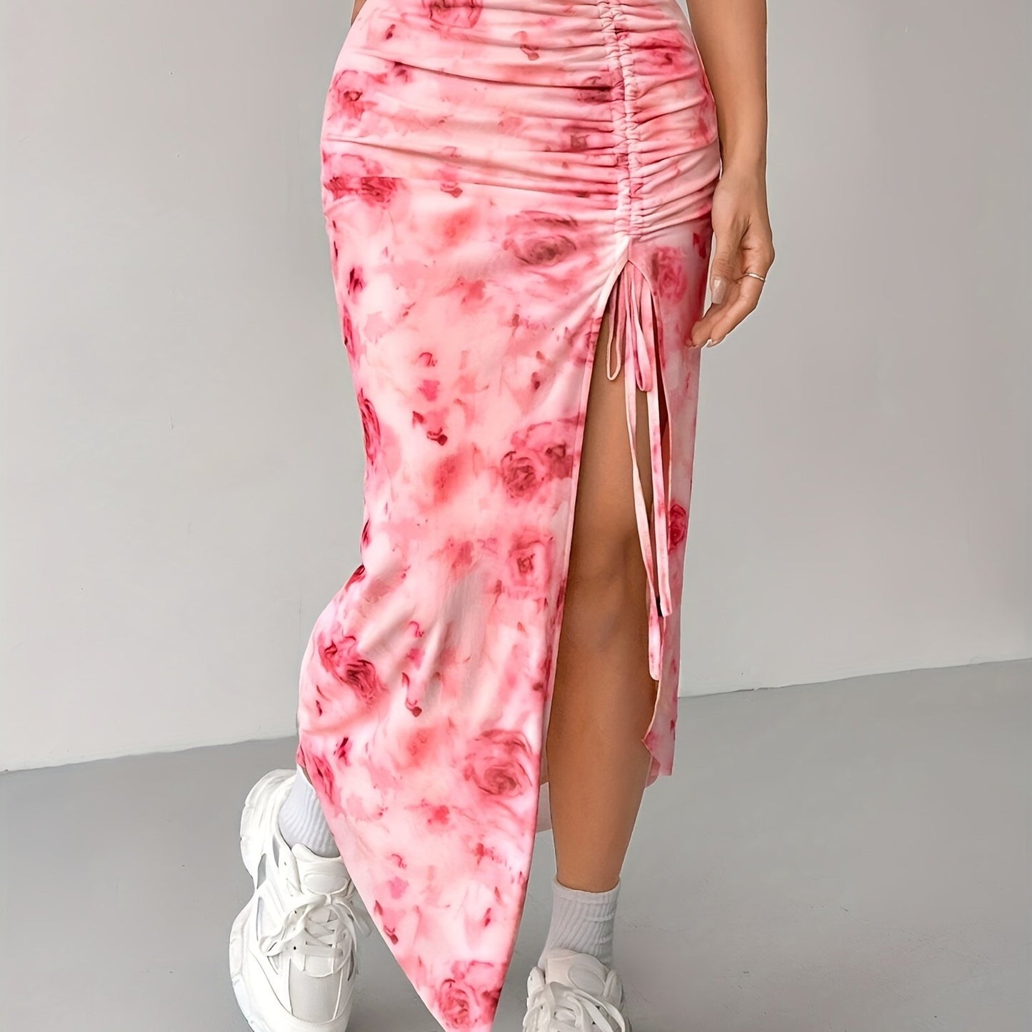 Mejora tu armario con nuestra falda de malla floral de cintura alta para mujer, con un moderno dobladillo dividido con cordón. Perfecta para primavera y verano, esta elegante falda está hecha de 95 % poliéster, ofreciendo ligereza y microelasticidad para mayor comodidad. Apuesta por el estampado floral que le da un toque fresco a cualquier look.