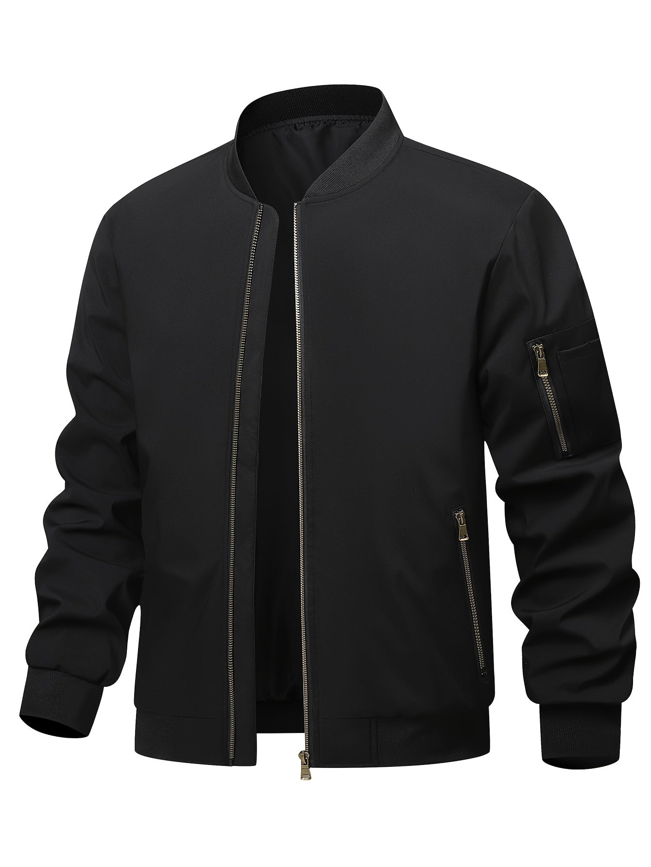 Chaqueta bomber negra para hombre: ligera y con cremallera, ideal para primavera y otoño.
