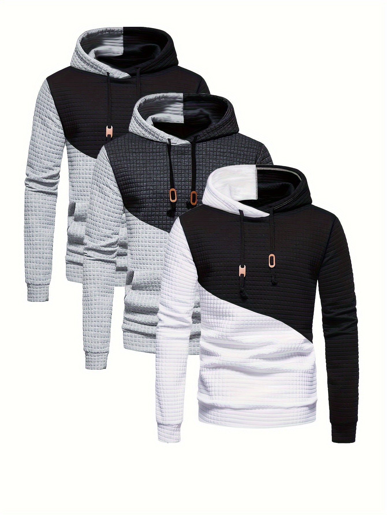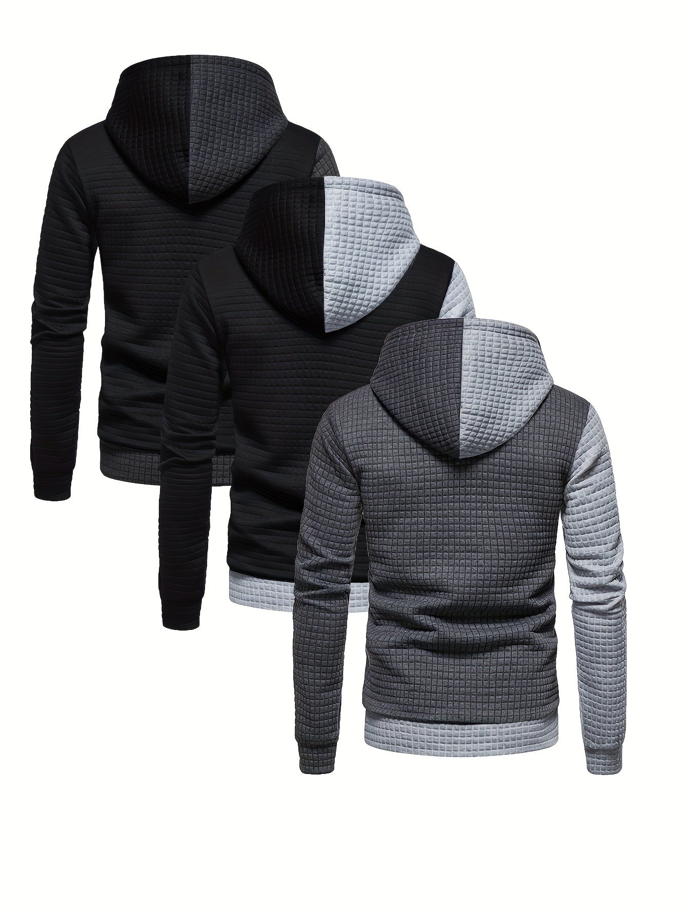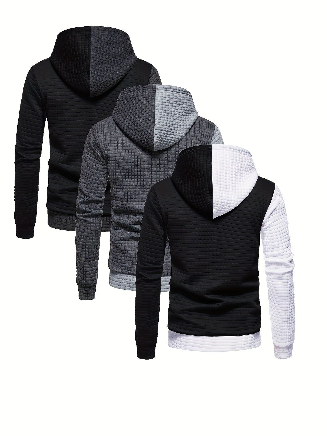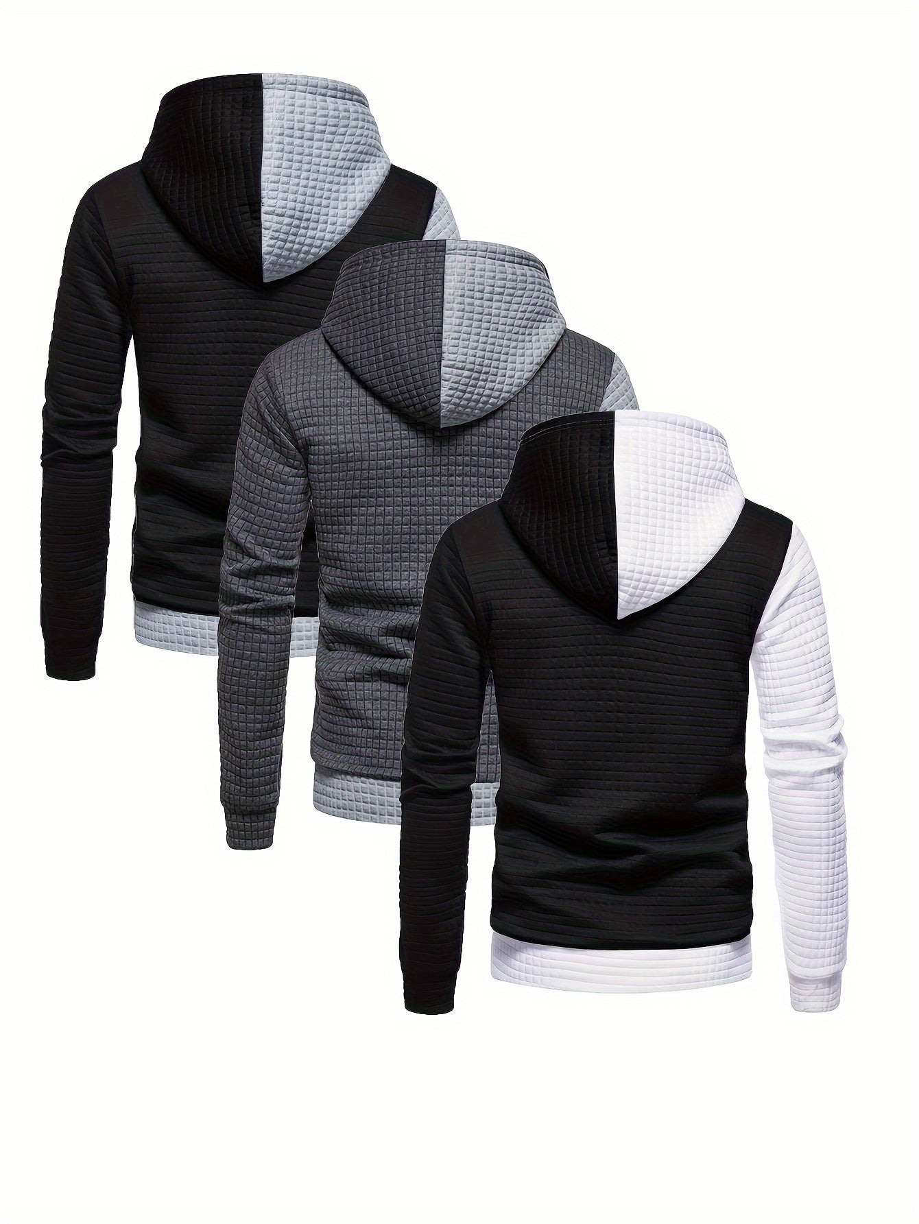 3pcs Color Block Hooded Sweatshirts for Men - Casual Streetwear, Polyester, Knit Fabric, Regular Fit with Pockets, Ideal for Fall/Winter