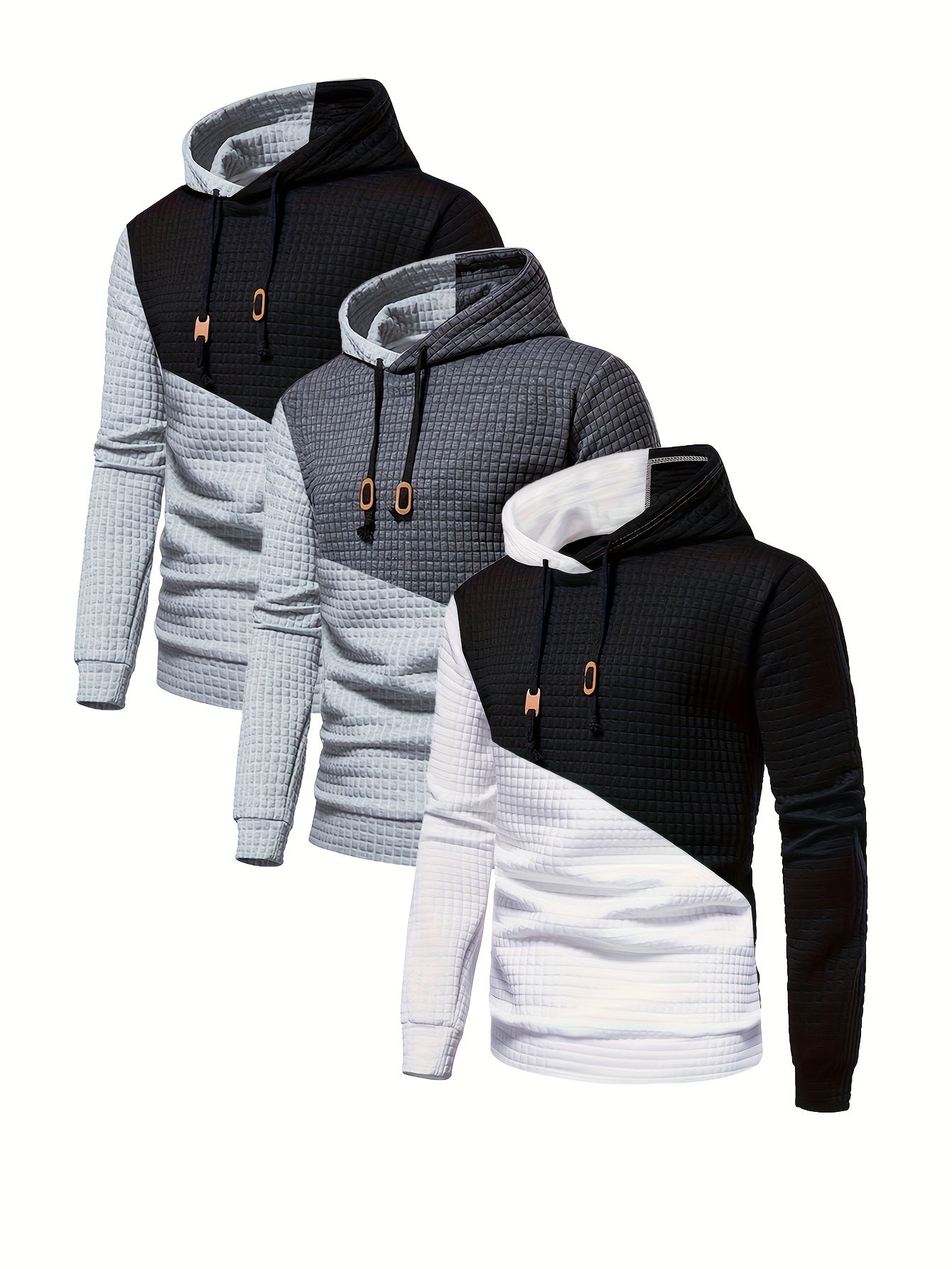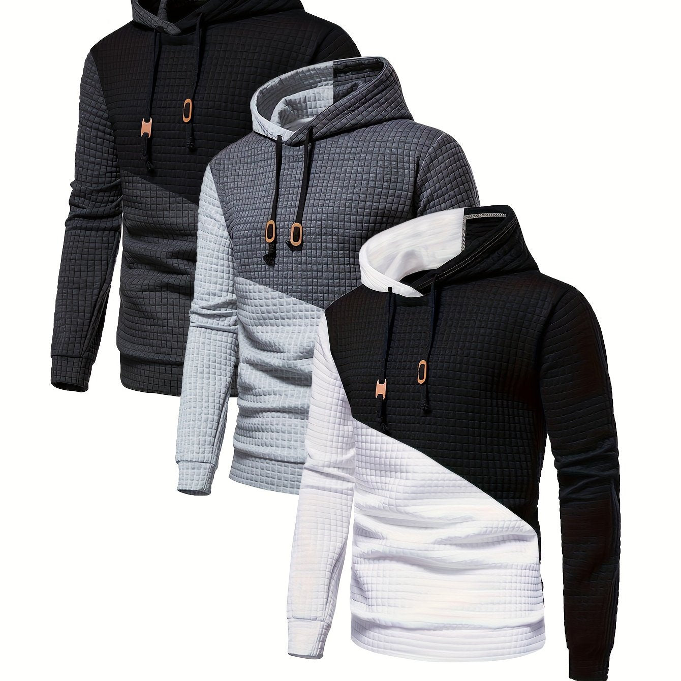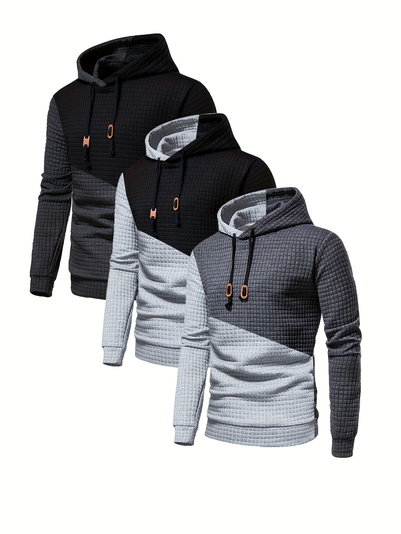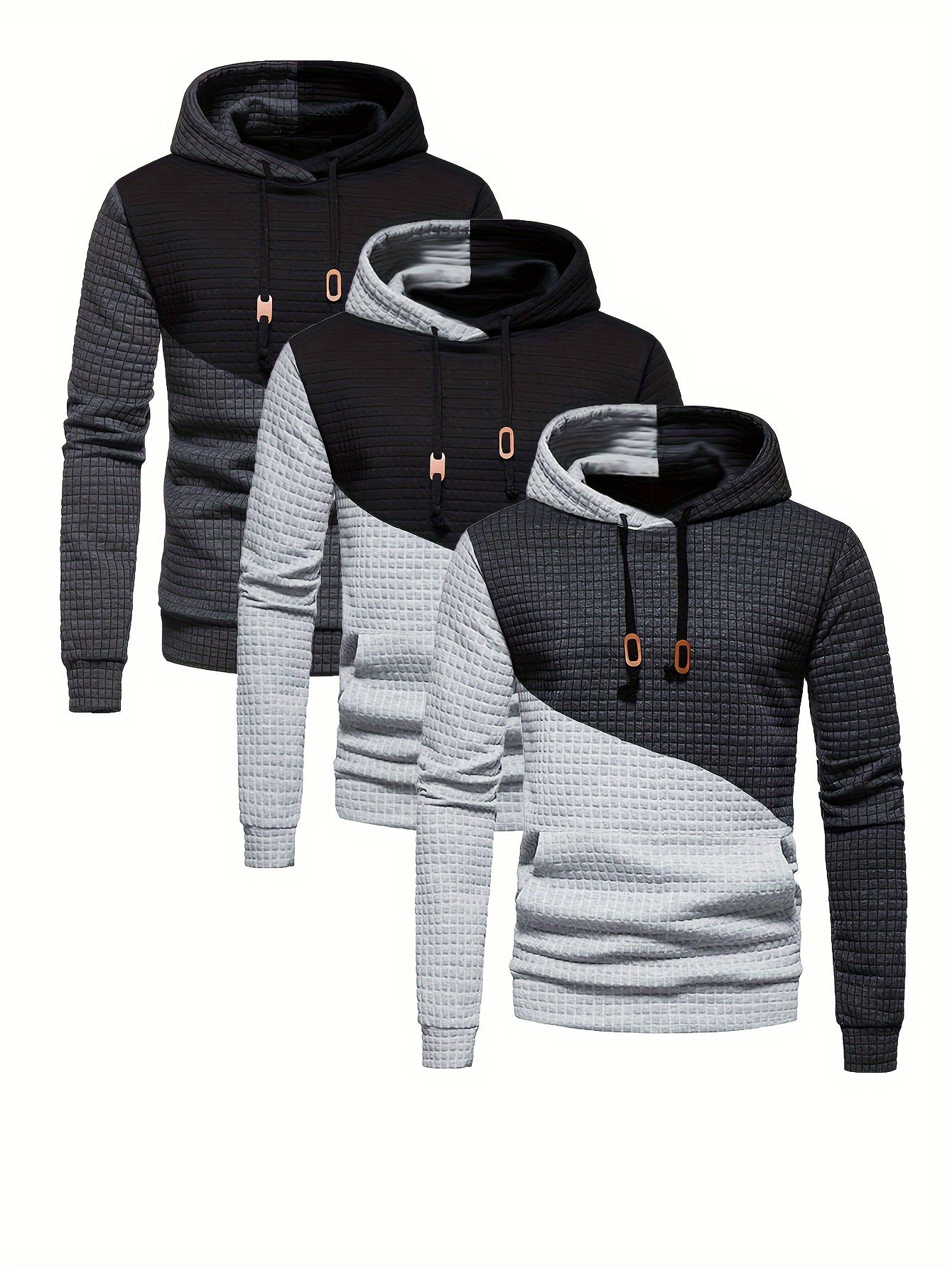 3pcs Color Block Hooded Sweatshirts for Men - Casual Streetwear, Polyester, Knit Fabric, Regular Fit with Pockets, Ideal for Fall/Winter