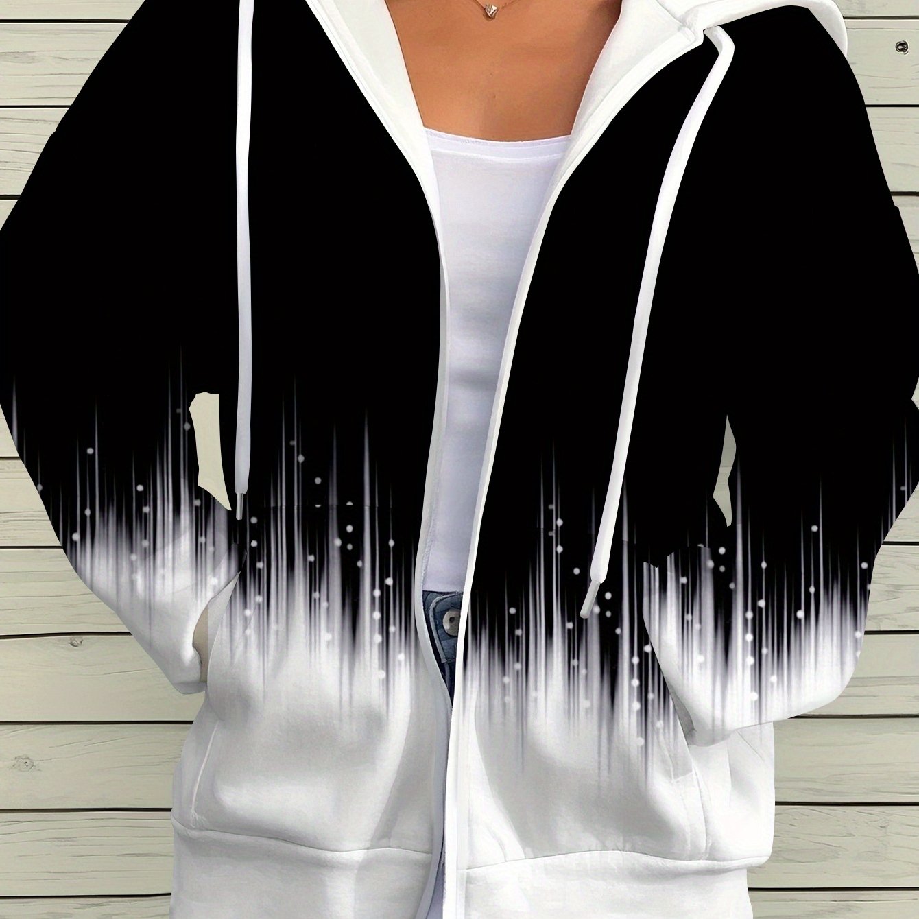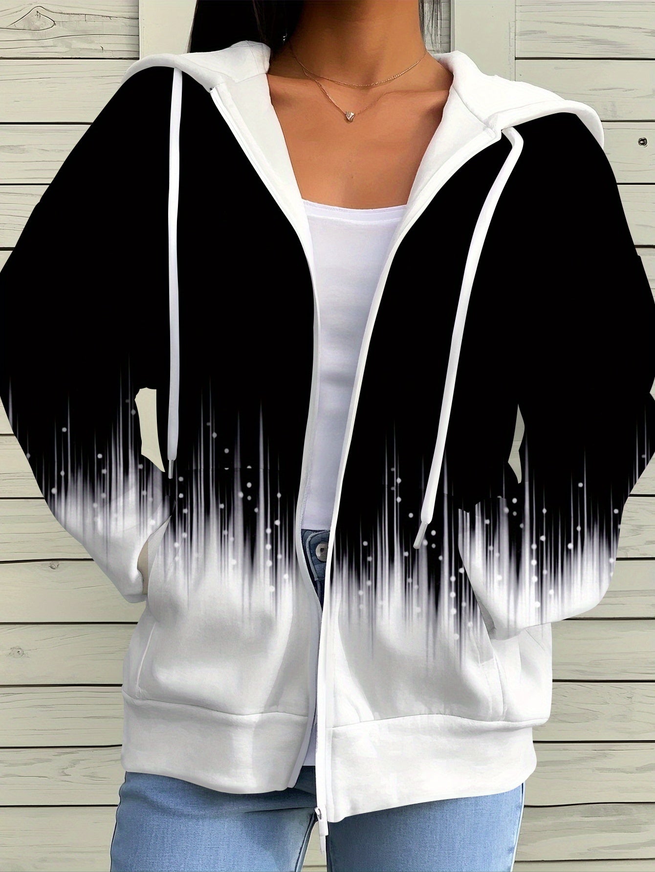 Sweat à capuche zippé dégradé noir et blanc pour femme - Style décontracté d'automne