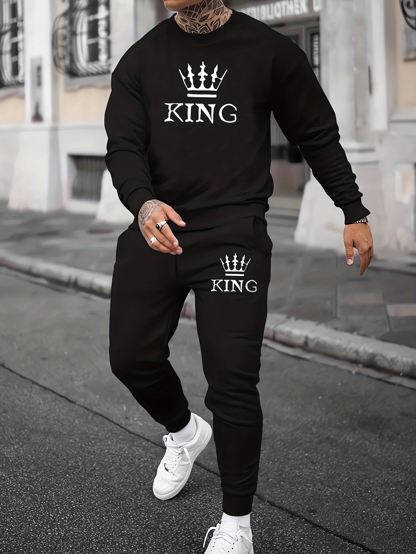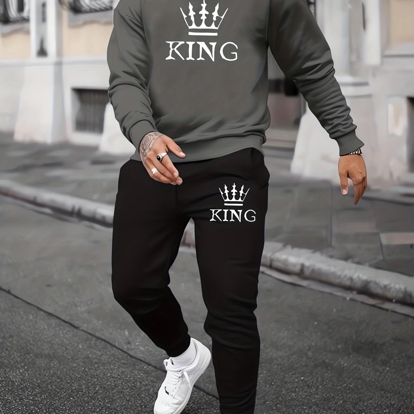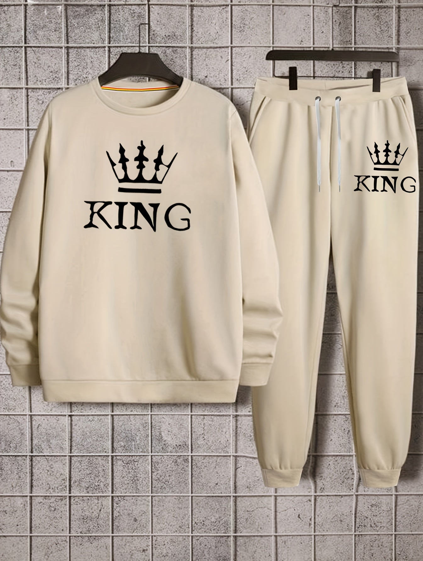 Ensemble 2 pièces sweat-shirt et jogging KING Print pour homme - Style décontracté d'automne