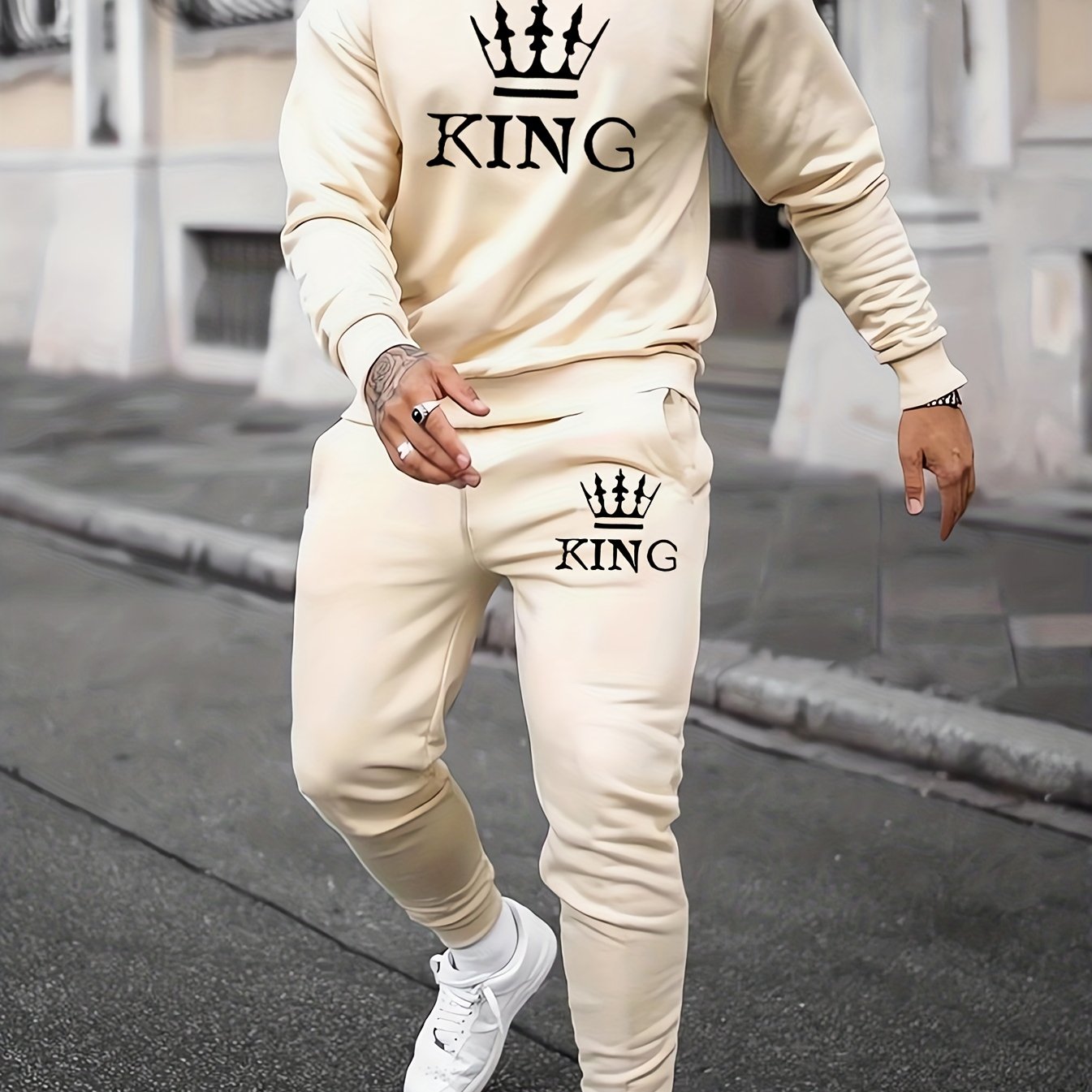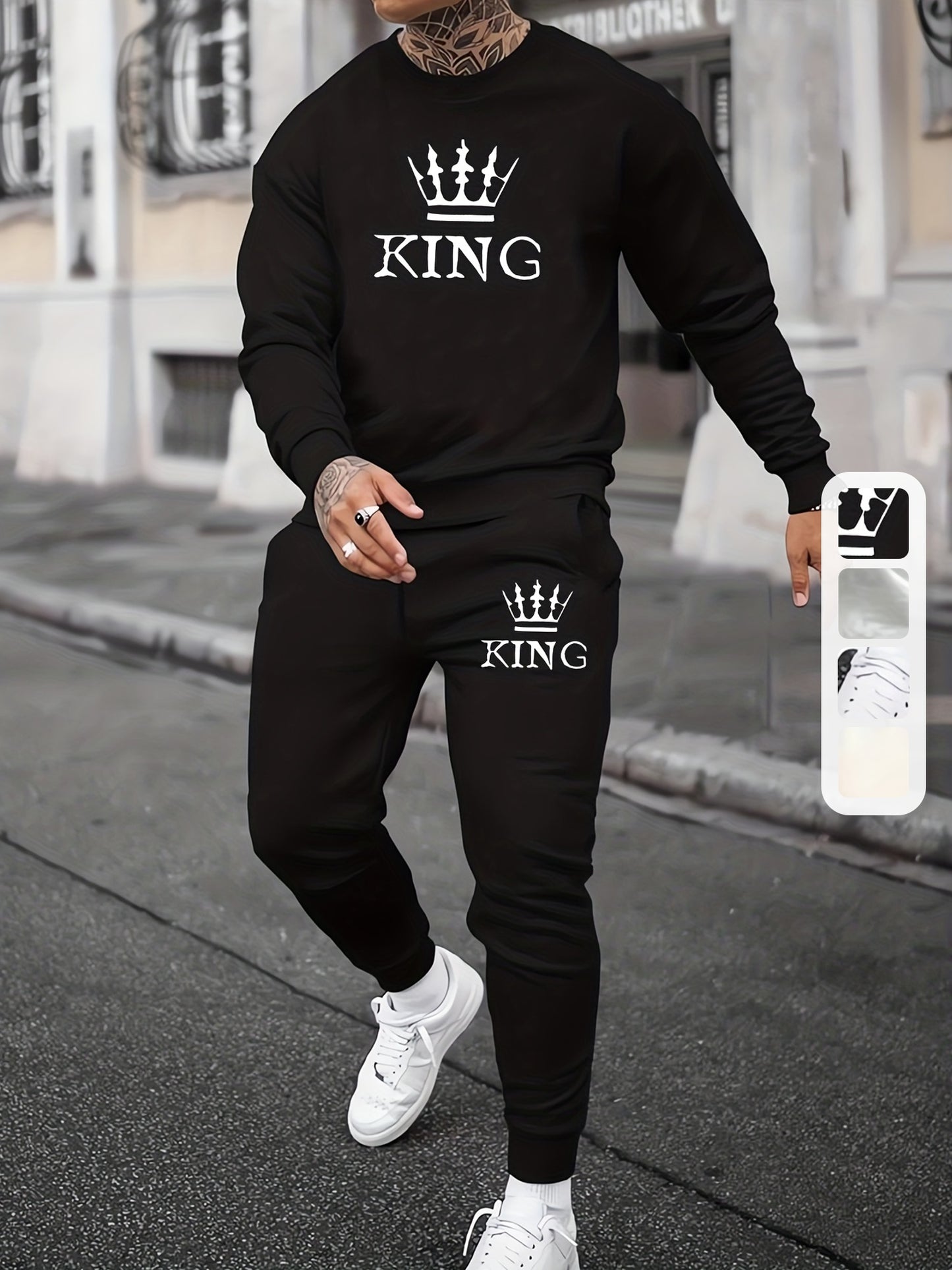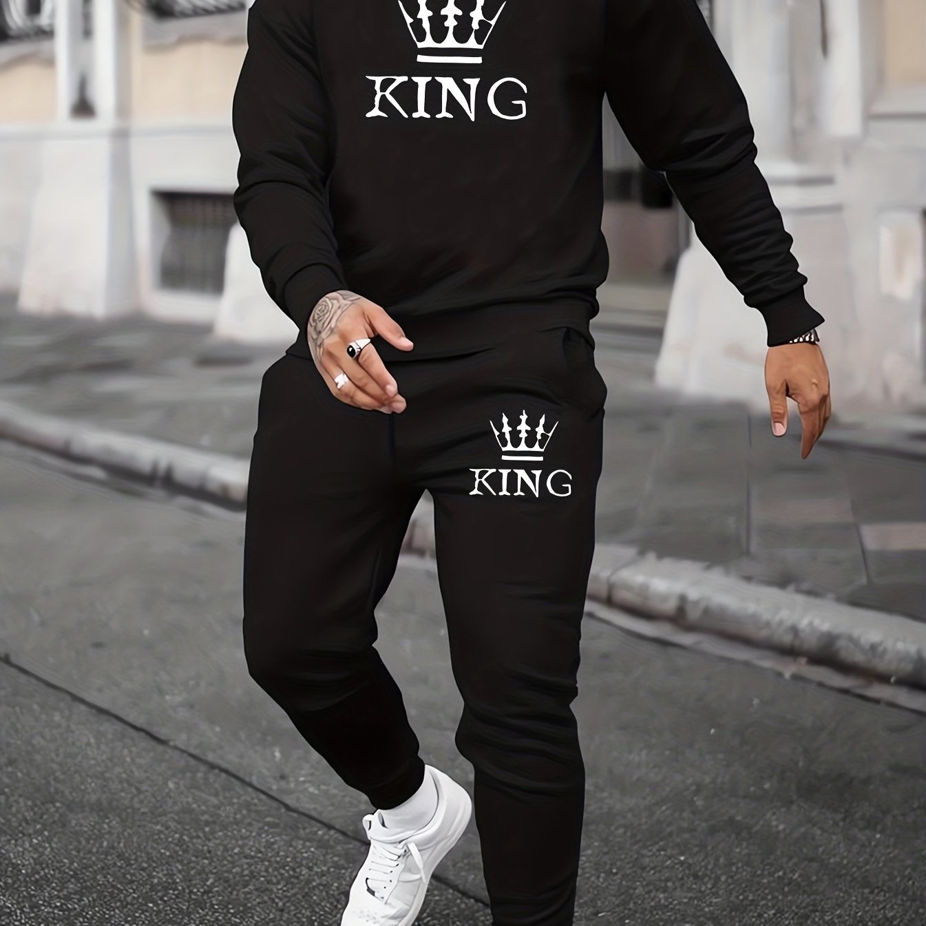 Ensemble 2 pièces sweat-shirt et jogging KING Print pour homme - Style décontracté d'automne