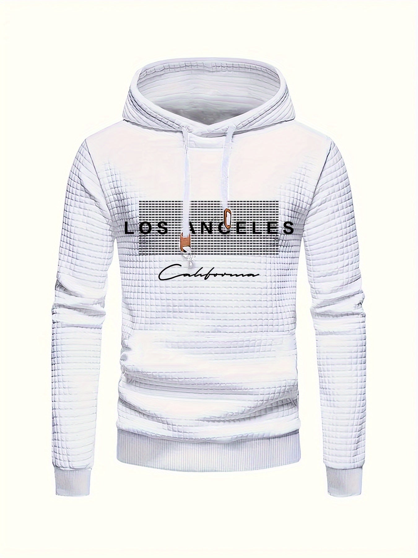 Men's Los Angeles California Graphic Hoodie - Retro Streetwear Pullover with 3D Letter Print, 95% Polyester 5% Elastane Blend, Loose Fit Long Sleeve Sweatshirt, Machine Washable Autumn Winter Casual Wear, Ideal Gift for Men