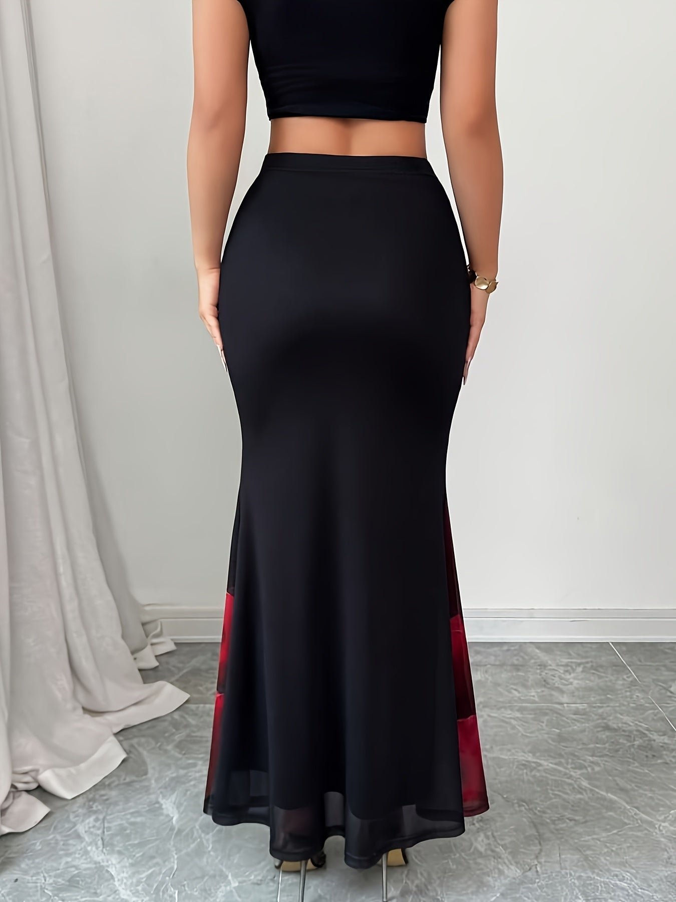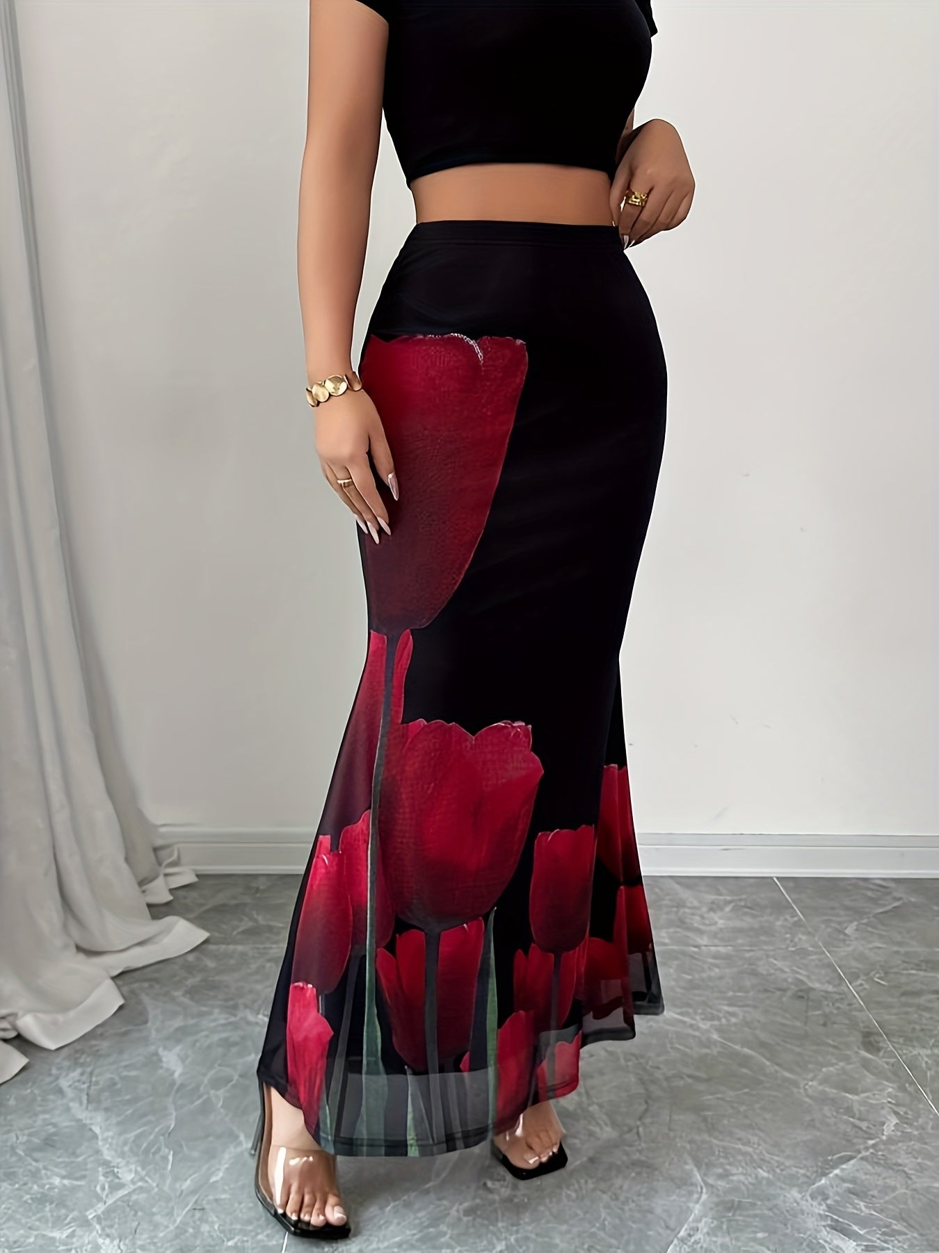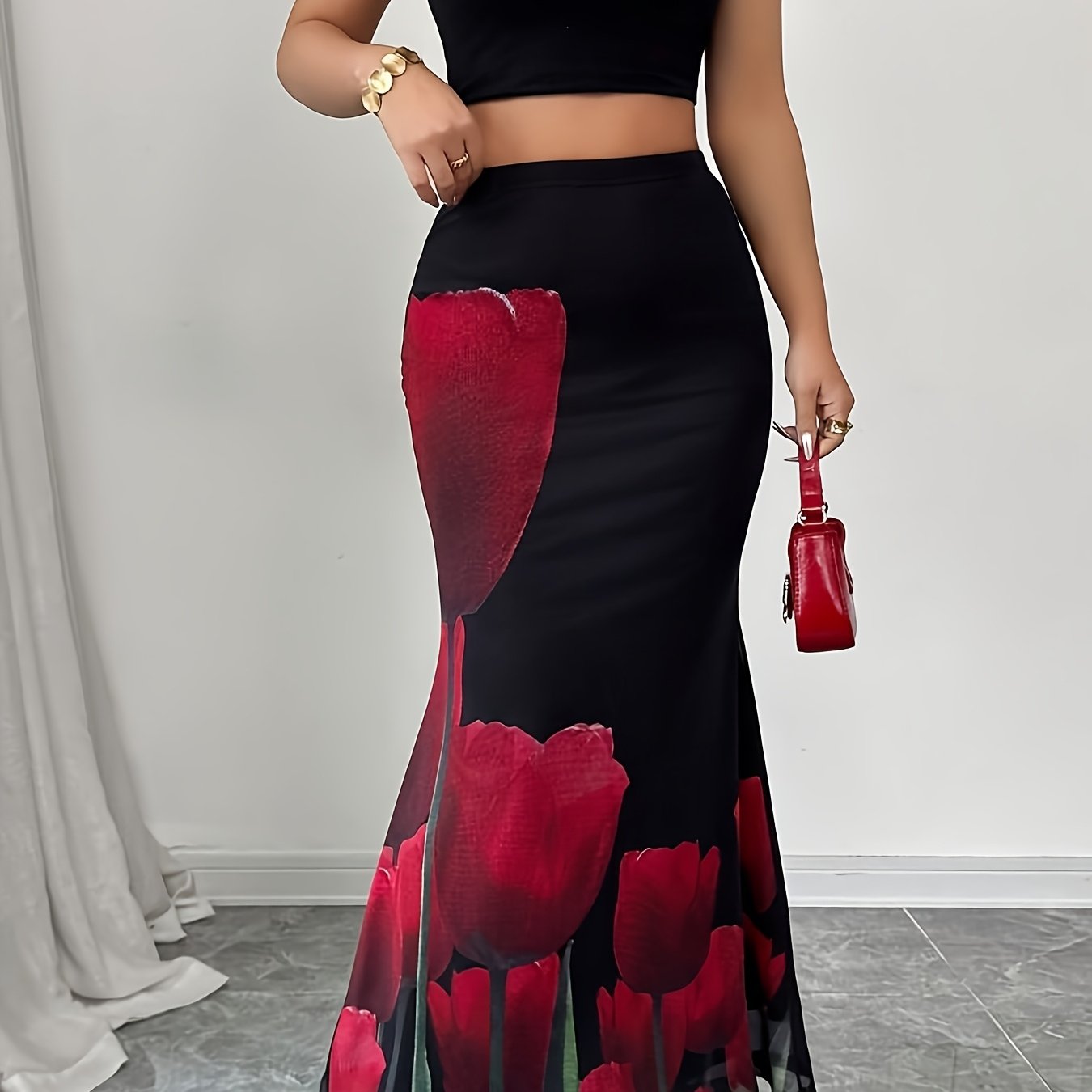 Jupe sirène élégante à imprimé tulipes pour femme - Style extensible et fluide